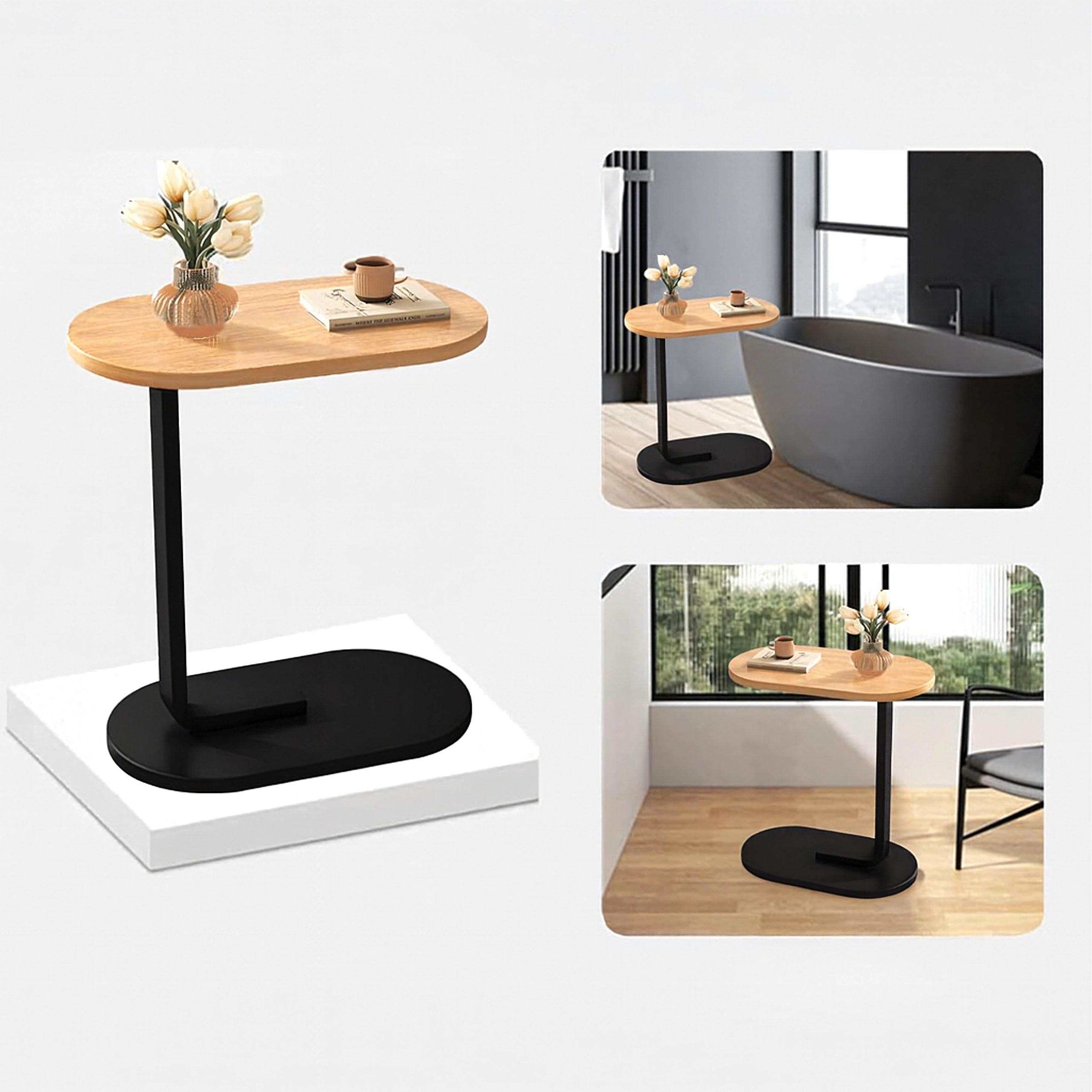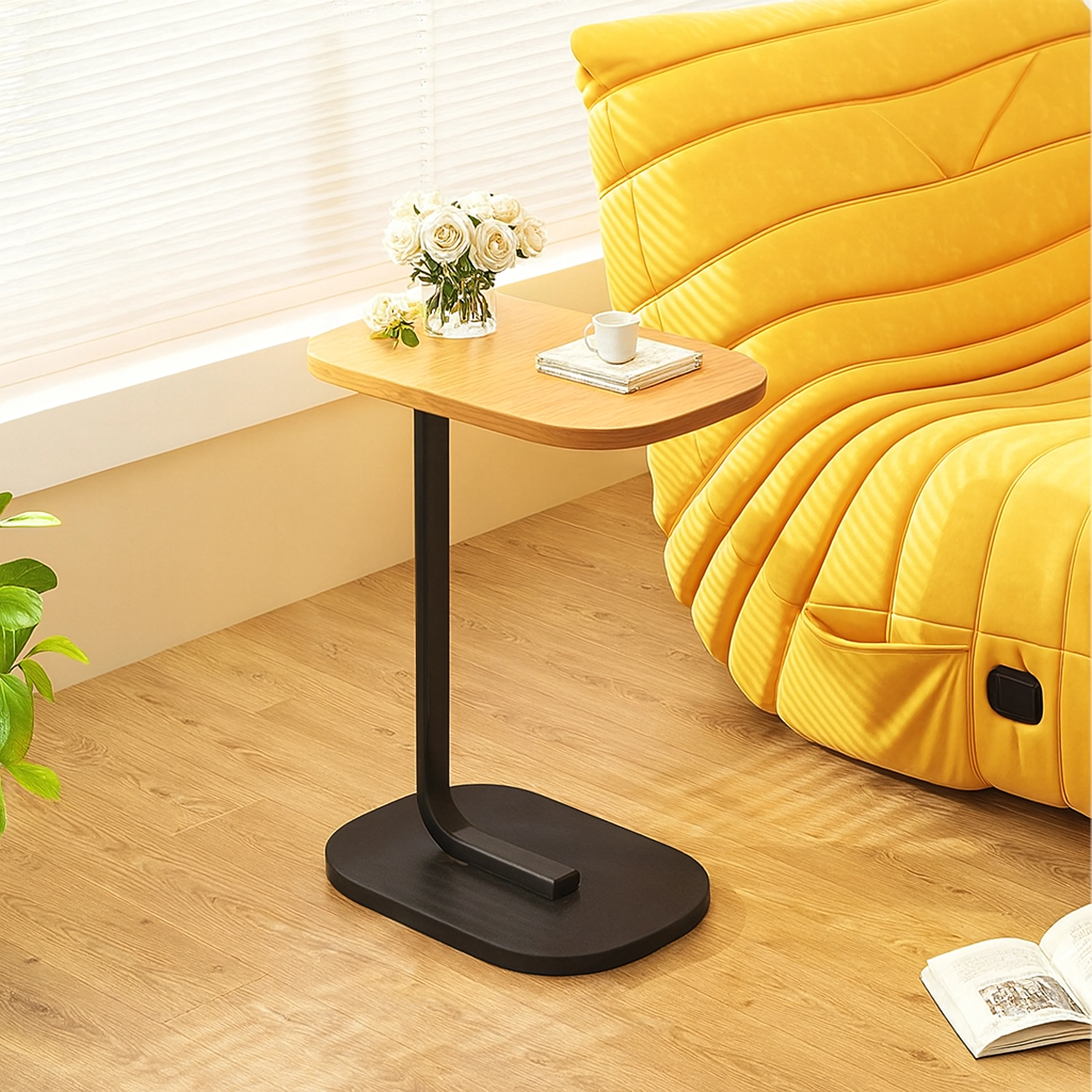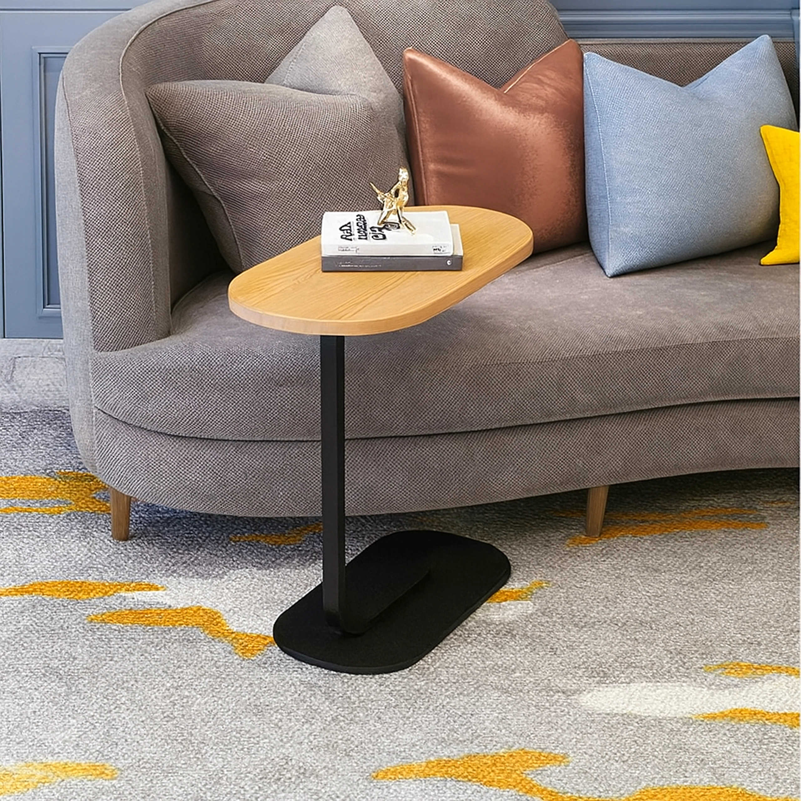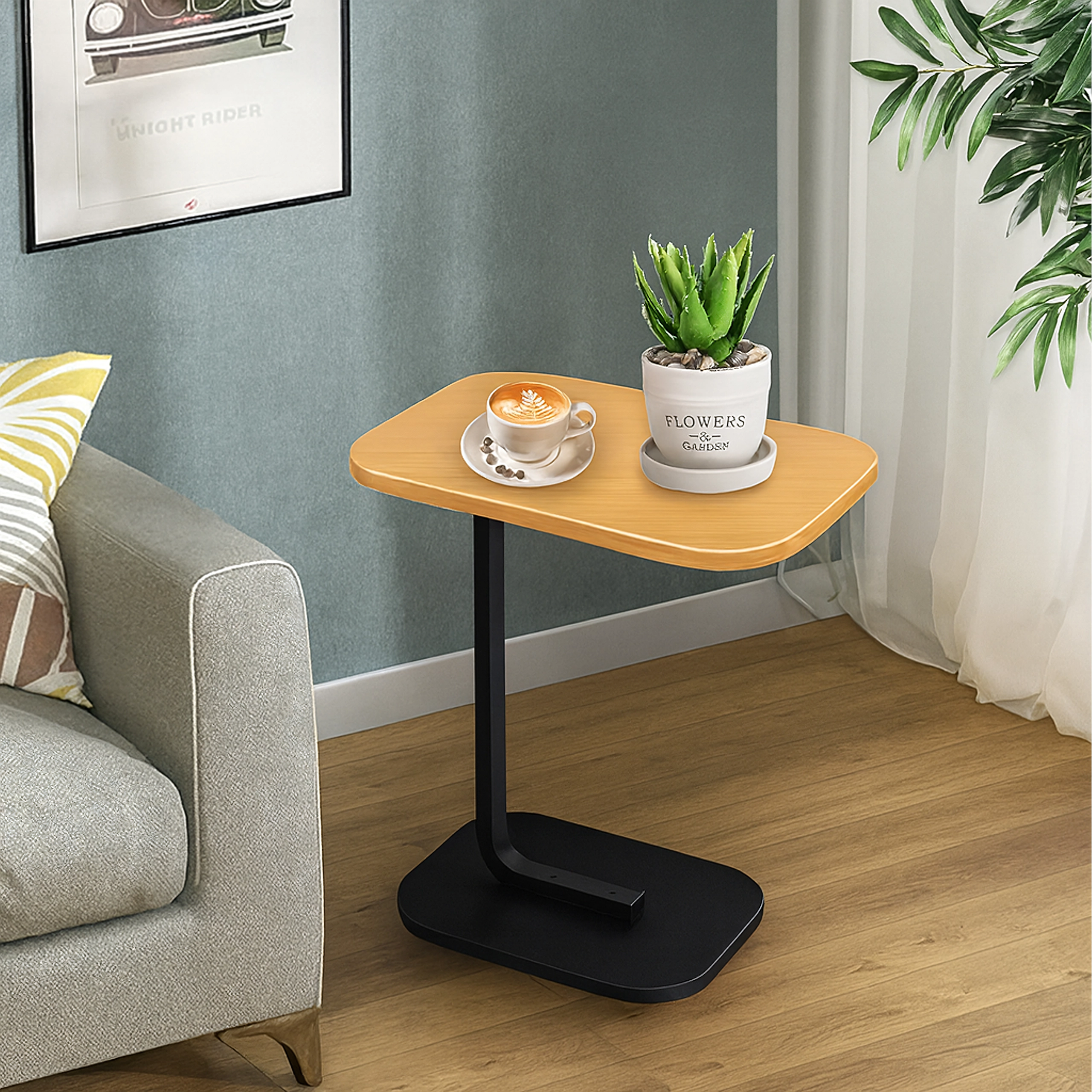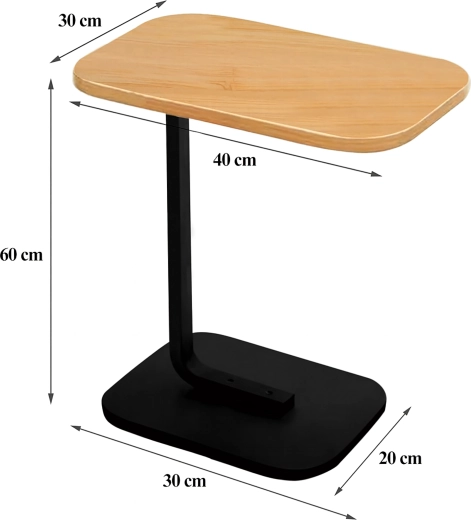 Eleganta măsuță cu cadru în formă de C combină un blat cu decor de lemn deschis cu o structură metalică neagră, durabilă. Este ideală ca măsuță laterală lângă canapea, noptieră lângă pat sau bază mobilă pentru lucrul la laptop. Datorită bazei suple o puteți glisa ușor sub mobilier pentru a economisi spațiu.