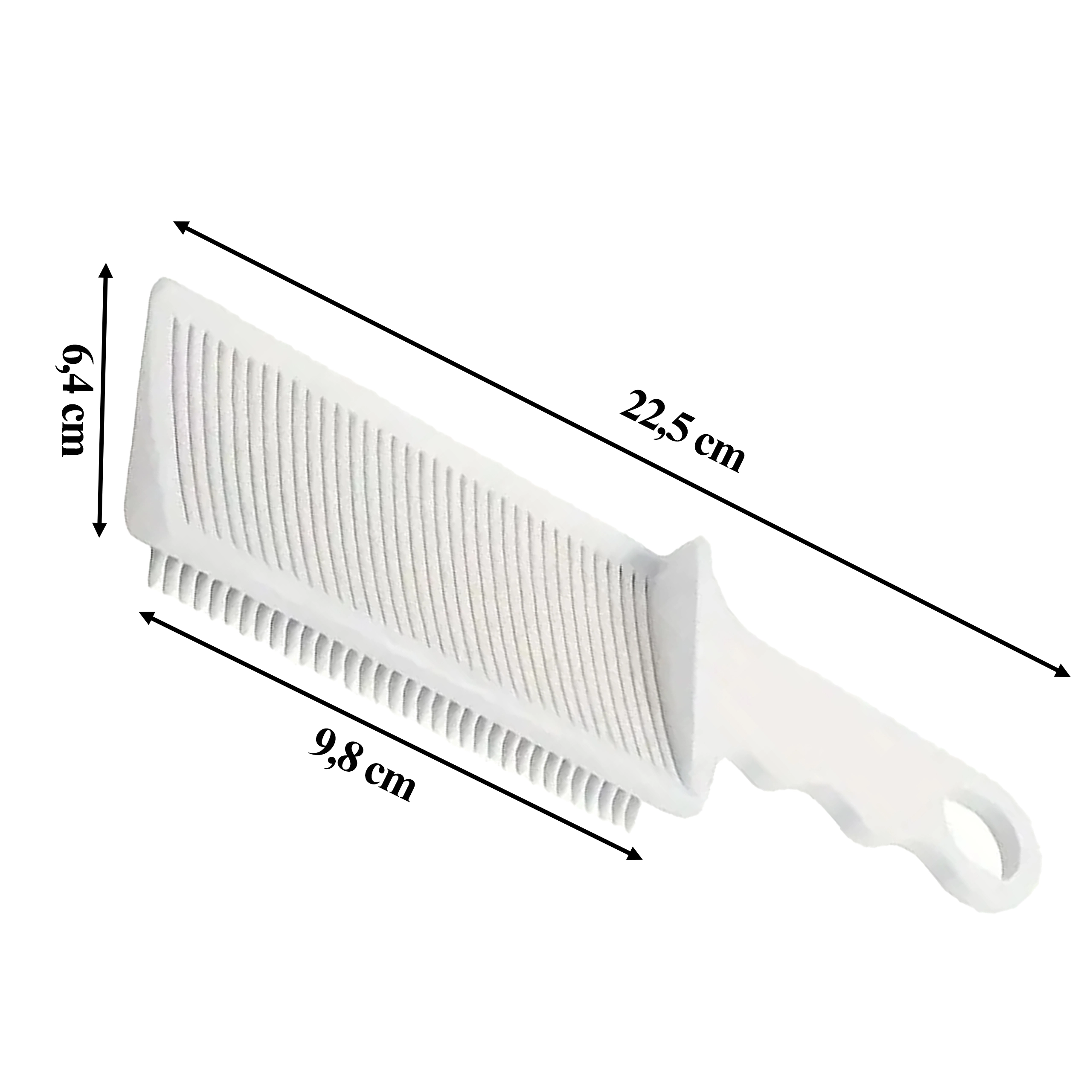 Structura ușoară și rezistentă din plastic de calitate este plăcută la atingere, ușor de întreținut și potrivită pentru utilizare zilnică în barbershop sau pentru aranjare acasă. Orificiul practic pentru agățare și forma ergonomică asigură prindere sigură și manevrare confortabilă.