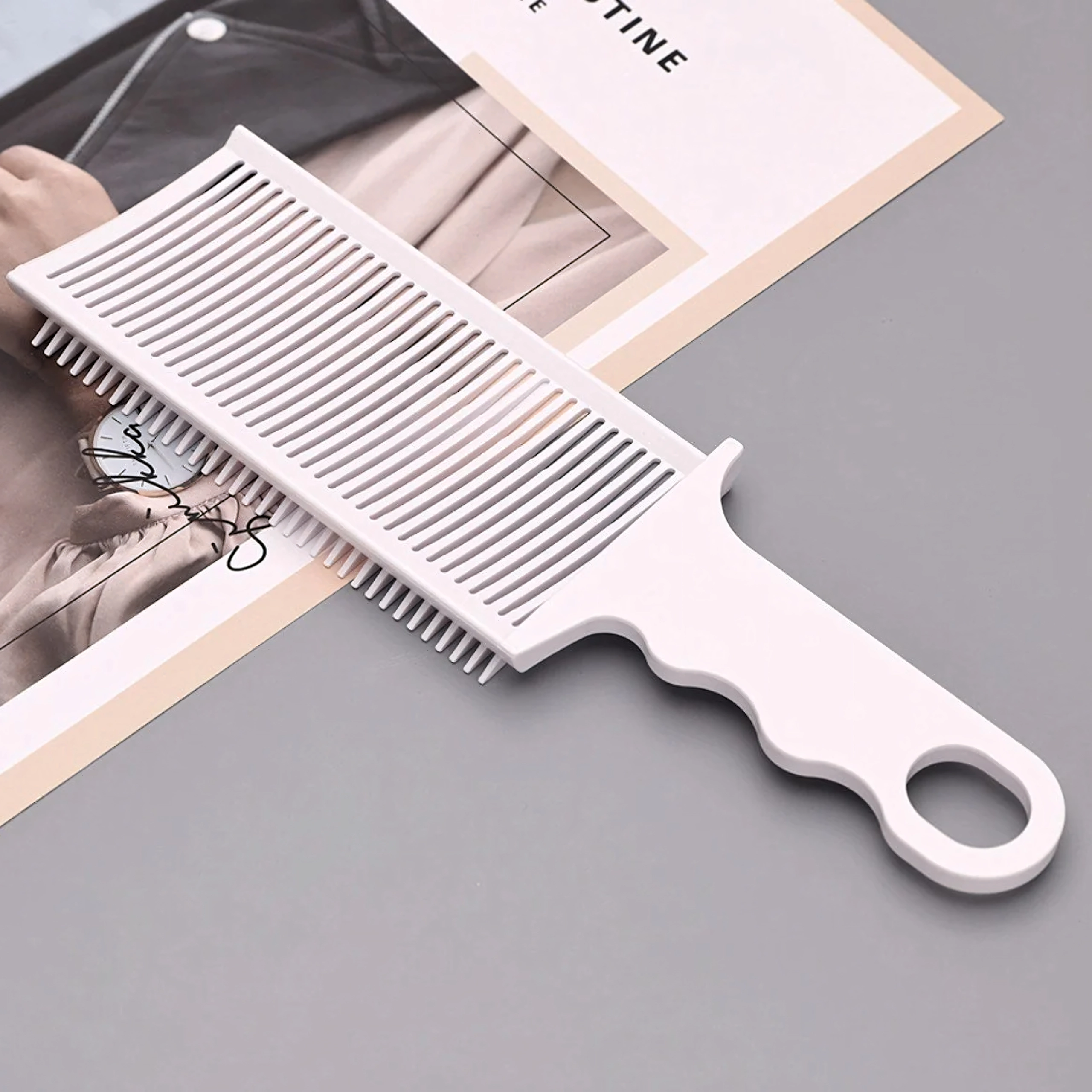 Cauți un pieptene de încredere pentru tunsori precise și tranziții perfecte? Acest pieptene profesional alb, cu mâner ergonomic, oferă control excelent la lucru cu foarfeca sau mașina. Dinții fini și medii ajută la secționarea și ghidarea precisă a părului, pentru linii curate și treceri netede.
