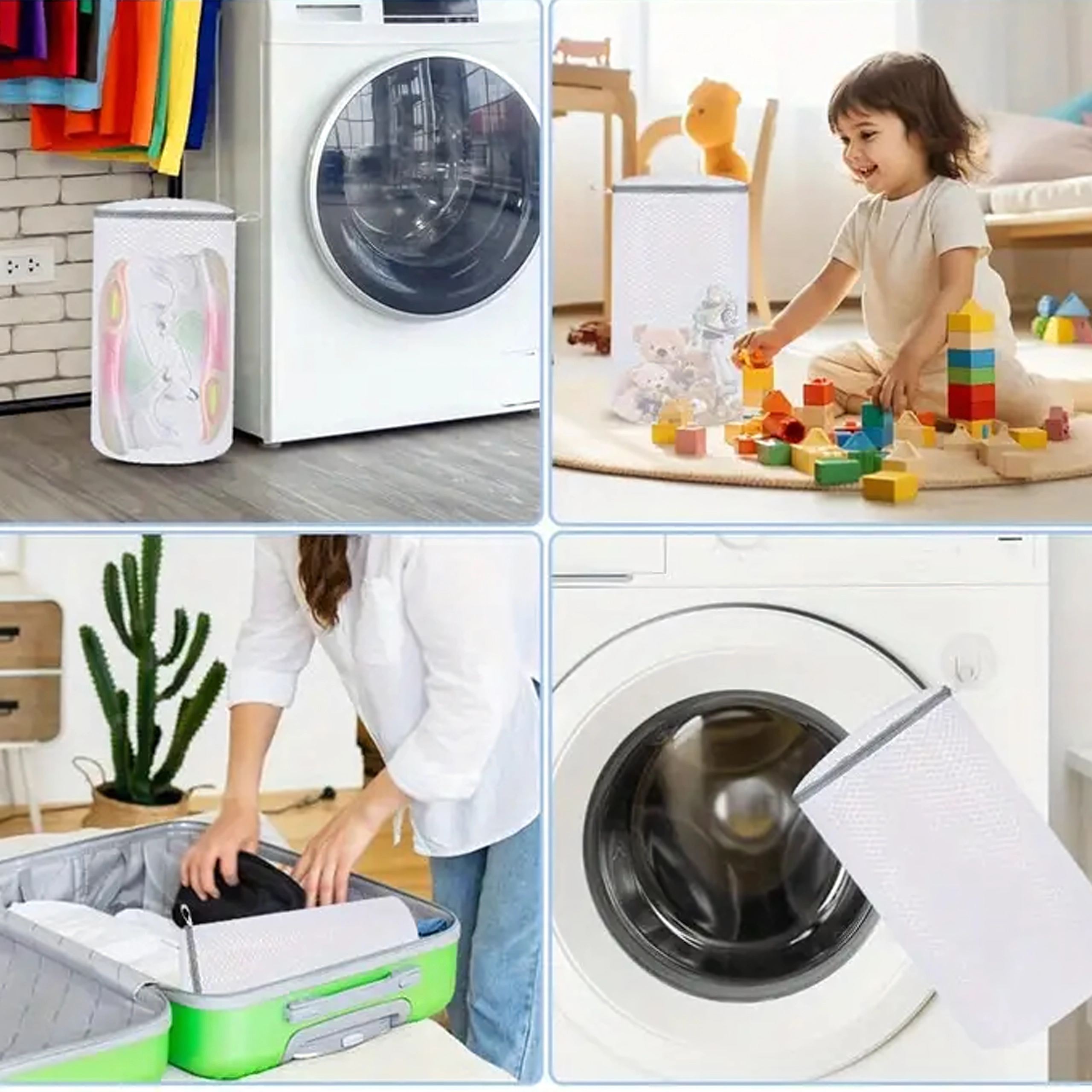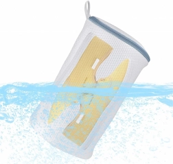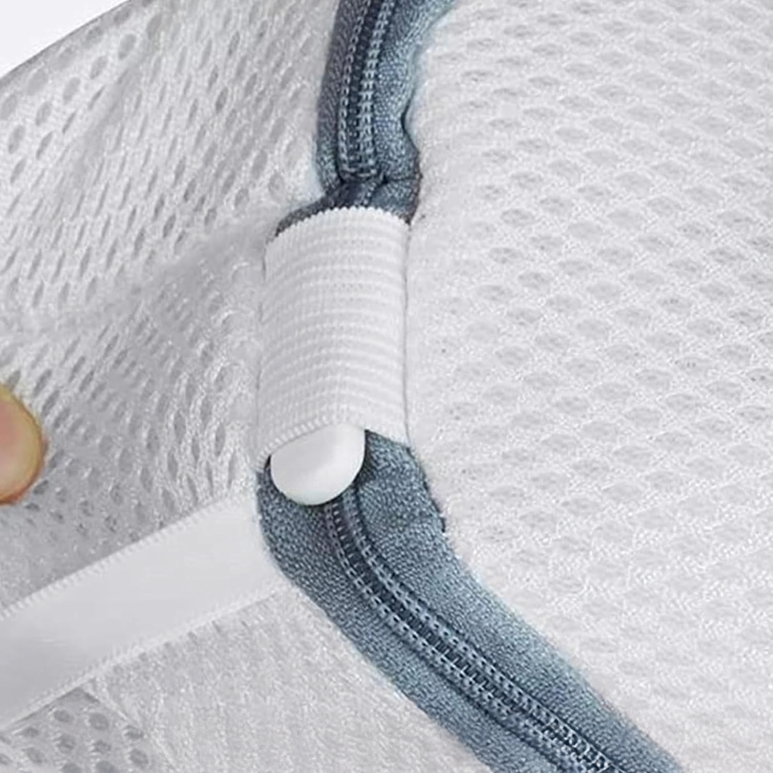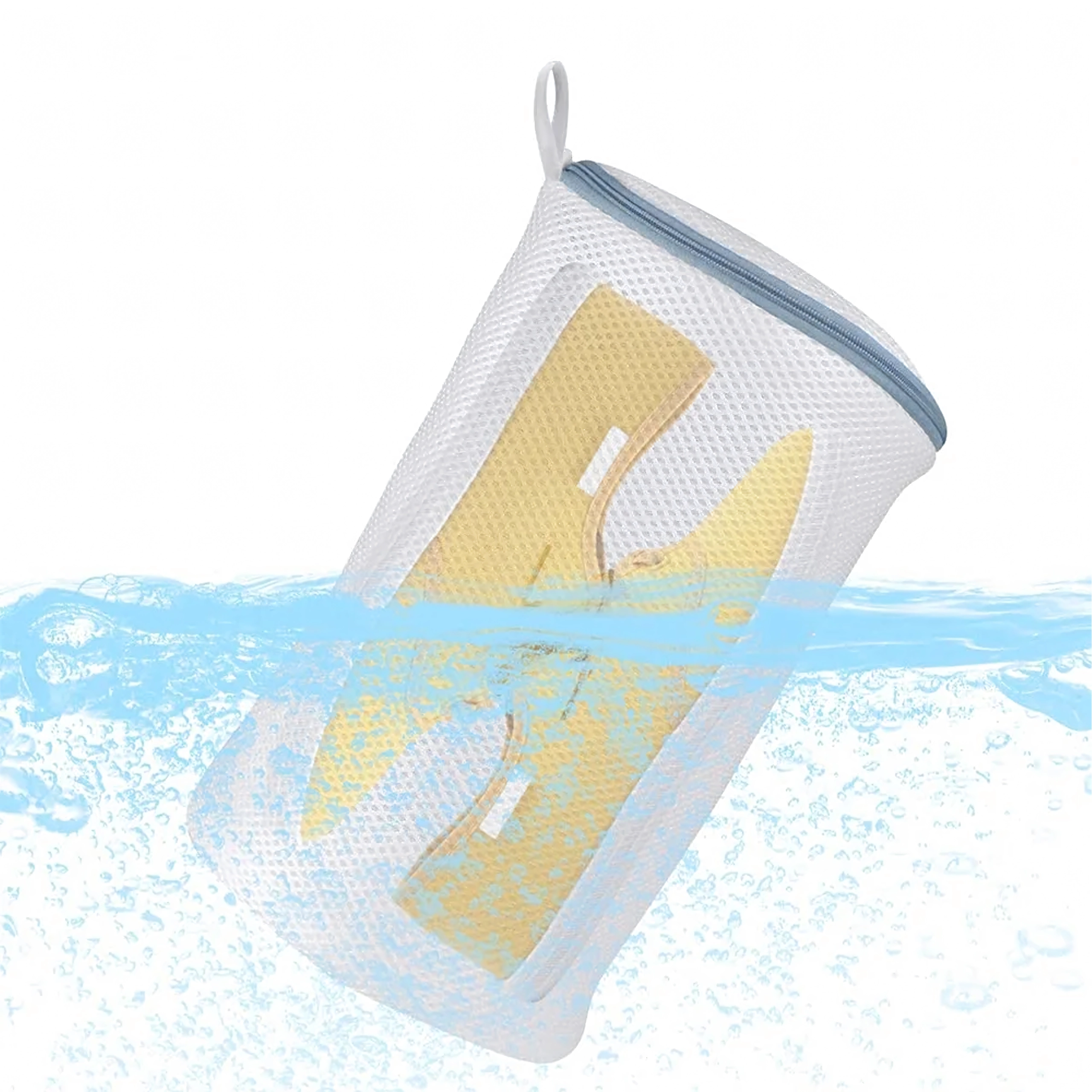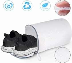 Plasa fină permite trecerea apei și a detergentului pentru o curățare temeinică, în timp ce fermoarul rezistent închide în siguranță conținutul și previne încurcarea șireturilor.