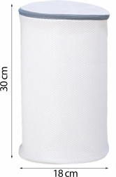 Acest săculeț cilindric din plasă aerată permite o circulație eficientă a apei și a detergentului, protejând totodată încălțămintea de zgârieturi și mașina de spălat de loviturile tălpilor. Închiderea cu fermoar păstrează pantofii bine fixați în interior și reduce riscul încurcării șireturilor.