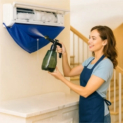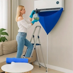 Ușurați întreținerea aparatelor de aer condiționat de perete cu această husă de protecție impermeabilă, care colectează în mod fiabil apa murdară, soluția de curățare și impuritățile. Furtunul de scurgere de 2 m integrat evacuează în siguranță lichidul în găleată sau în scurgere, iar strângerea elastică ajută la etanșarea zonei din jurul unității pentru o muncă curată și rapidă.