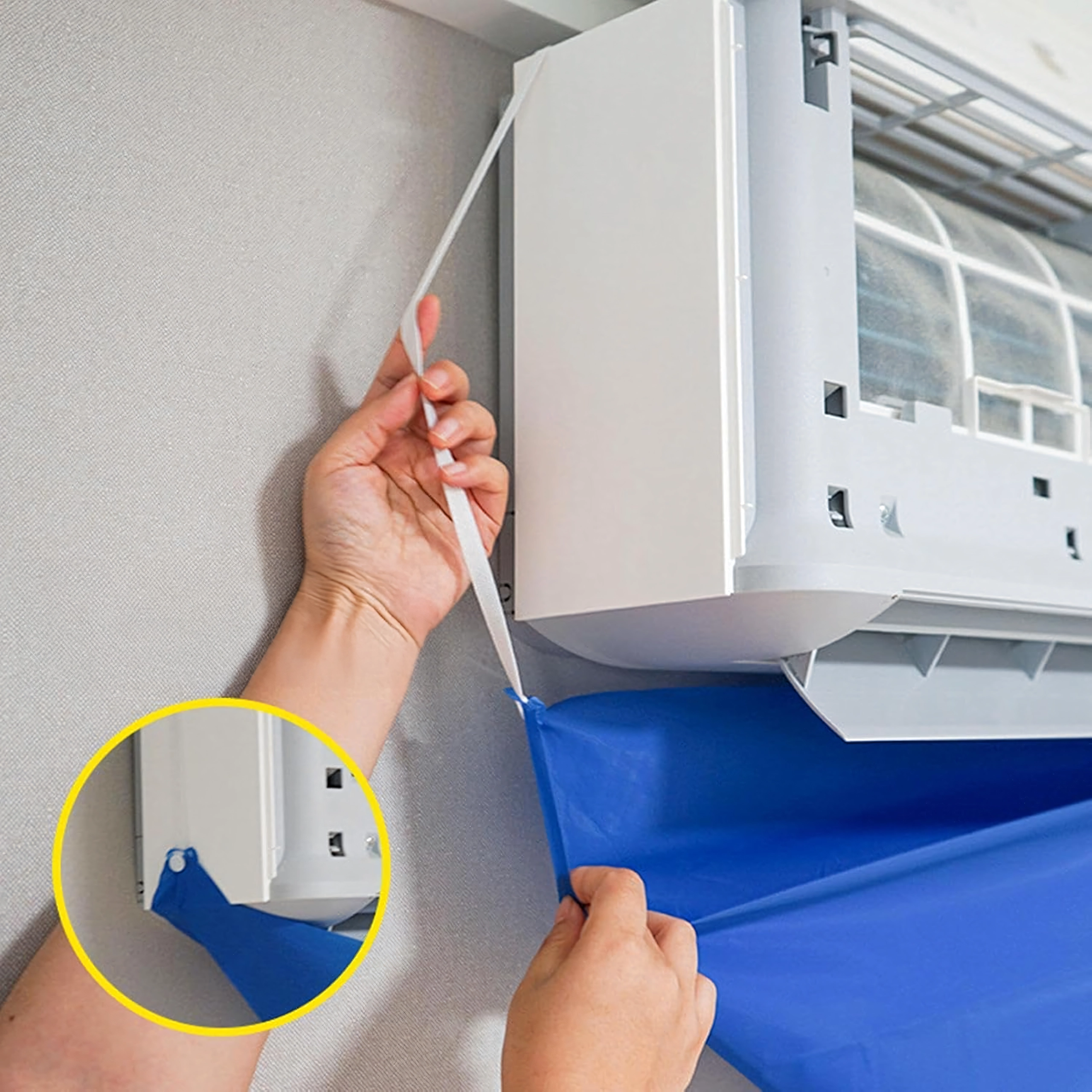 Strângerea elastică și curelele reglabile permit fixarea rapidă sub unitatea AC și o bună aderare la corpul acesteia.