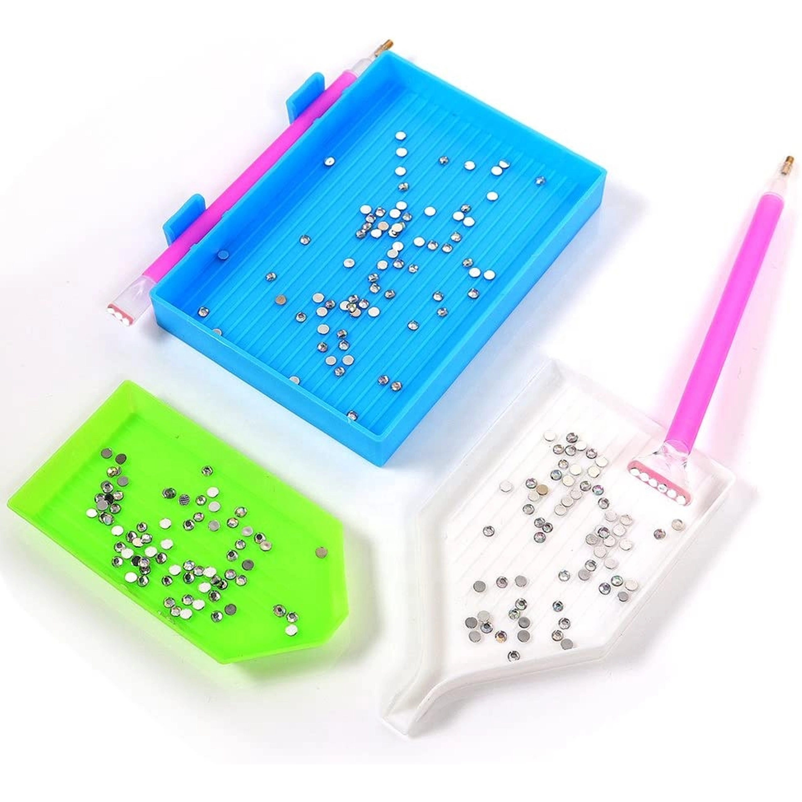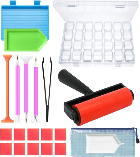 Creează imagini strălucitoare cu setul complet de unelte pentru diamond painting. Datorită rolei precise obții aderare uniformă și o suprafață netedă, fără pietricele ieșite în relief. Tăvițele striate și aplicatoarele cu mai multe capete accelerează lucrul și îmbunătățesc precizia plasării.