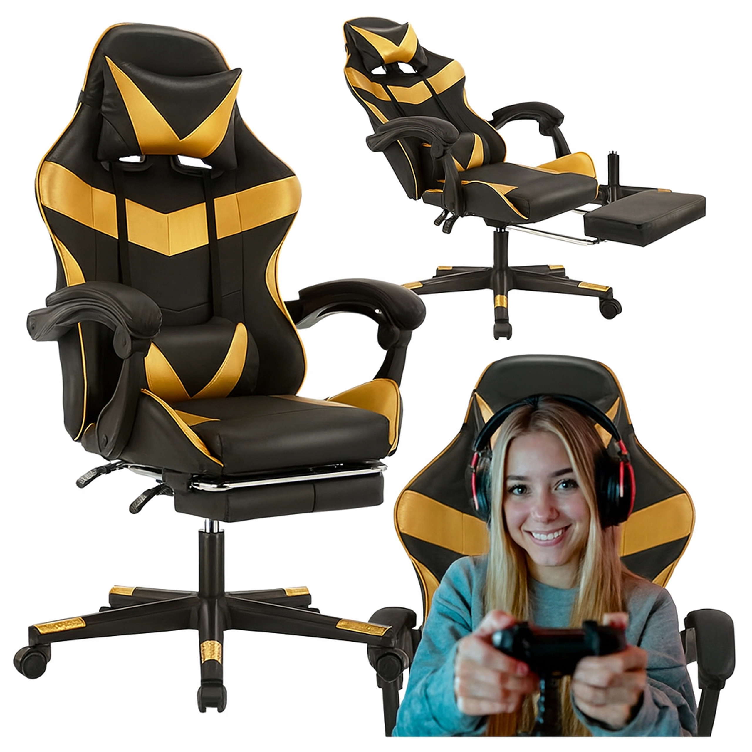 Scaunul de gaming cu suport extensibil pentru picioare este conceput pentru ședere îndelungată fără oboseală. Spătarul înalt cu susținere laterală, tapițeria plăcută și reglarea lină a înclinării îți permit să treci rapid de la concentrarea de lucru la relaxare. Datorită bazei rotative și roților de deplasare, te muți ușor între monitor, birou și spațiile de depozitare.