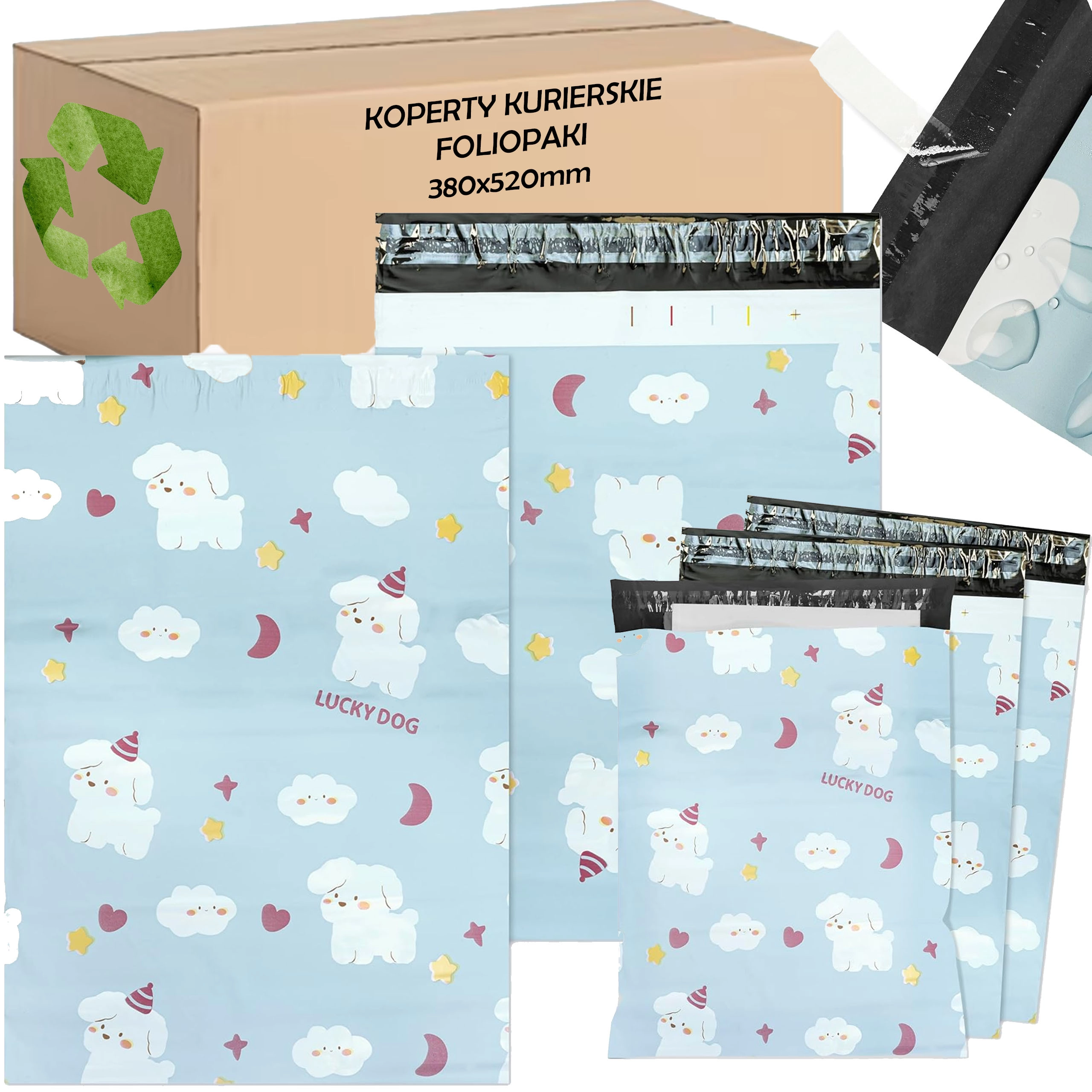 Plicuri de curierat practice și rezistente din folie, pentru ambalare sigură și expediere rapidă. Format 380 × 520 mm, pachet 50 buc., cu bandă autoadezivă pentru închidere rapidă și protecție împotriva deschiderii neautorizate. Motivul stilat LUCKY DOG oferă coletelor un aspect distinctiv.