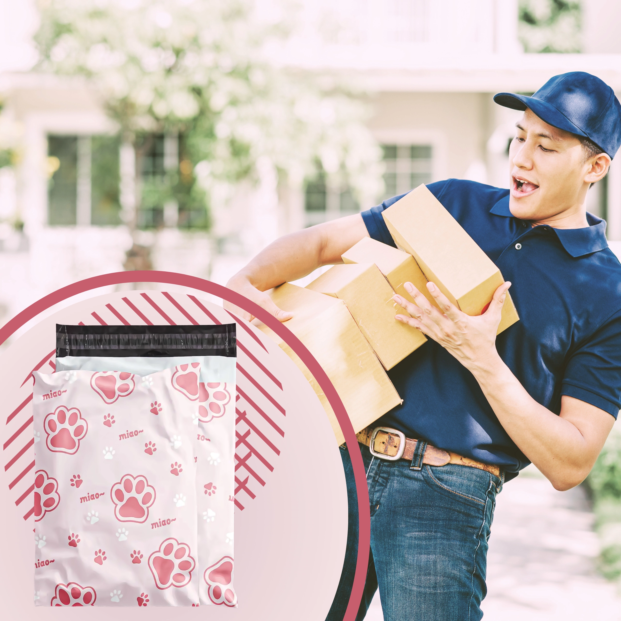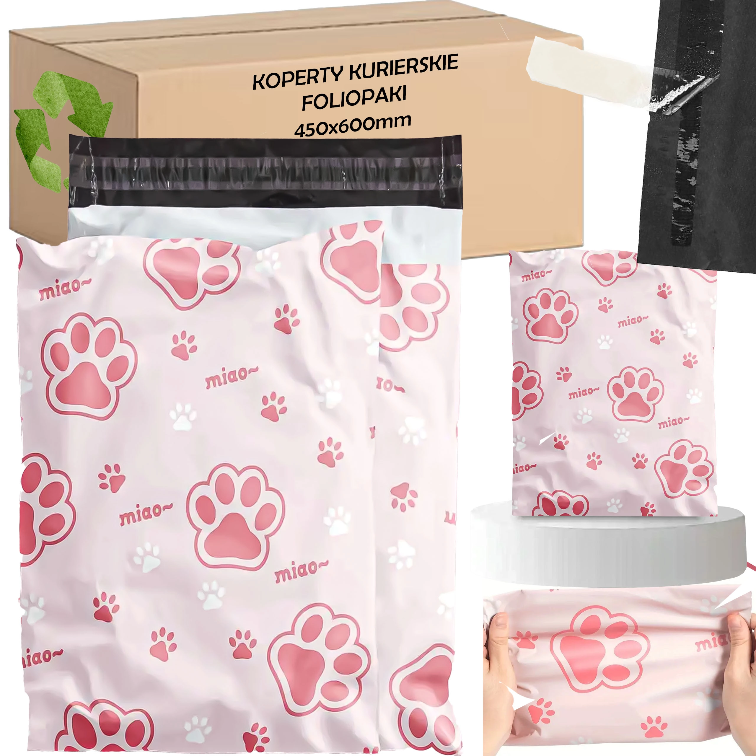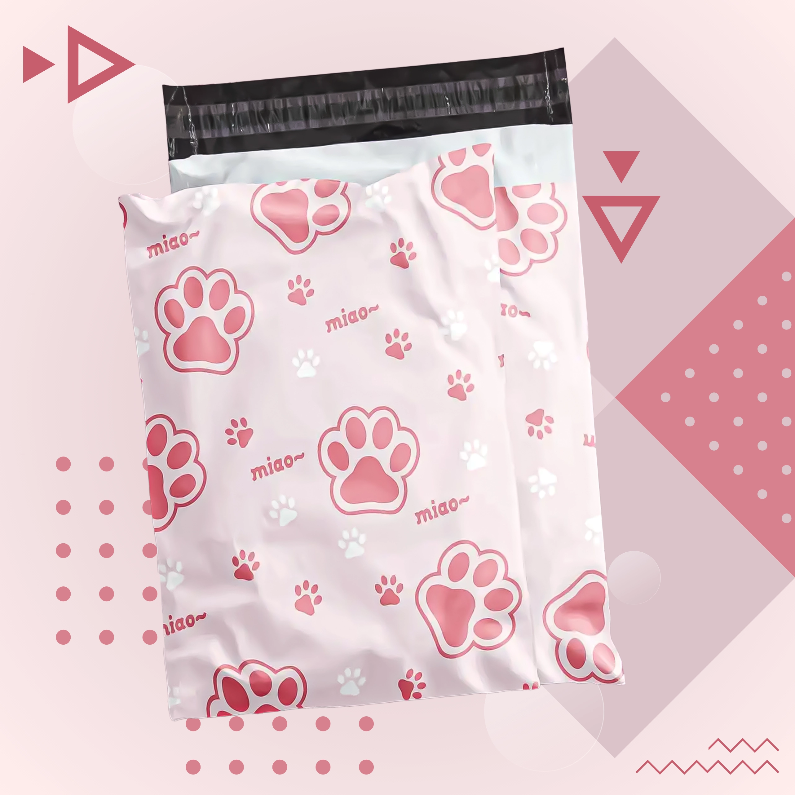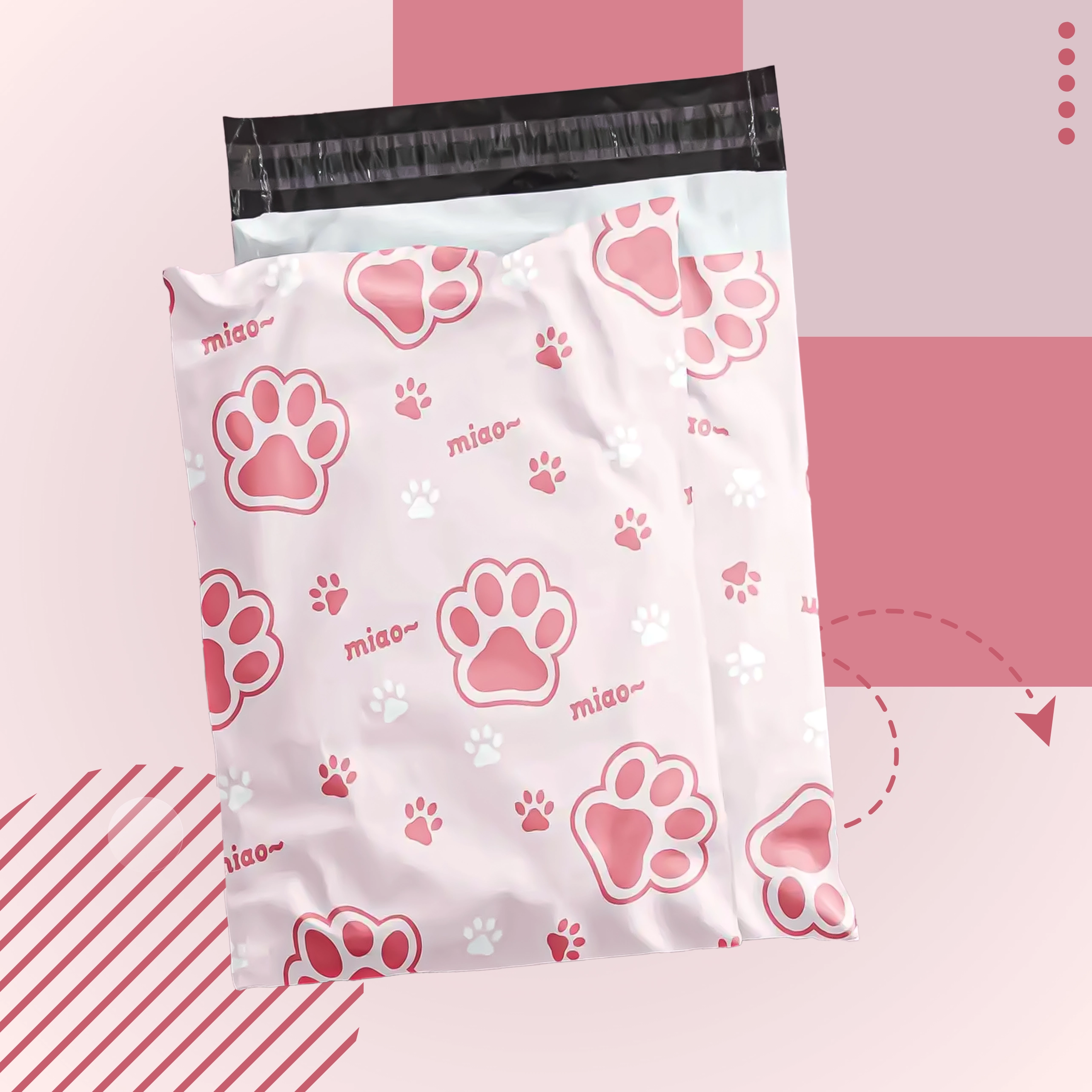 Decorul cu inscripții și lăbuțe roz oferă coletelor personalitate și îmbunătățește experiența clienților, fără a compromite practicitatea sau rezistența plicului.
