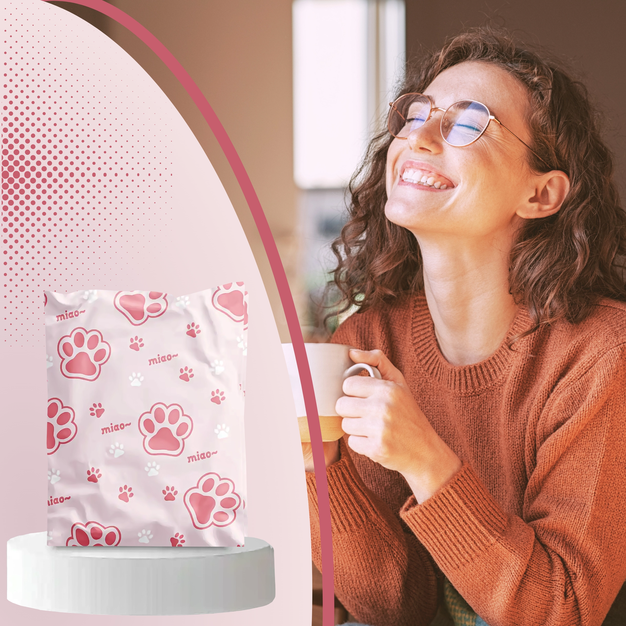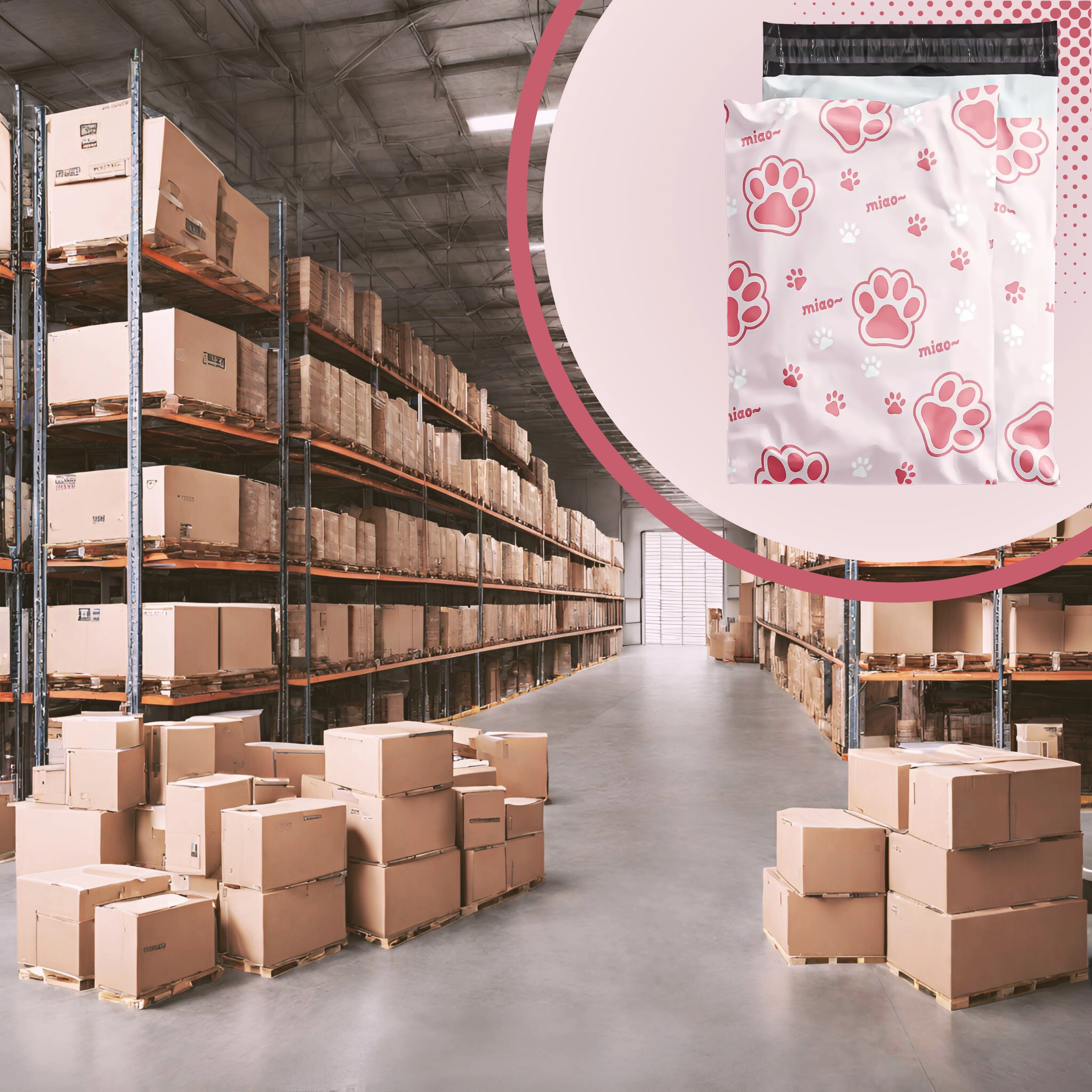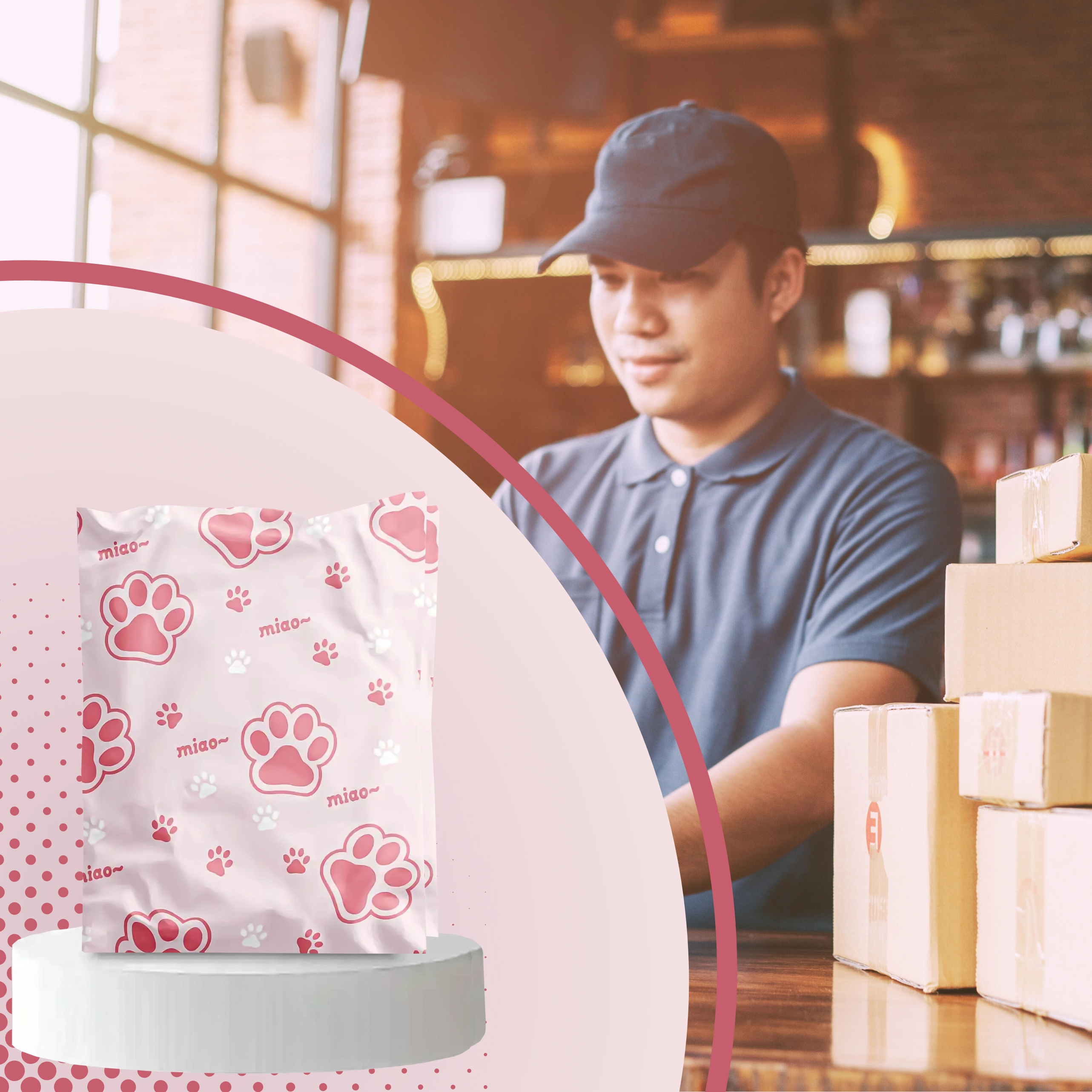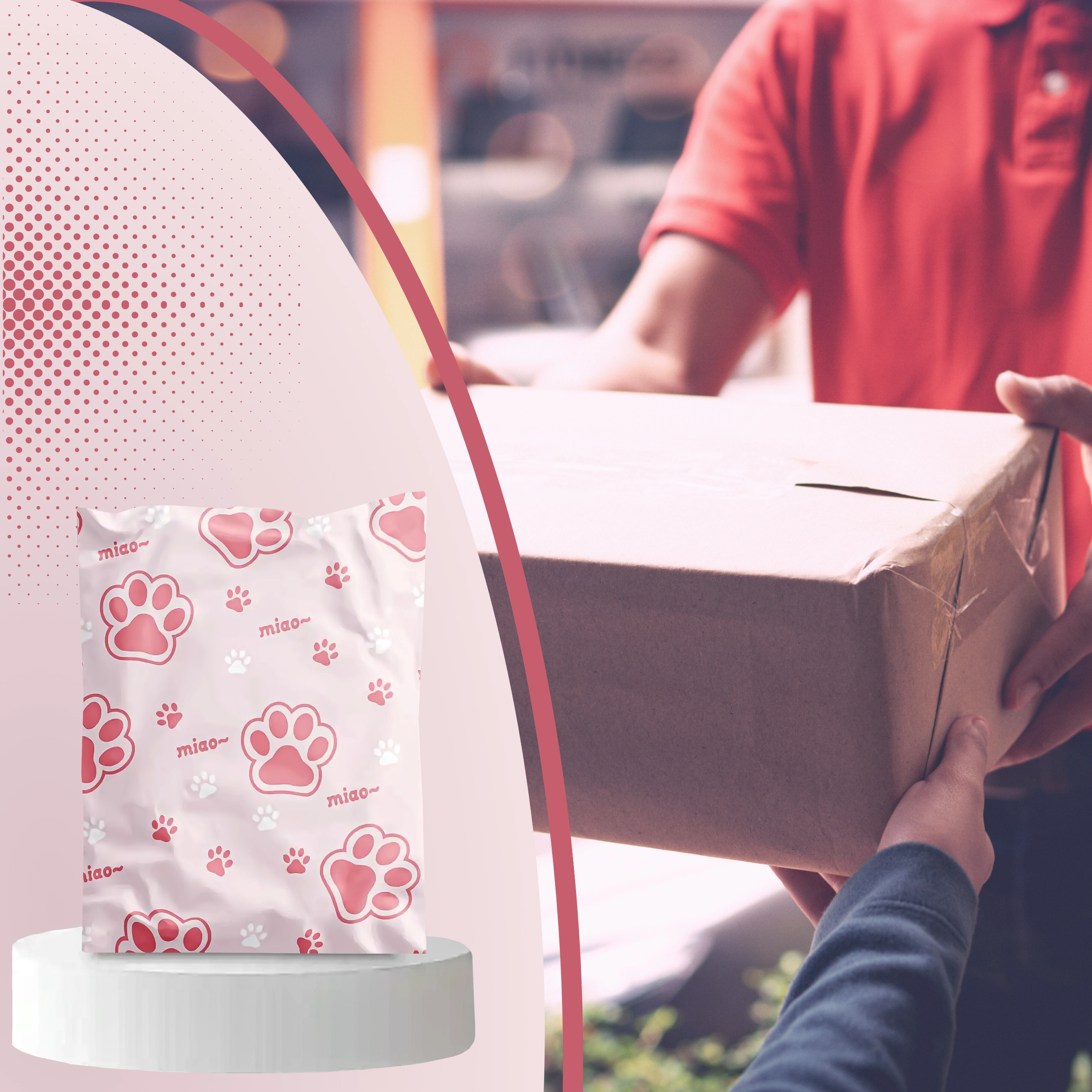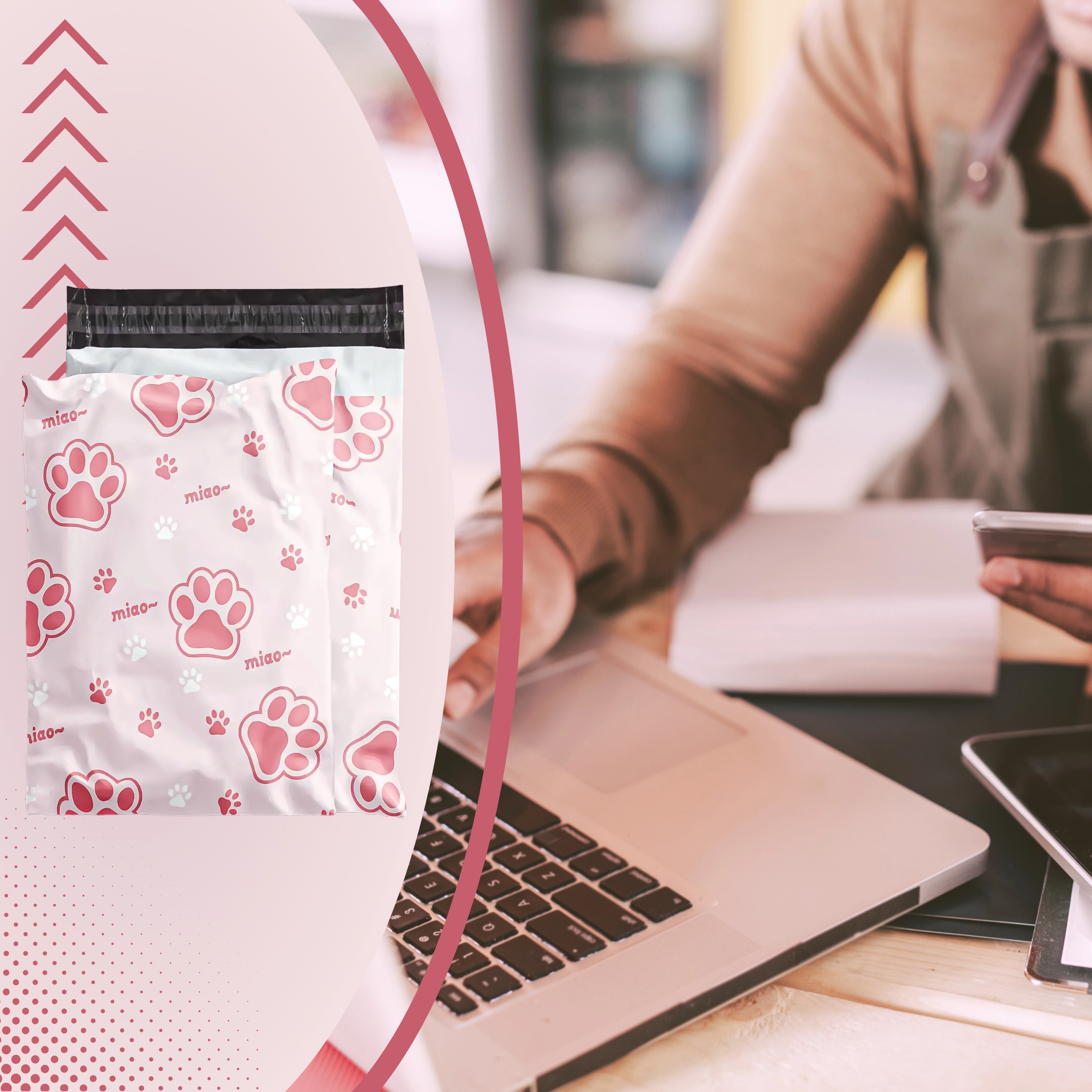 Decorul cu inscripții și lăbuțe roz oferă coletelor personalitate și îmbunătățește experiența clienților, fără a compromite practicitatea sau rezistența plicului.
