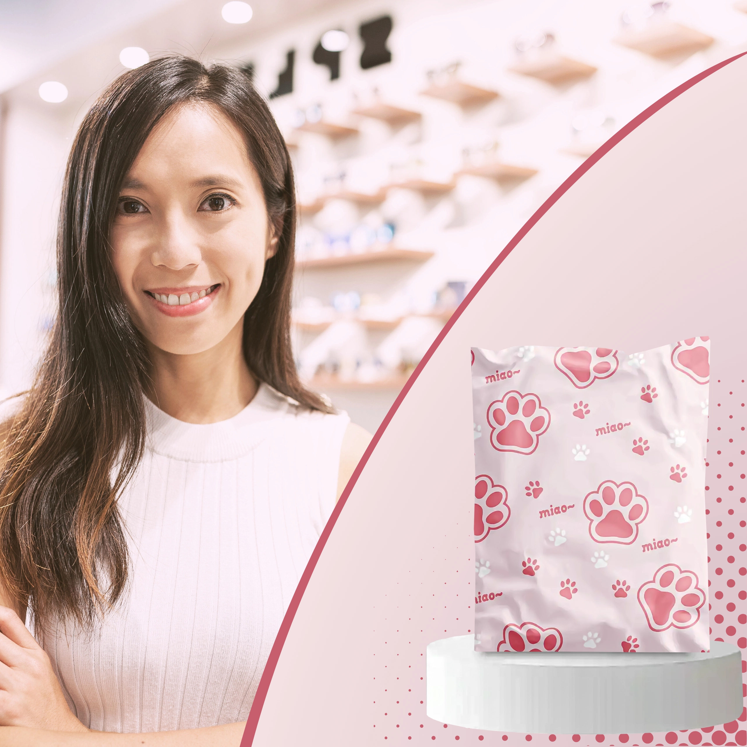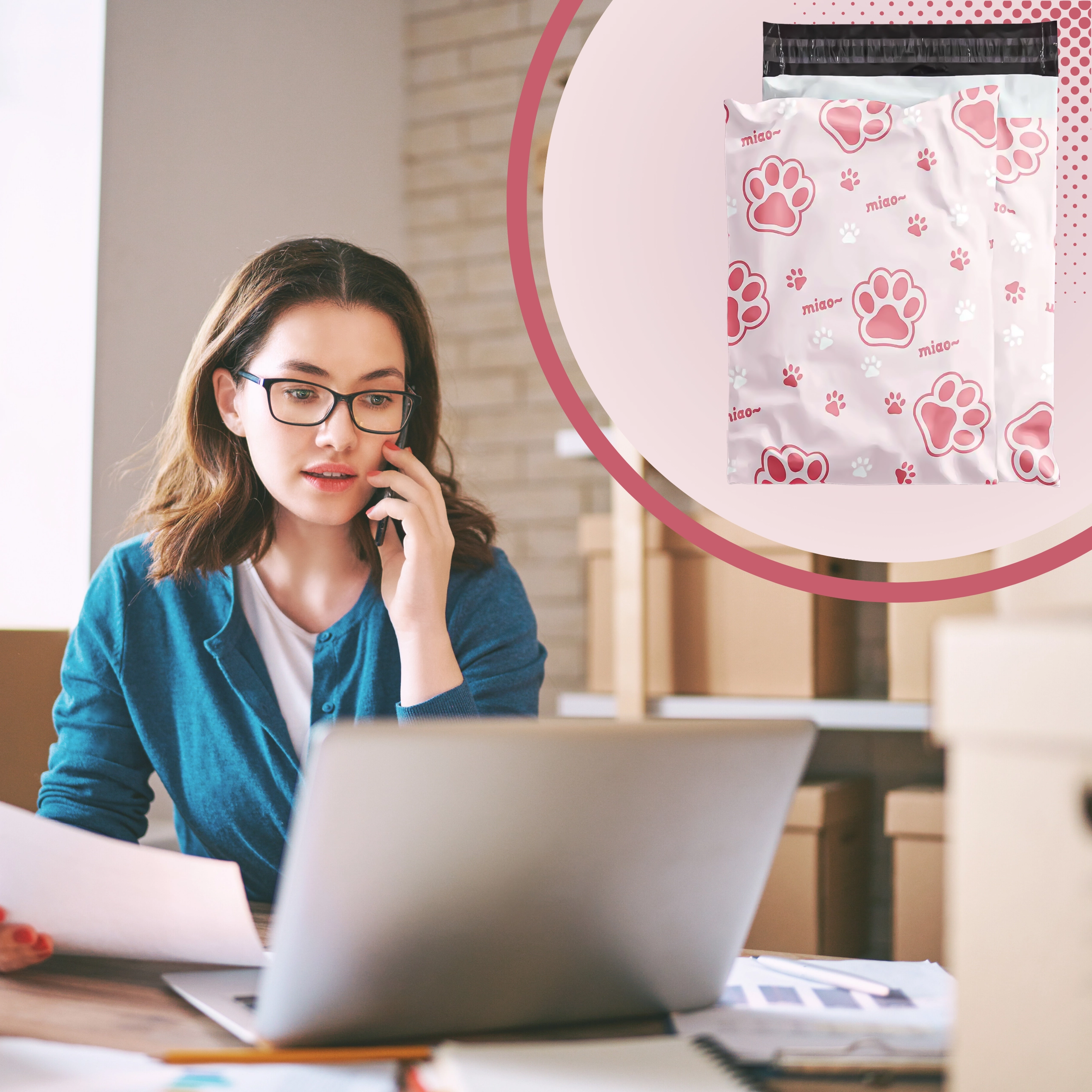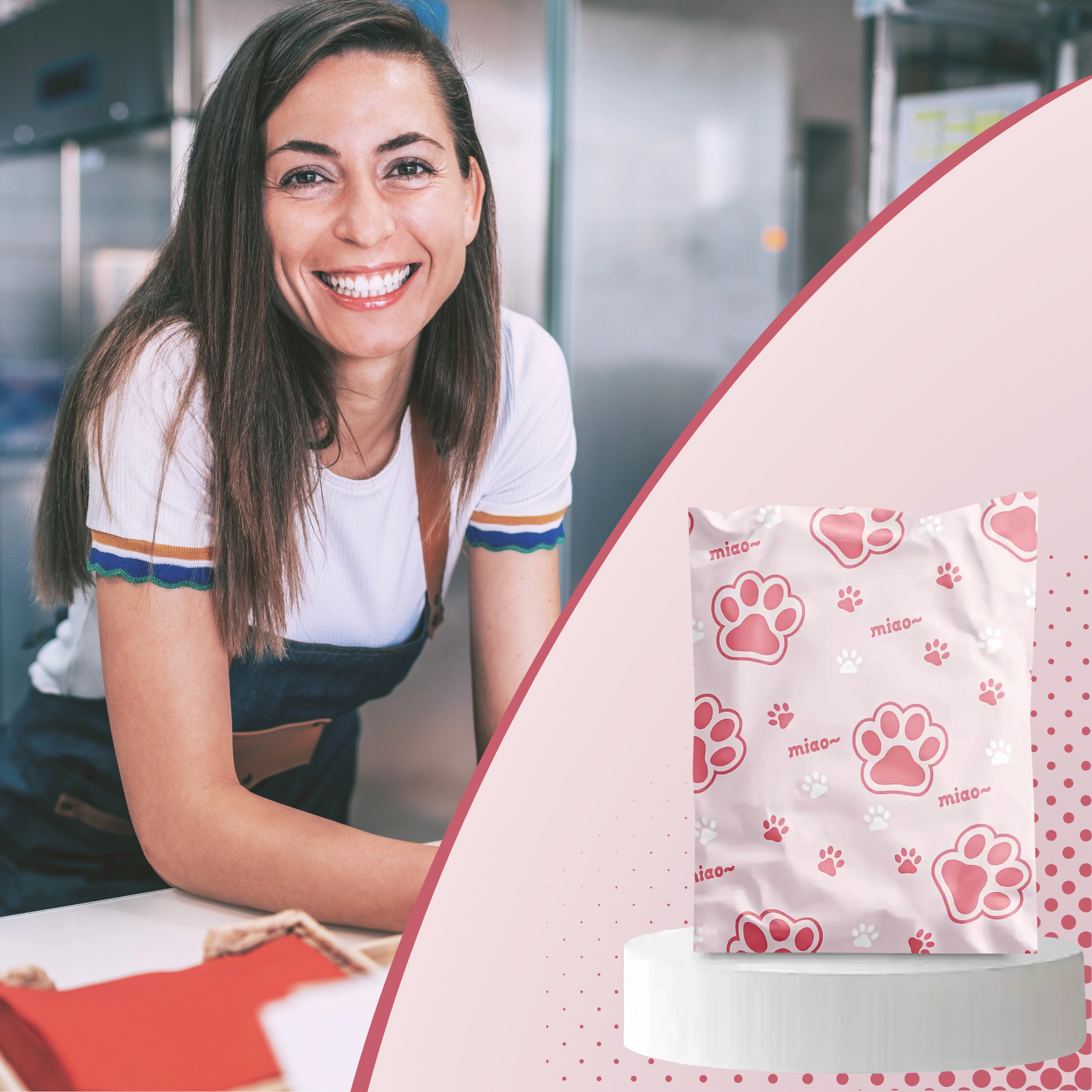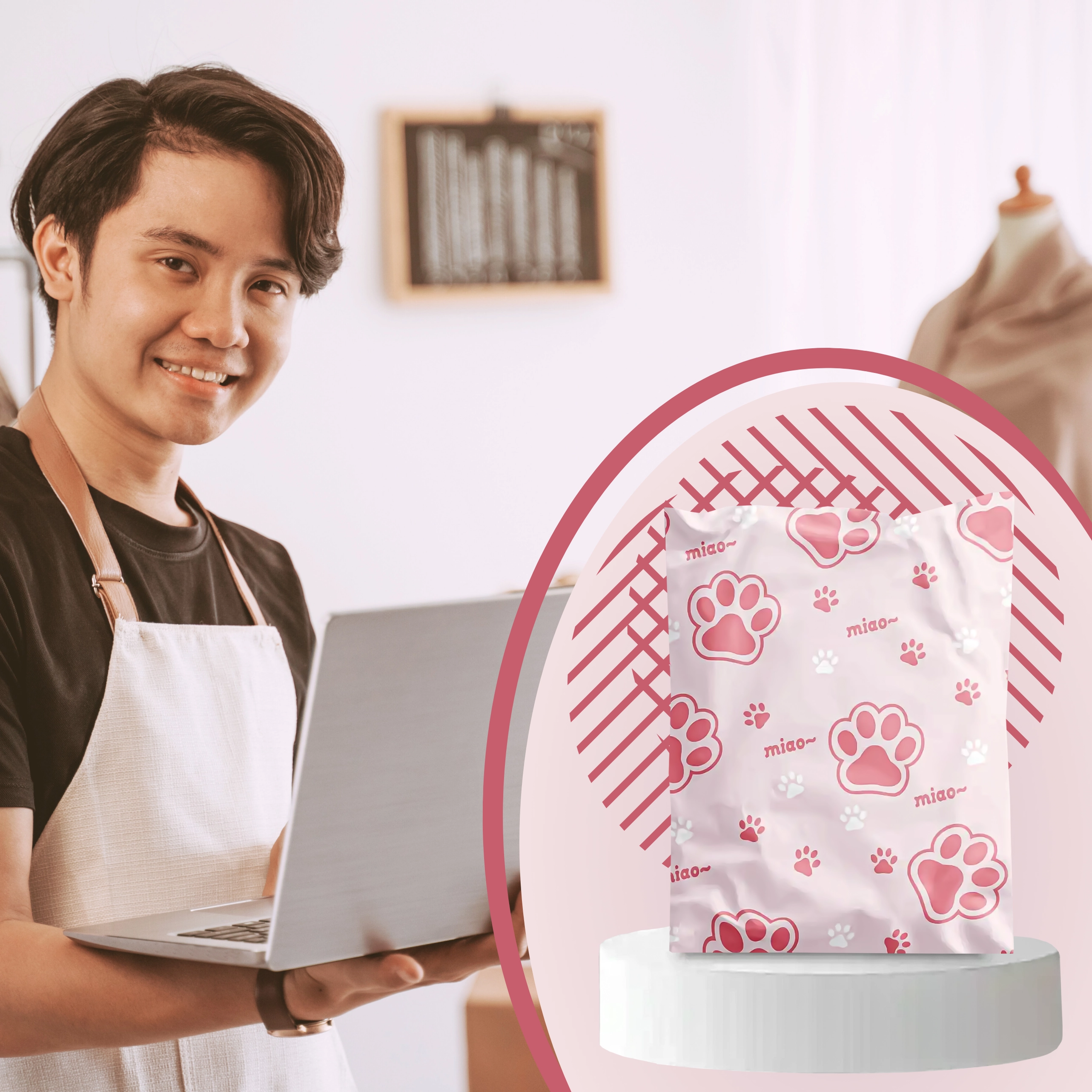 Decorul cu inscripții și lăbuțe roz oferă coletelor personalitate și îmbunătățește experiența clienților, fără a compromite practicitatea sau rezistența plicului.