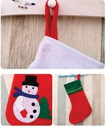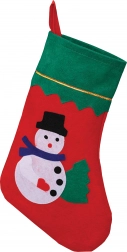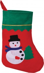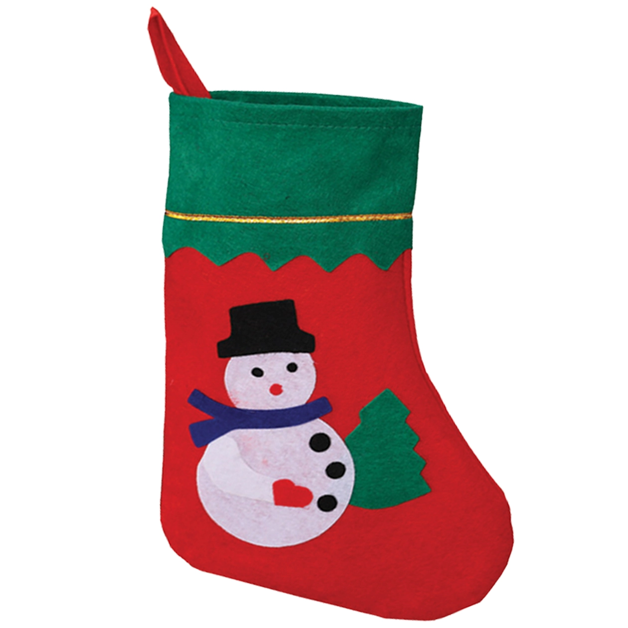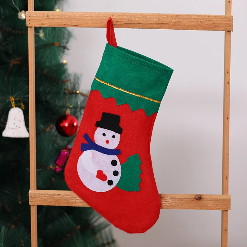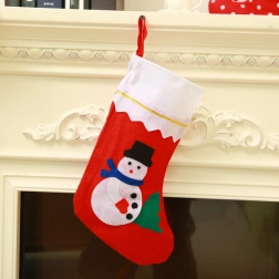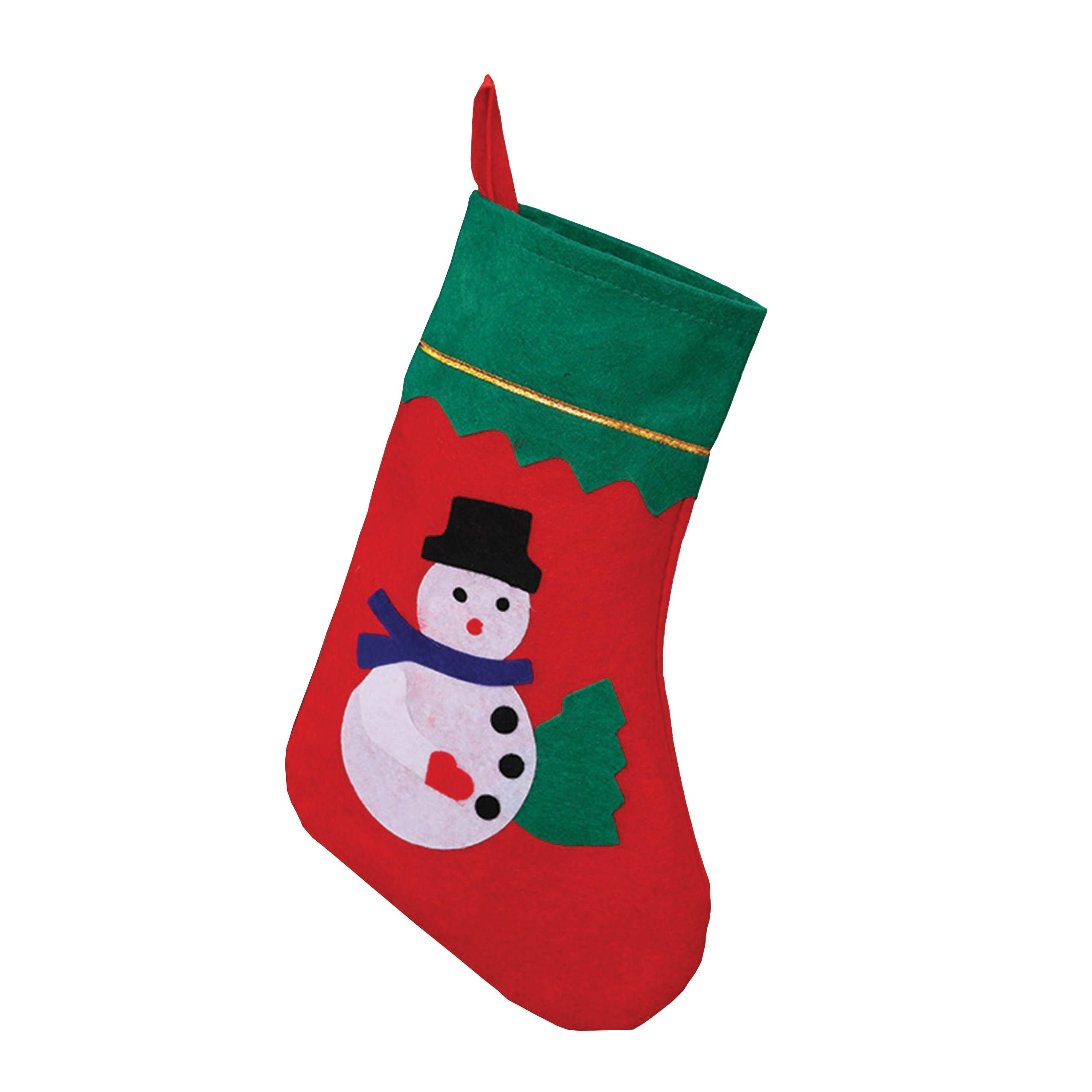 Omul de zăpadă vesel, aplicat cu detalii, oferă ciorapului personalitate și accentuează atmosfera de Crăciun lângă șemineu sau brad.