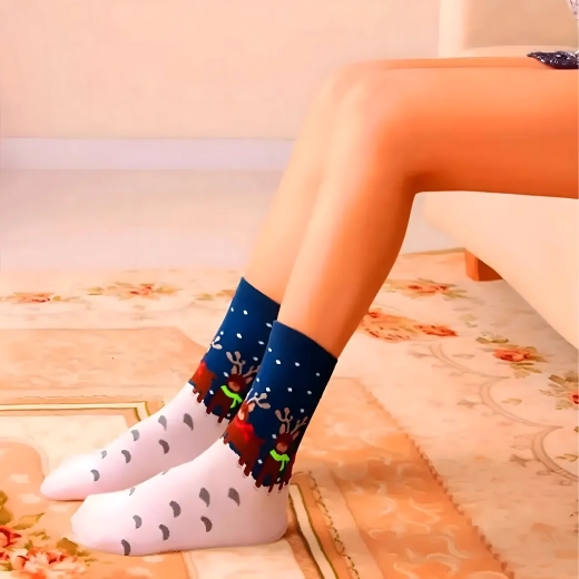 Îmbogățește-ți garderoba cu șosete jucăușe și confortabile cu motive de sărbători. Datorită bumbacului de calitate, șosetele sunt moale, respirabile și potrivite pentru purtare zilnică. Modelele colorate se potrivesc perfect ținutelor de iarnă și le conferă stare de spirit festivă.