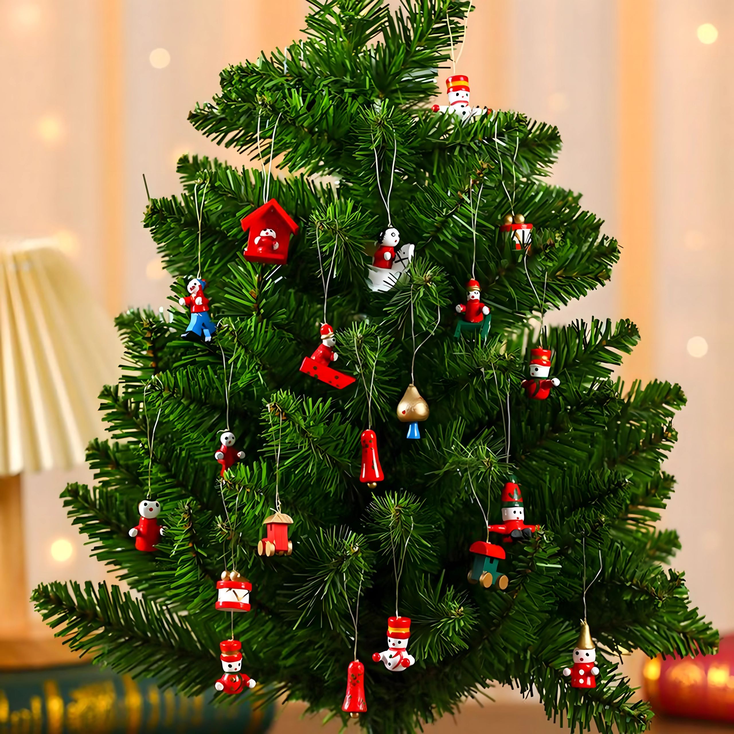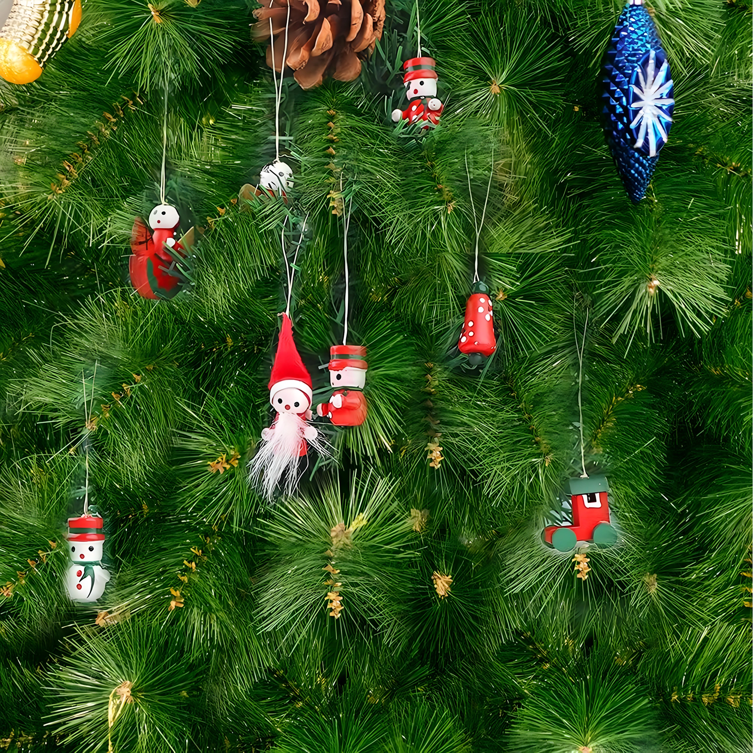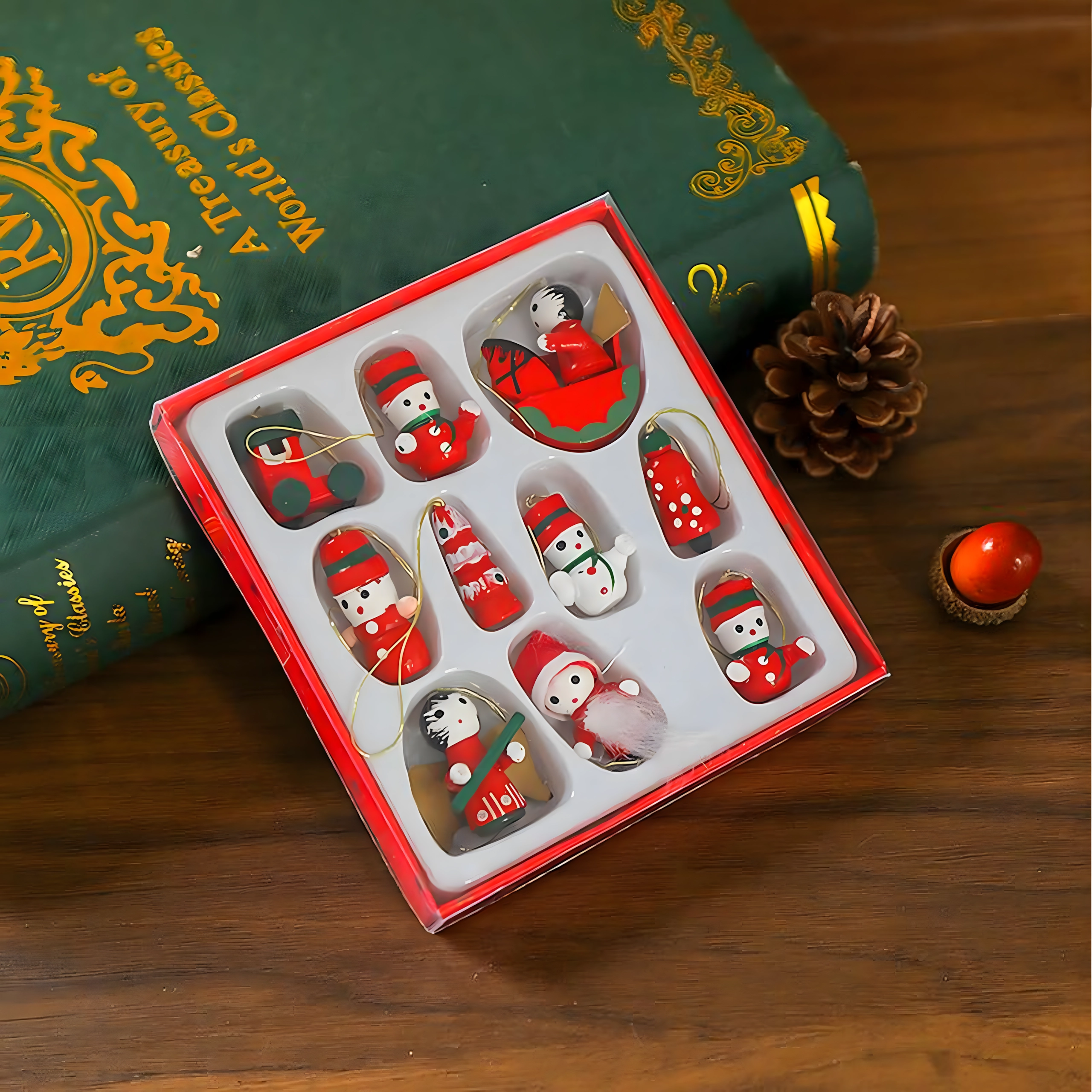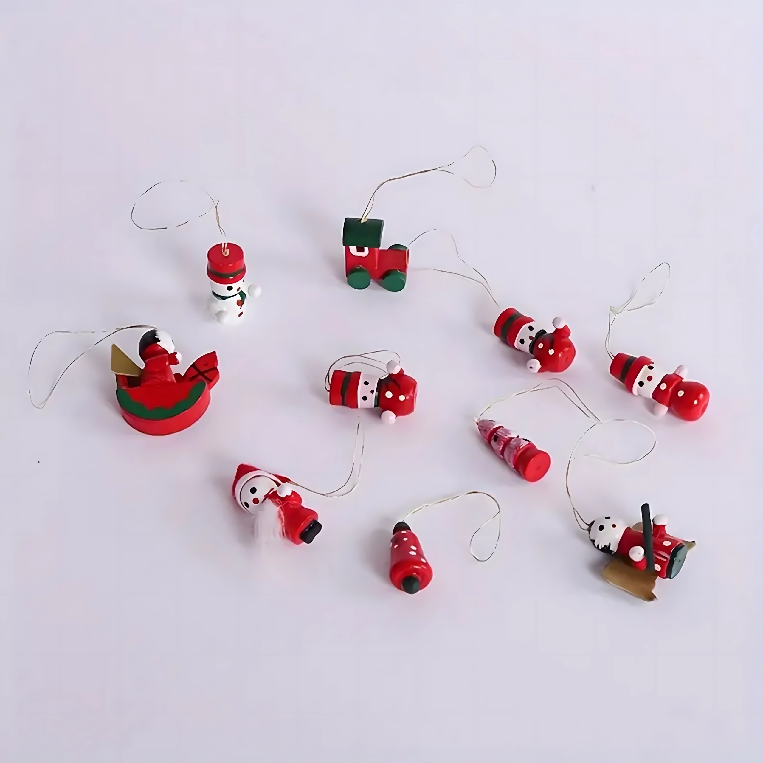 Set de 10 ornamente de Crăciun din lemn pentru agățat este o decorațiune atemporală care aduce farmec oricărui brad și oricărei decorări de sărbătoare. Sunt realizate din lemn ușor și imposibil de spart, fiind sigure pentru copii și animale de companie. Motive variate – gheată, Moș Crăciun, brăduț, înger, clopoțel și altele – creează acasă o atmosferă caldă și festivă.