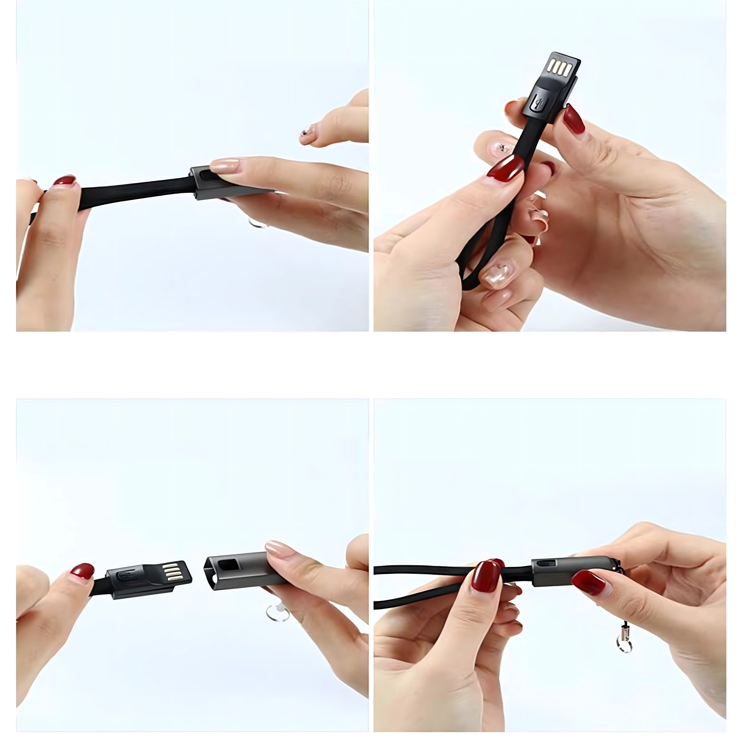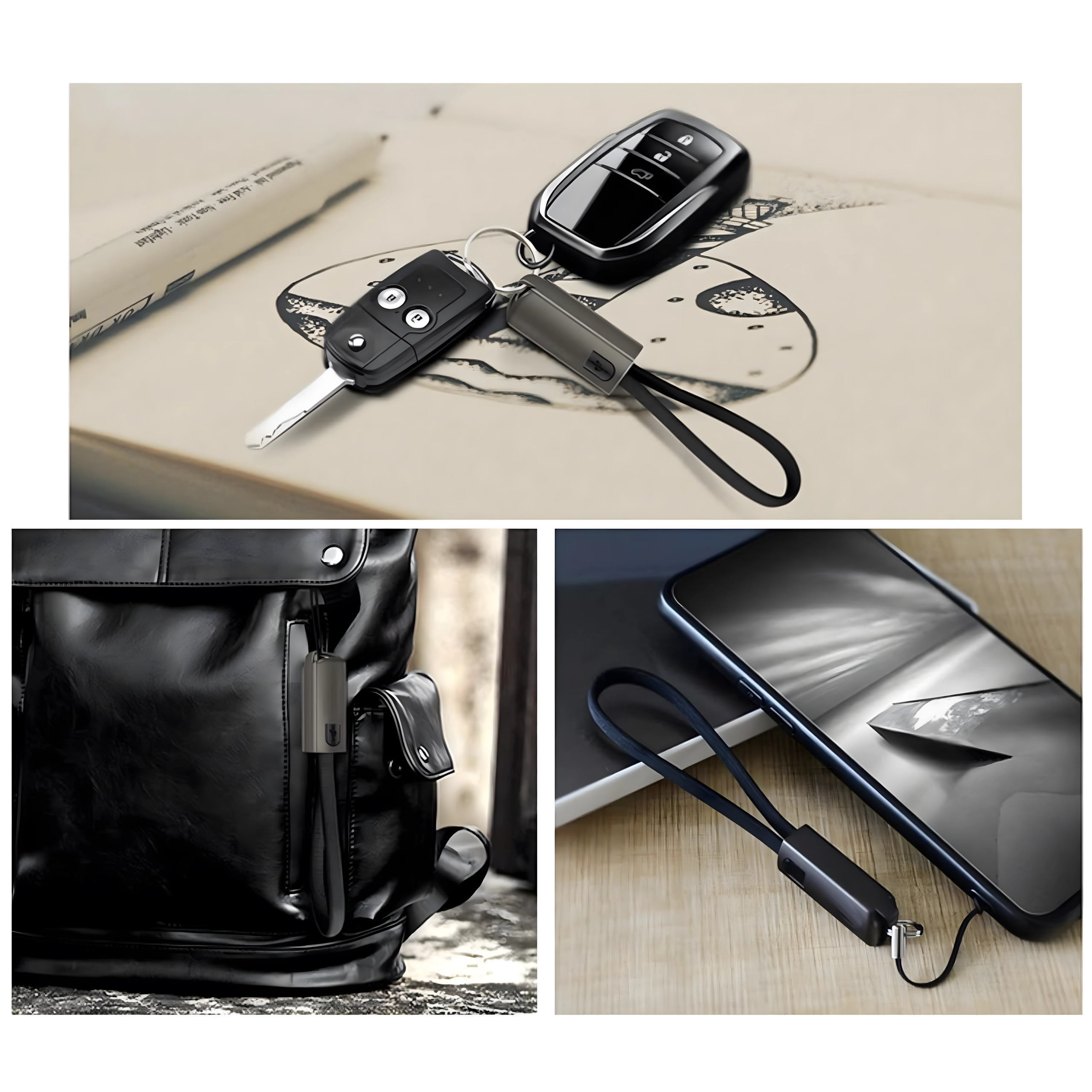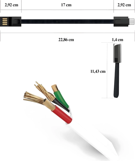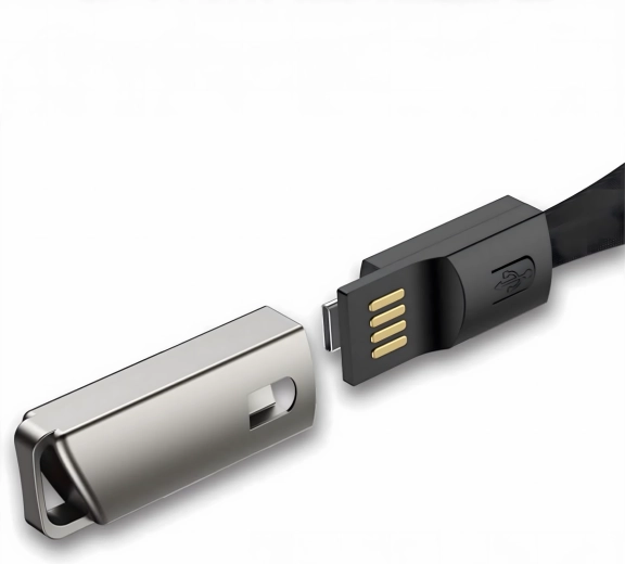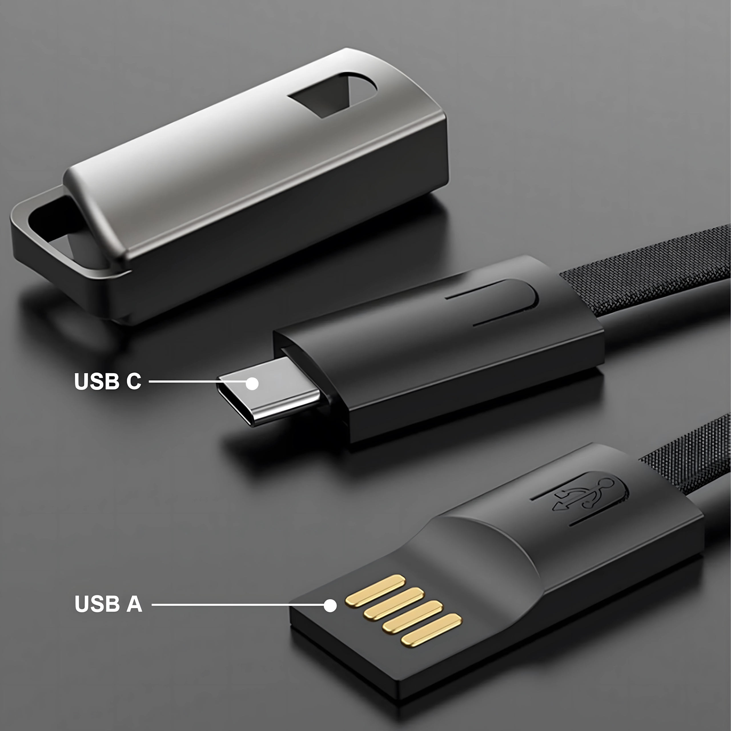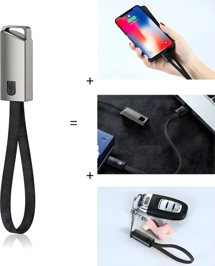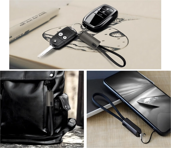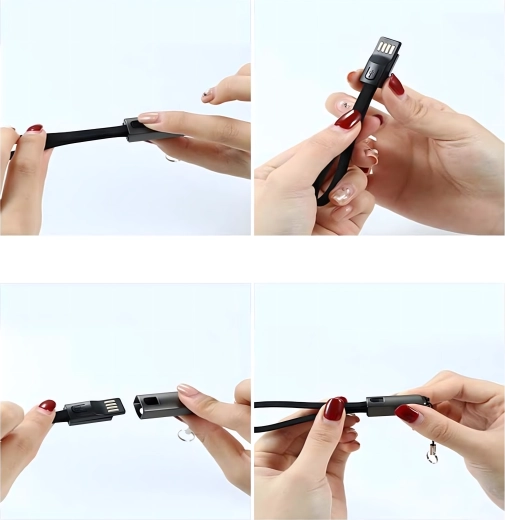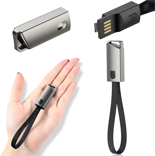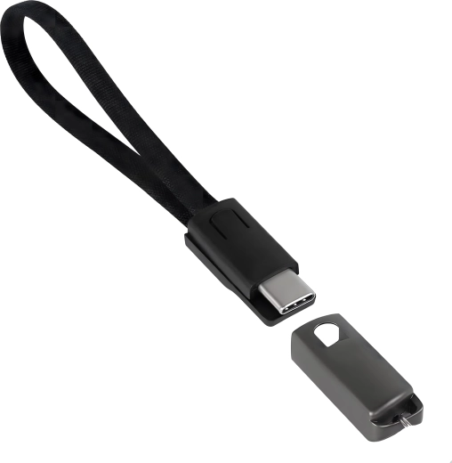 Cablu compact și stilat sub formă de pandantiv/șnur, cu conectori USB‑C și USB‑A, oferă încărcare rapidă și transfer de date fiabil. Ideal pentru utilizare zilnică, la chei sau pe rucsac – mereu la îndemână și fără dezordinea inutilă a cablurilor.