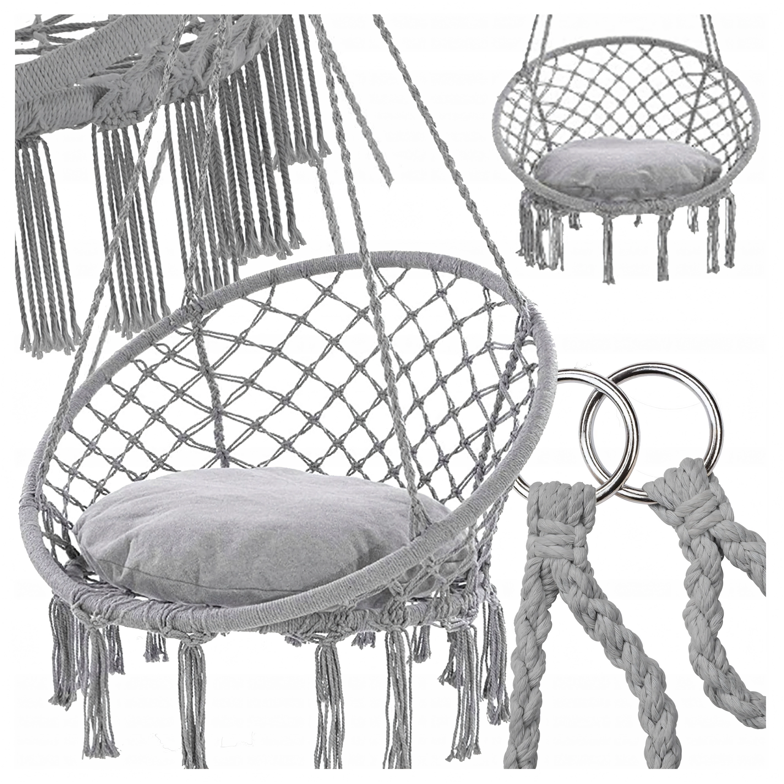 Bucurați-vă de relaxare în cuibul suspendat, care datorită aspectului boho modern se potrivește în living, pe terasă, balcon și chiar în călătorii. Șnururile rezistente și țesătura din bumbac respirabilă și durabilă asigură stabilitate și confort chiar și în timpul șederilor mai lungi.