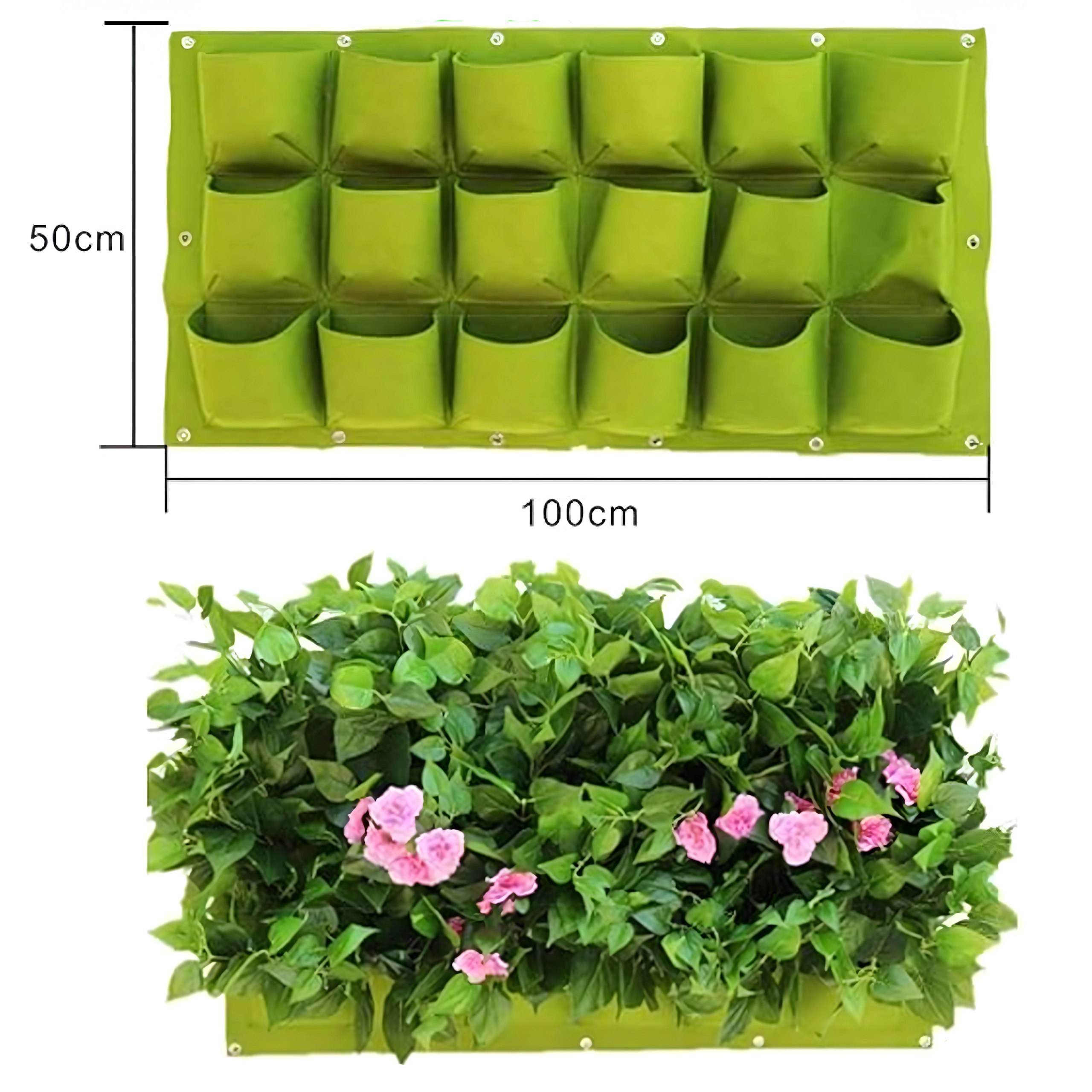 Creați-vă propriul colț de grădină verticală oriunde – acasă, pe balcon sau în grădină. Acest ghiveci suspendat cu dimensiunile 100 × 50 cm are 18 buzunare spațioase, în care puteți planta cu ușurință ierburi, salate și florile preferate. Construcția în trepte/cascadă economisește spațiu și asigură o mai bună expunere la lumină și apă pentru fiecare plantă.