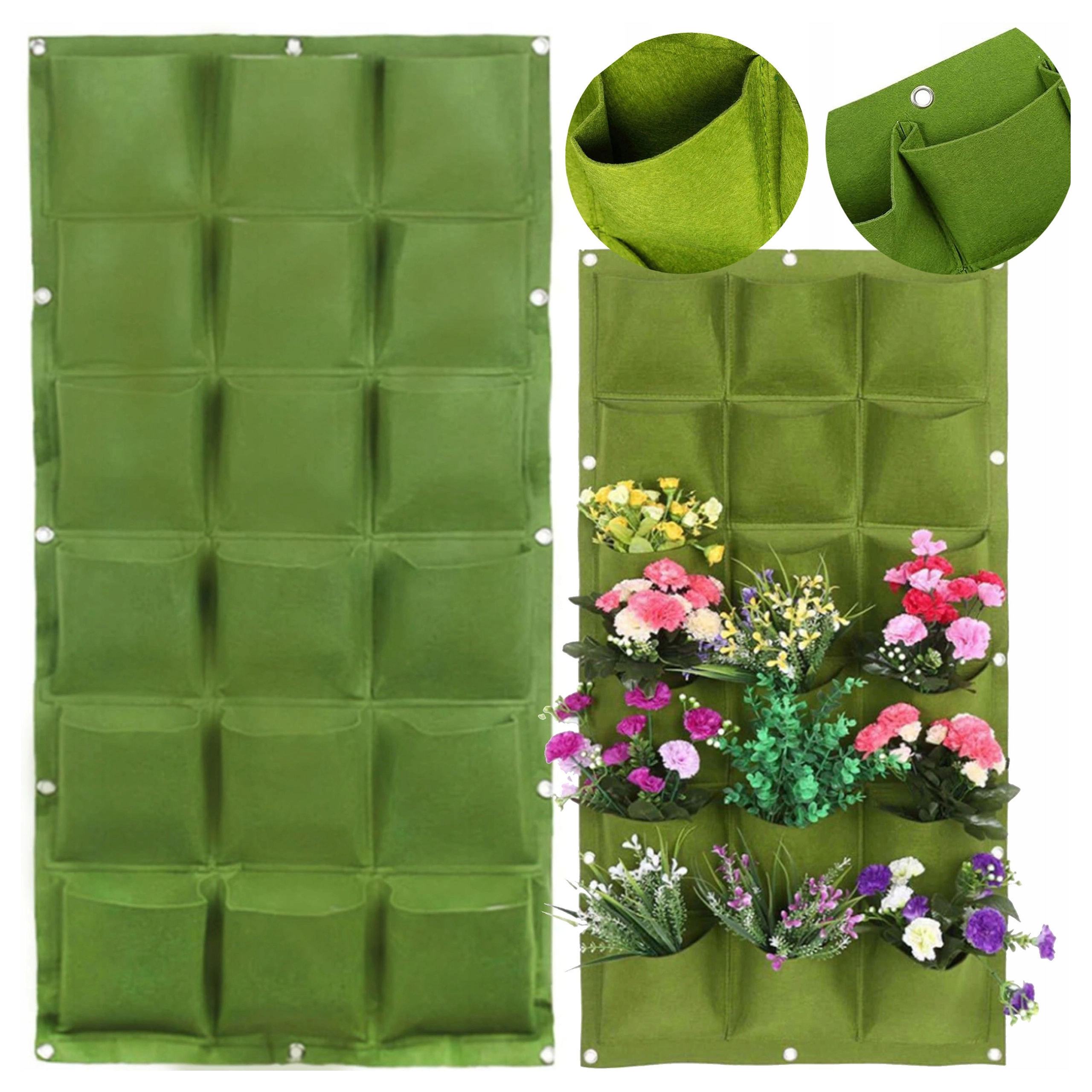 Ghiveci suspendat practic și stilat pentru cultivare verticală de ierburi aromatice, flori și legume, economisește spațiu și transformă locuința, balconul sau grădina într-o oază verde. Oferă 18 buzunare, instalare ușoară cu suporturi pentru perete sau gard și irigare inteligentă pentru creșterea sănătoasă a plantelor. Ideal pentru cei care apreciază estetica, originalitatea și confortul în cultivare.