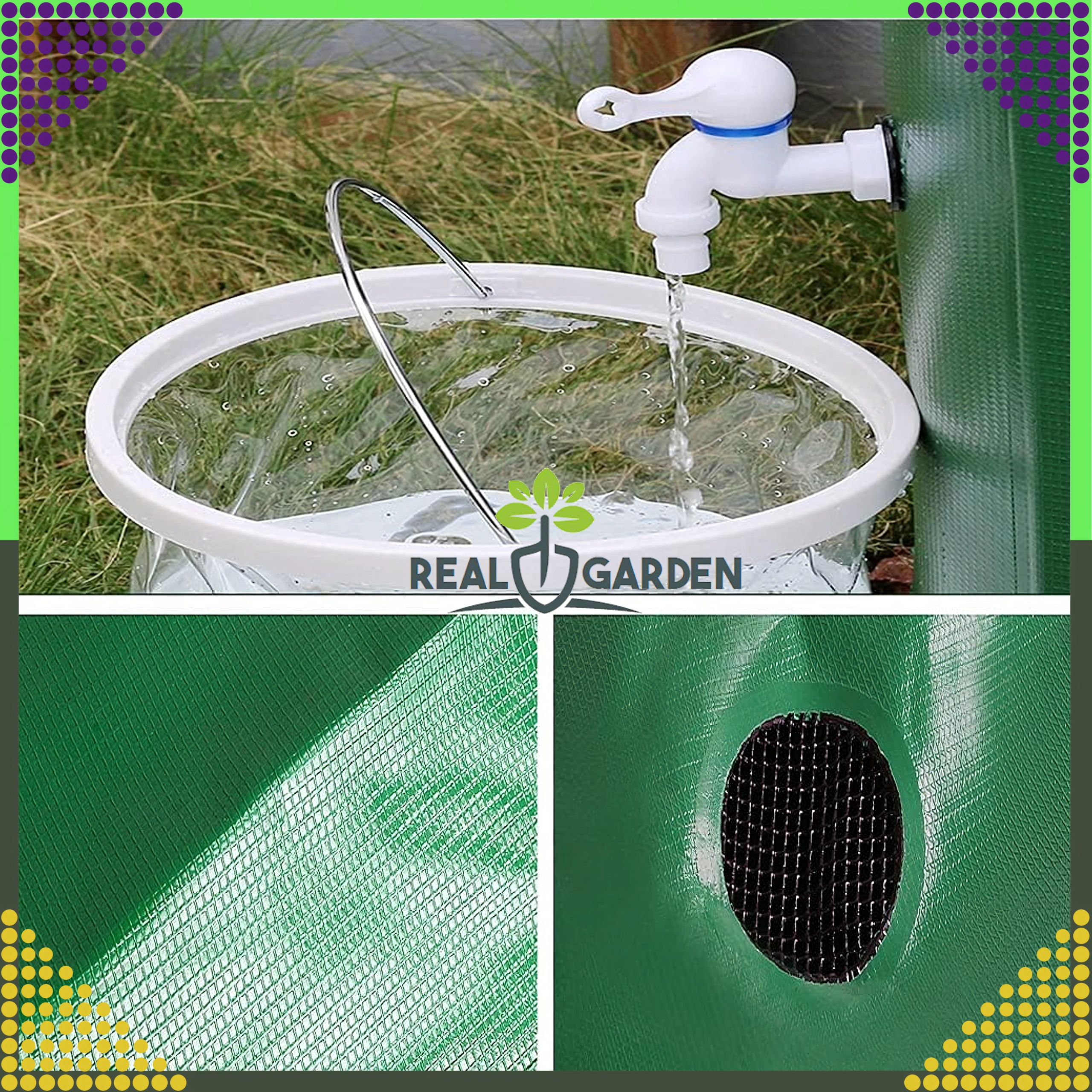 Rezervor practic și pliabil pentru apă de ploaie, 100 l, cu robinet integrat și valvă de preaplin. Ideal pentru colectarea apei din jgheaburi și utilizarea ei la udarea grădinii, a plantelor de interior sau la spălarea mașinii. Construcția ușoară din PVC rezistă intemperiilor și, după sezon, se pliază ușor până la o formă plată.