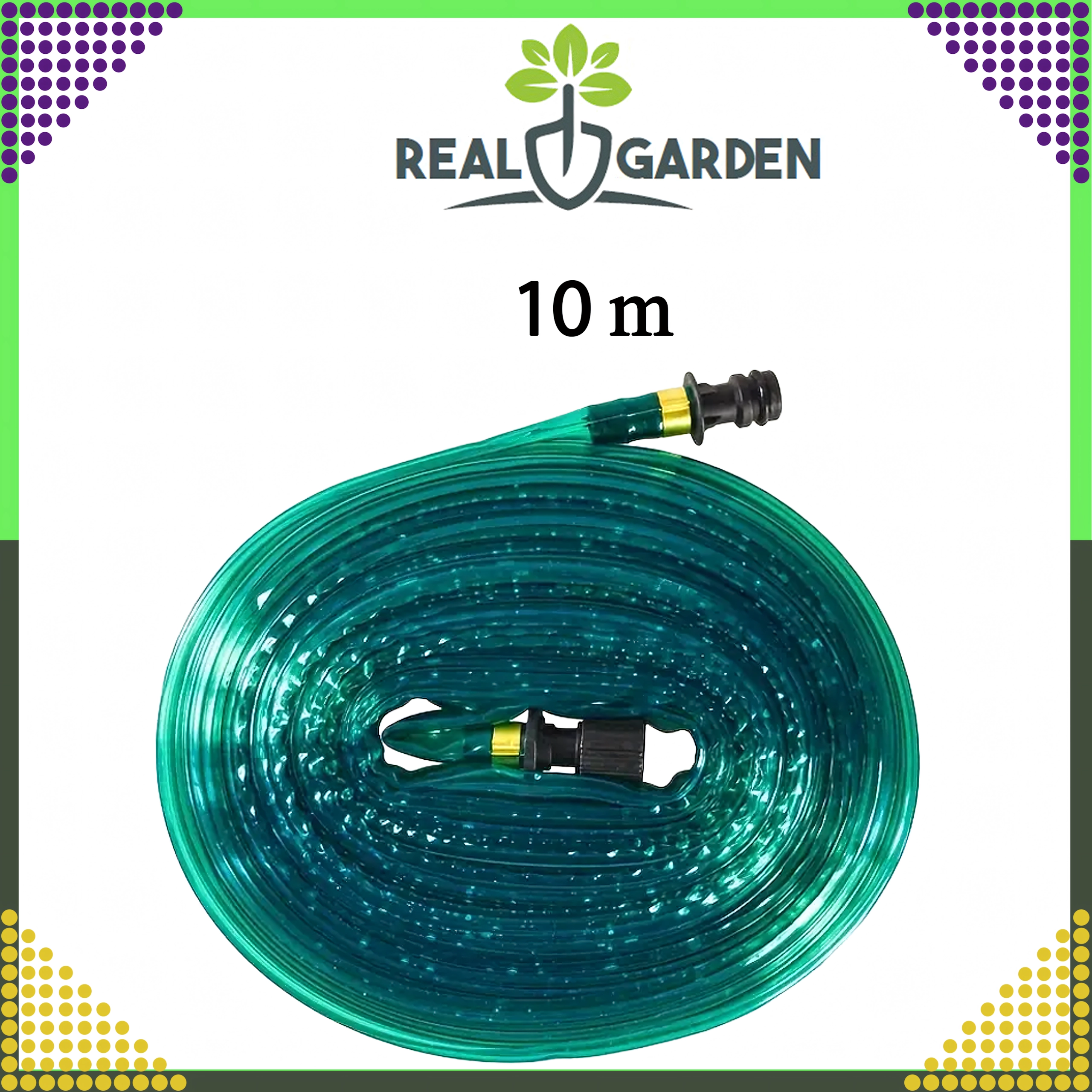 Furtun practic și flexibil pentru irigare prin picurare, cu lungimea de 10 m, pentru udarea eficientă a plantelor în grădini, loturi și sere. Asigură alimentarea cu apă economică, uniformă și direcționată direct la rădăcini, se instalează ușor și este compatibil cu cople rapide standard.