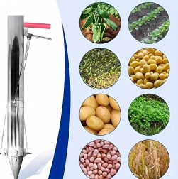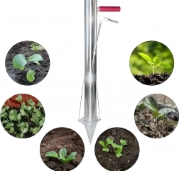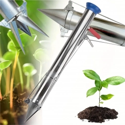 Acest plantator manual universal ușurează plantarea bulbilor, a răsadurilor de legume și flori și ajută și la îndepărtarea precisă a buruienilor. Construcția lungă, robustă, din oțel, cu vârf ascuțit pătrunde fără efort în sol, iar mecanismul cu pârghie asigură eliberarea rapidă a carotei de pământ și introducerea facilă a plantei.