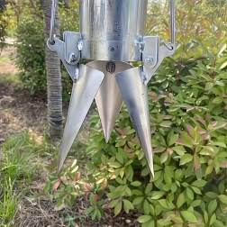 Pârghia laterală cu prindere confortabilă permite deschiderea controlată a fălcilor și poziționarea exactă a plantei la adâncimea dorită.