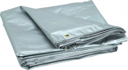 Prelată universală de protecție, dimensiuni 4 × 5 m, cu suprafață argintie, oferă protecție fiabilă împotriva intemperiilor și murdăriei. Datorită greutății specifice reduse de 60 g/m², este ușor de manevrat și în același timp oferă rezistență la apă, protecție UV și margini întărite cu inele metalice pentru fixare fermă. Ideală pentru acoperirea lemnului, remorcilor, mobilierului, piscinelor, acoperișurilor sau materialelor de construcții.