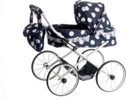 Acest cărucior retro drăgălaș pentru păpuși este o alegere grozavă pentru copiii care adoră jocul de-a familia. Combinația culorii negre cu buline albe și dantelă decorativă este stilată și atemporală, iar pătuțul din ratan oferă căruciorului un aspect fermecător. Datorită mânerului reglabil (55 cm), căruciorul se adaptează bine la înălțimea copilului.