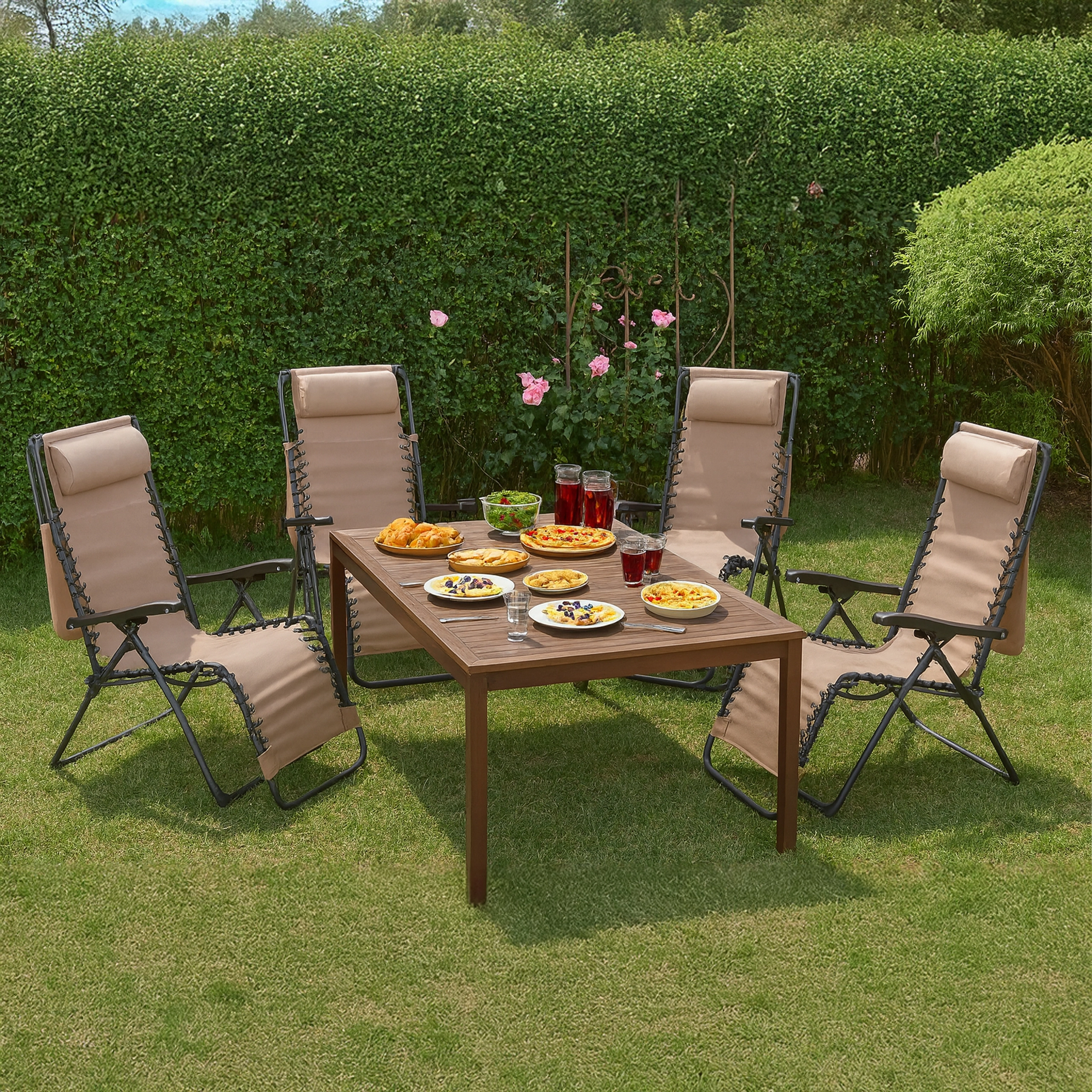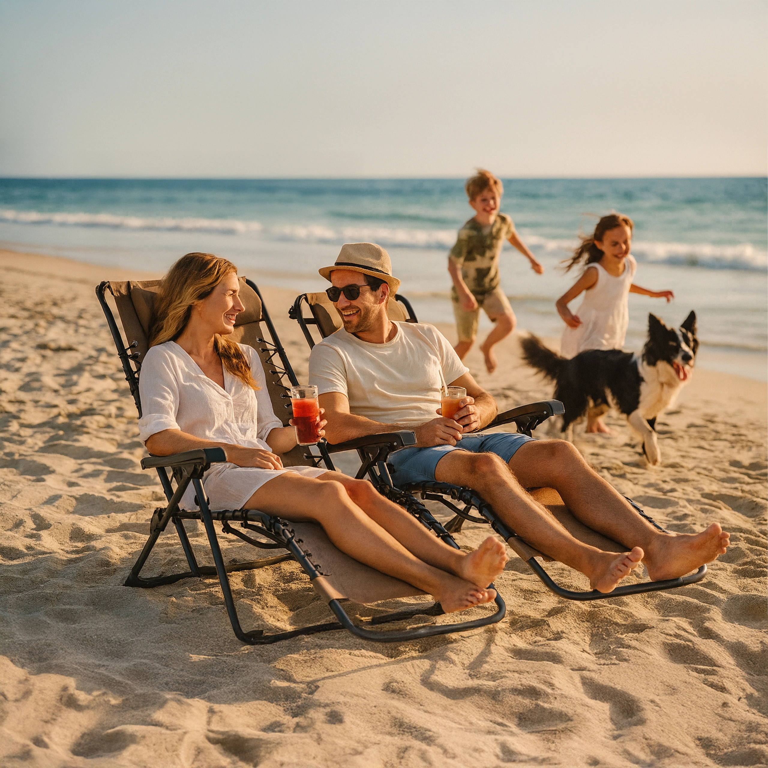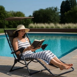 Bucurați-vă de relaxare fără griji cu șezlongul zero gravity, care distribuie uniform greutatea corpului și reduce solicitarea spatelui și articulațiilor. Materialul durabil textilene este plăcut respirabil, se usucă rapid și se întreține ușor, în timp ce cadrul robust din oțel oferă stabilitate pe iarbă, terasă sau lângă piscină.