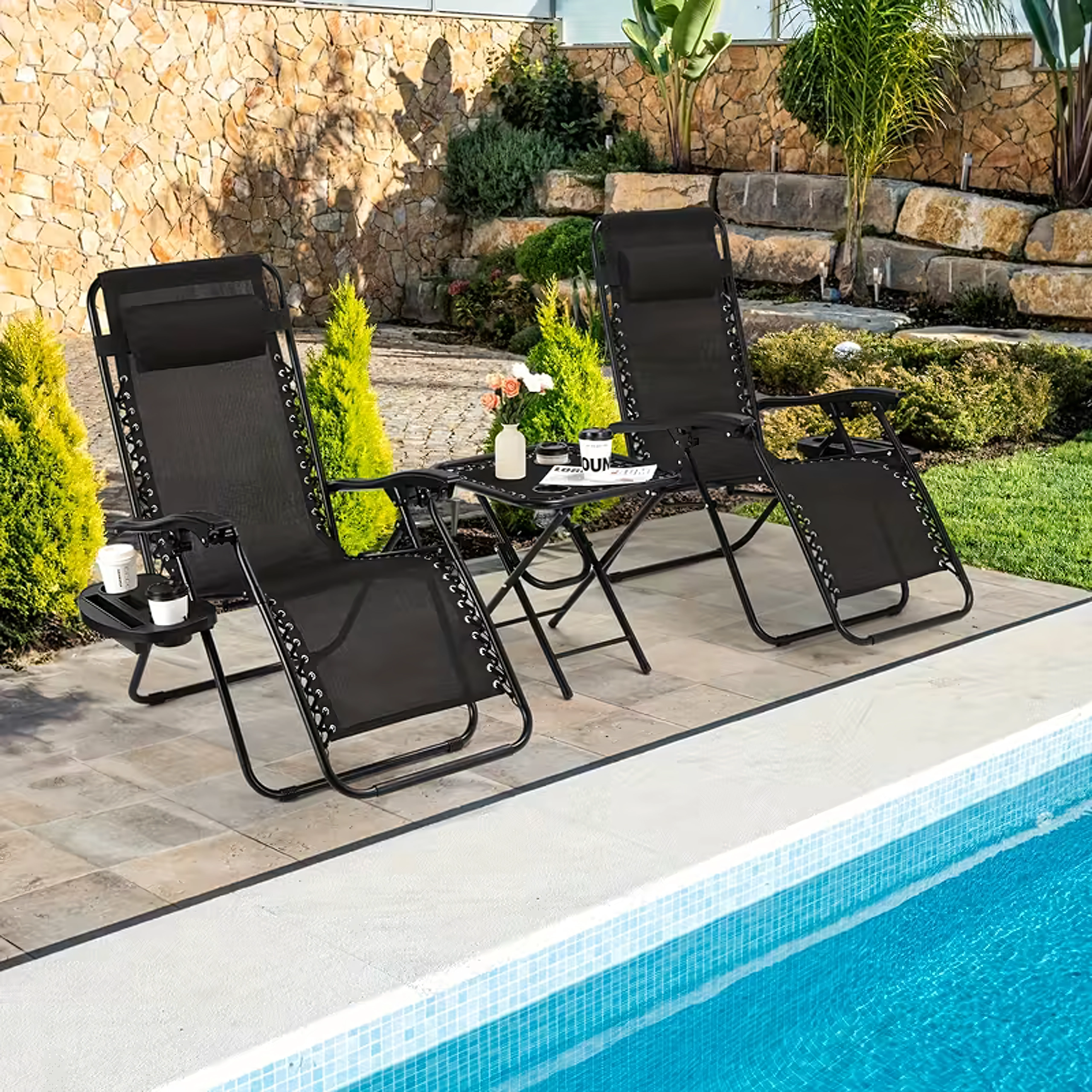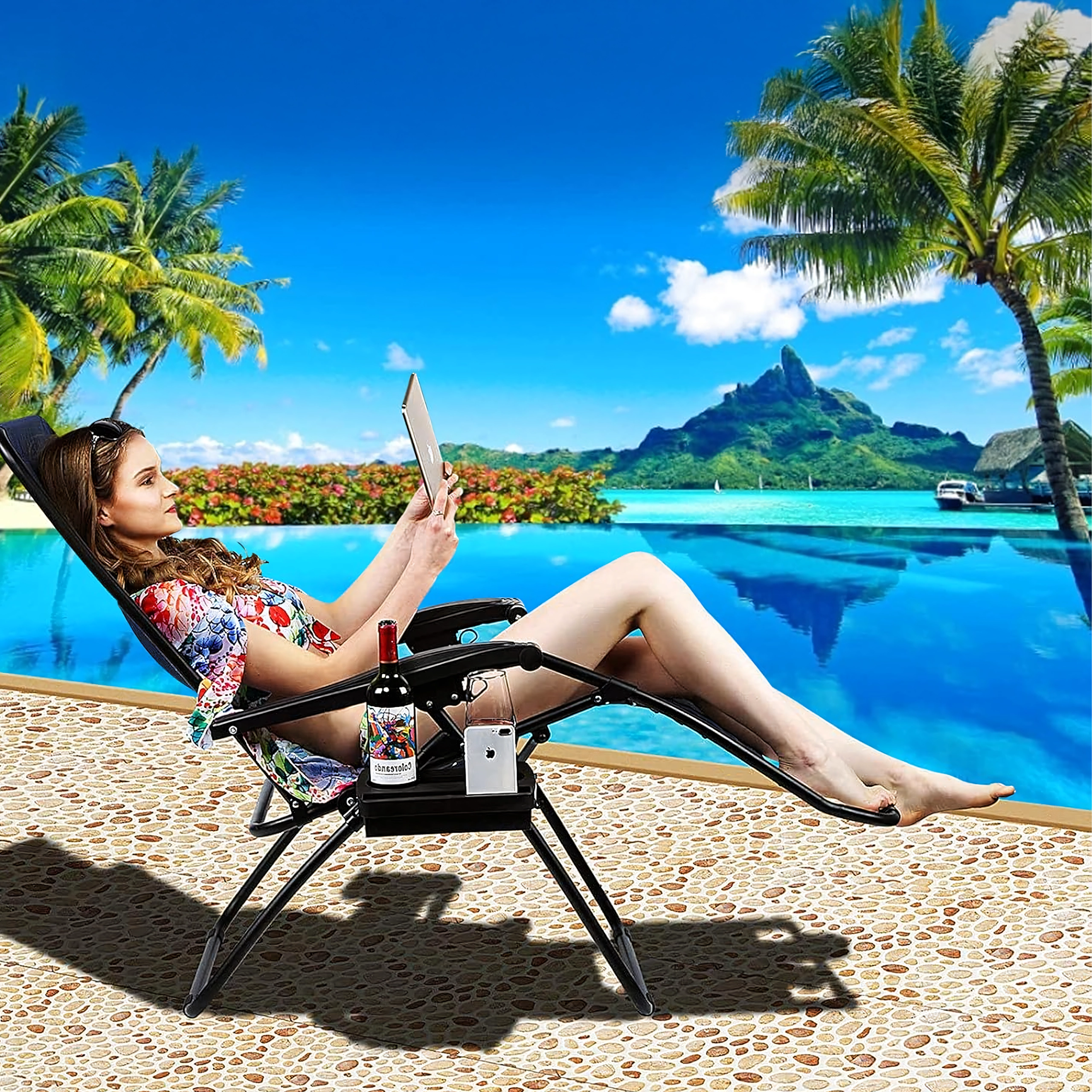 Instalarea durează o clipă – fără șurubelnițe și unelte. Soluția ideală pentru spațiile exterioare de lângă piscină, pe terasă sau la camping. Compatibil cu majoritatea șezlongurilor de tip Zero Gravity.