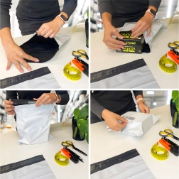 Clapa autocolantă cu bandă peel‑and‑seal scurtează semnificativ timpul de ambalare, în timp ce materialul solid, rezistent la apă protejează împotriva umezelii și murdăriei. După sigilare, orice deschidere neautorizată este vizibilă, astfel încât coletul ajunge la destinatar în stare perfectă.