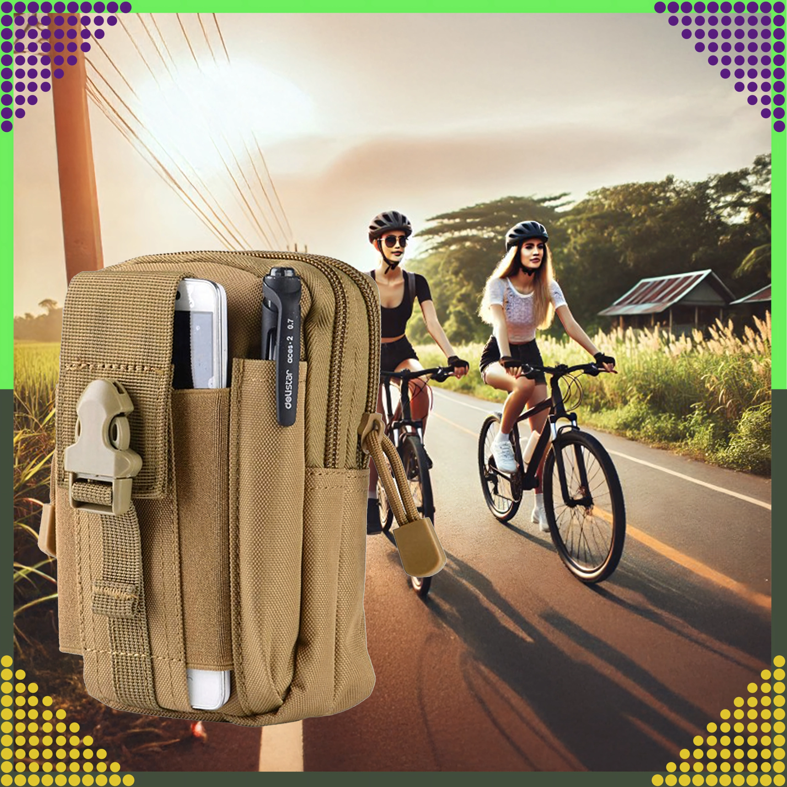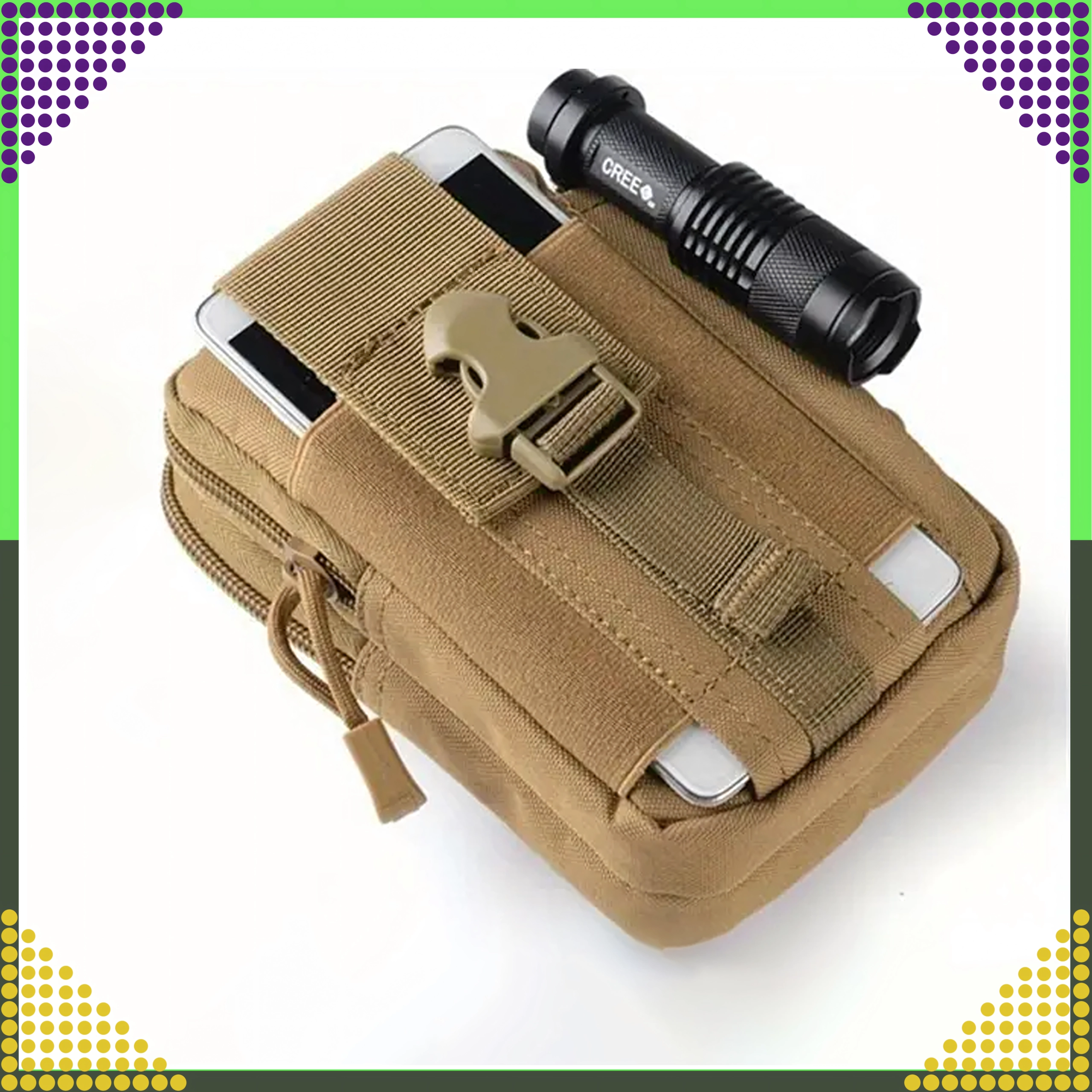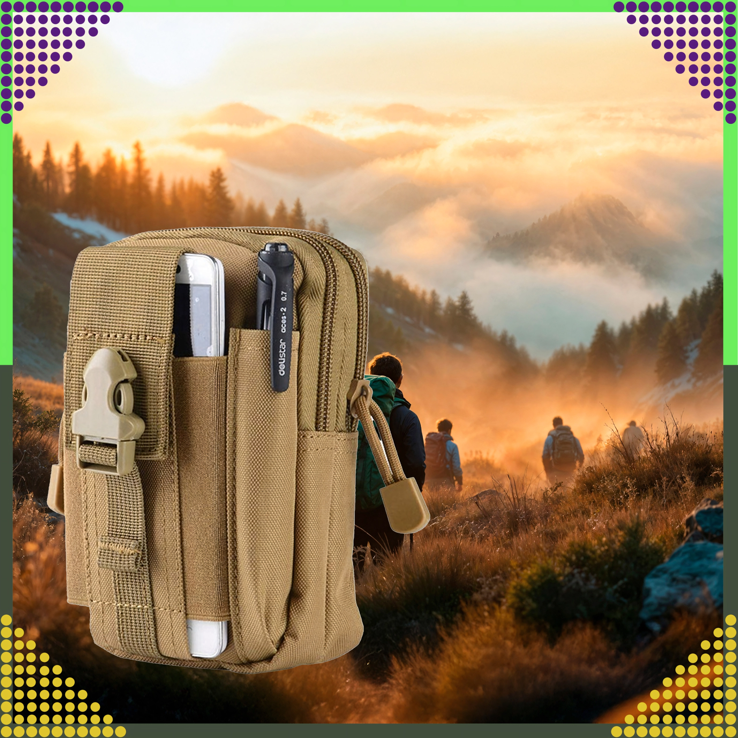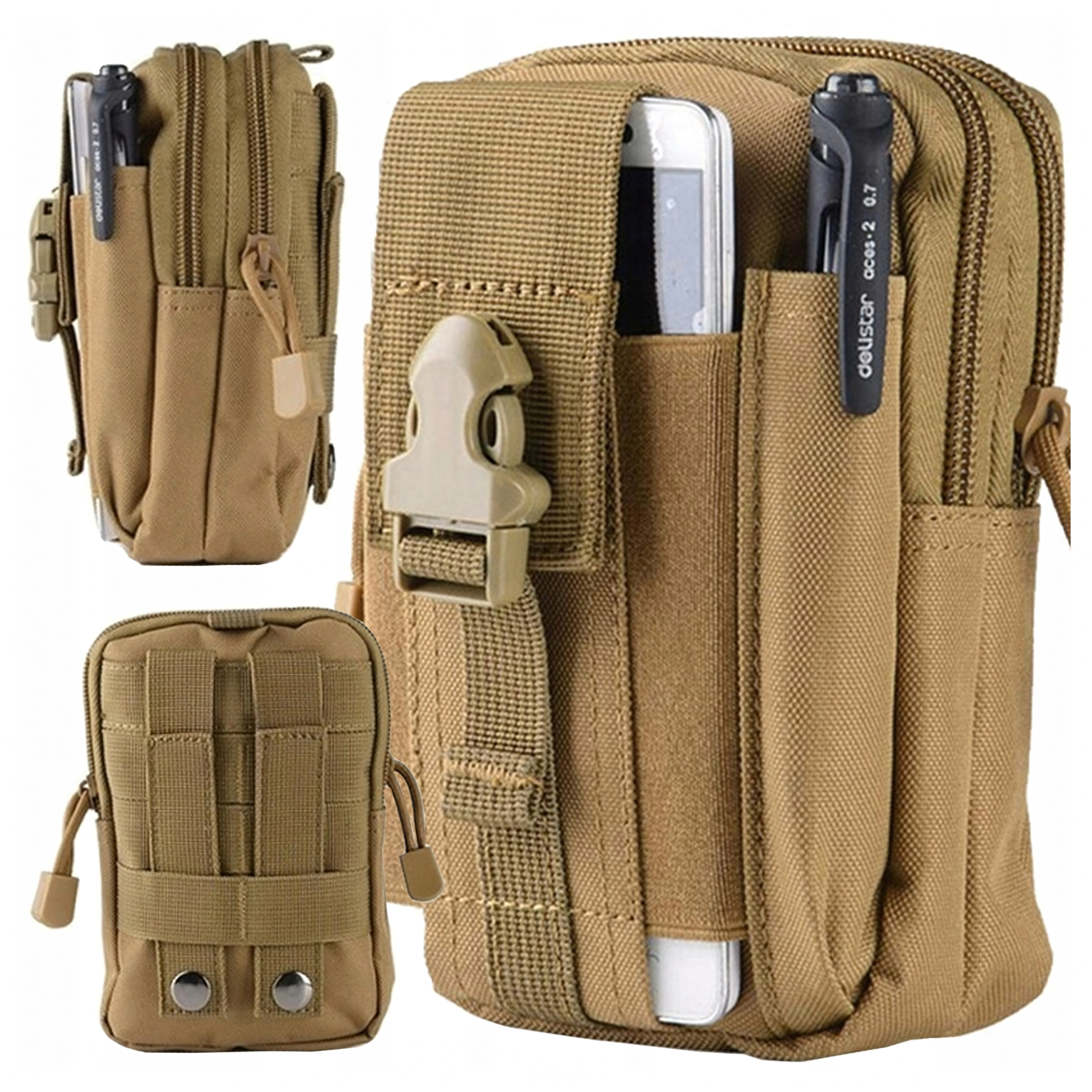 Acest organizator outdoor universal, în culoare maro, păstrează la îndemână și în siguranță esențialele tale. Datorită sistemului MOLLE, îl fixezi ușor pe curea, rucsac sau pe echipament tactic. Două camere principale spațioase cu fermoar, buzunar frontal pentru telefon și bucle laterale pentru pix/lanternă asigură acces rapid și o organizare excelentă.