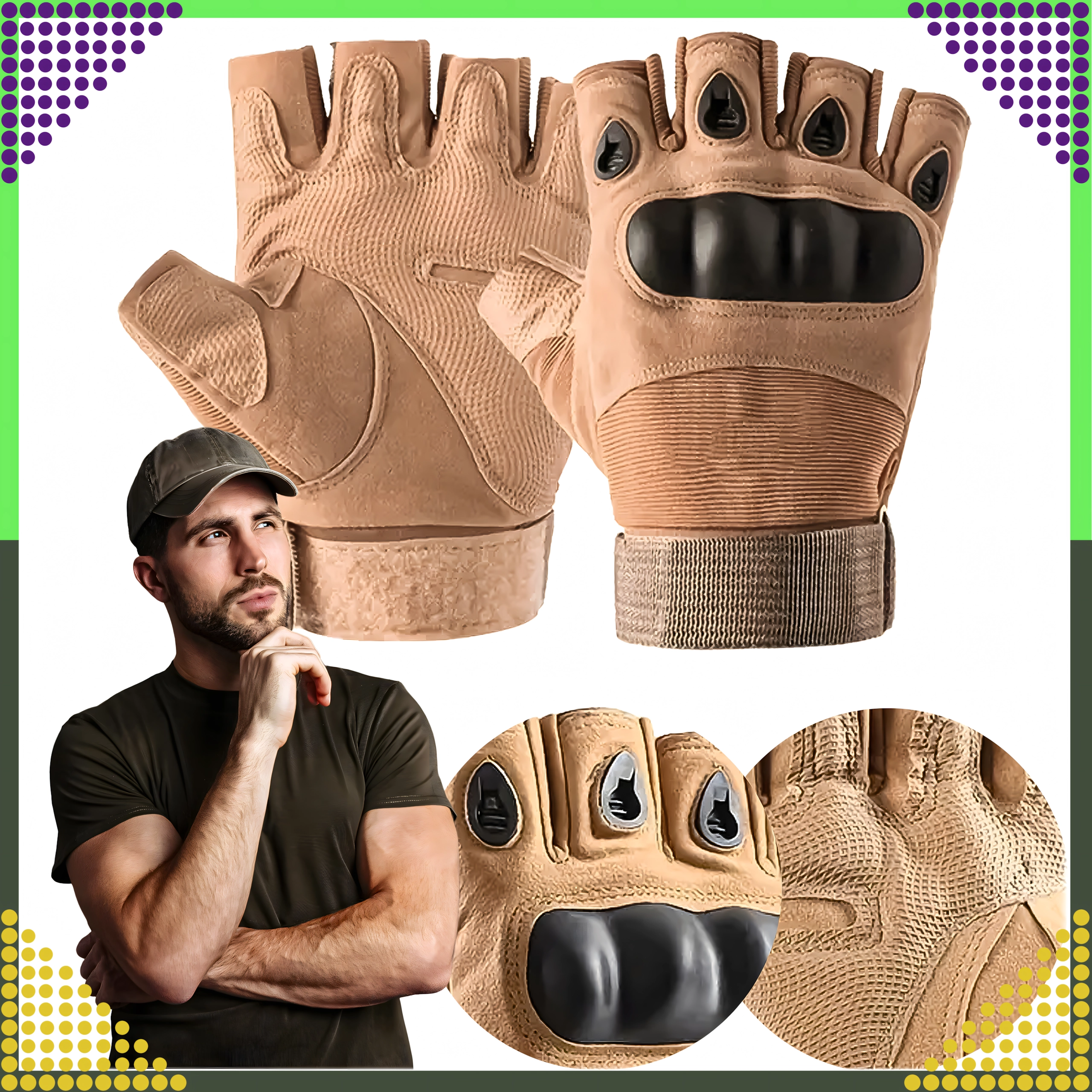 Mănușile tactice fără degete îmbină durabilitatea și confortul pentru utilizare solicitantă. Întăritura dură a articulațiilor protejează împotriva impacturilor și abraziunilor, în timp ce palma căptușită, antiderapantă, îmbunătățește siguranța prinderii uneltelor, ghidonului sau armelor. Capetele deschise ale degetelor oferă sensibilitate și control maxime.