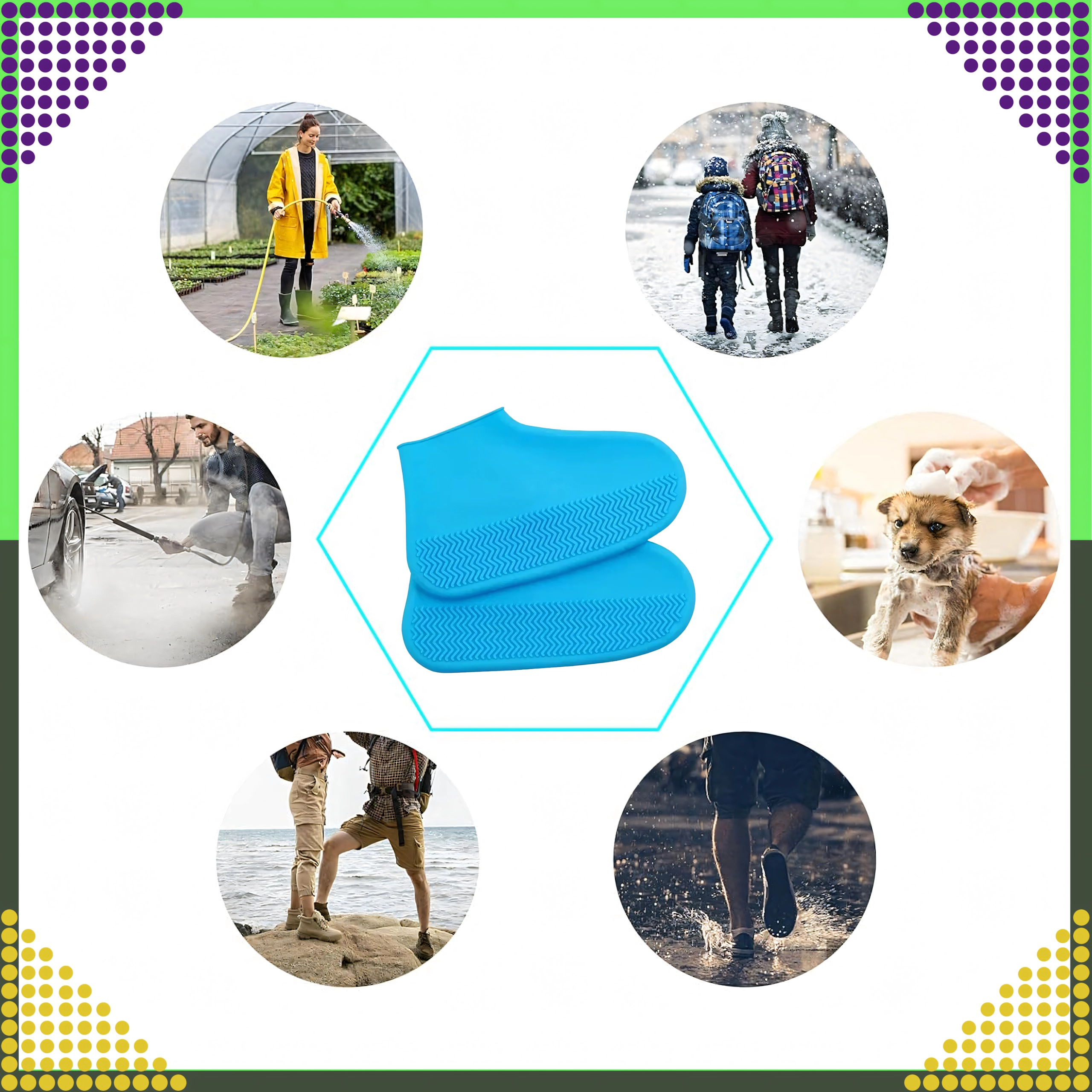 Menține-ți încălțămintea uscată și curată chiar și pe timp de ploaie datorită huselor practice din silicon. Sunt realizate din material elastic, impermeabil, au talpă antiderapantă pentru un pas sigur și se pun și se scot cu ușurință. Ideale pentru ploaie, noroi și zăpadă – reutilizabile și cu întreținere ușoară.