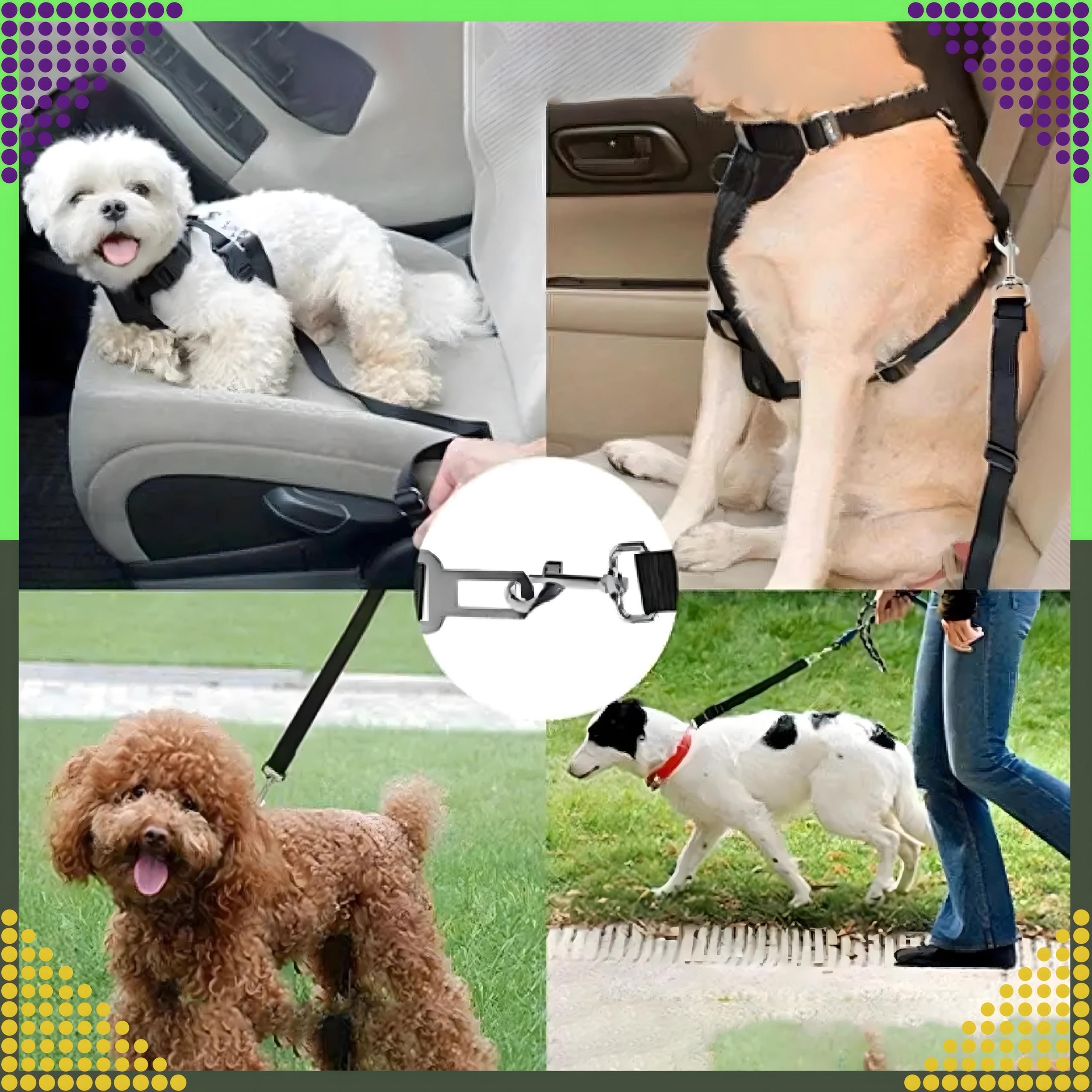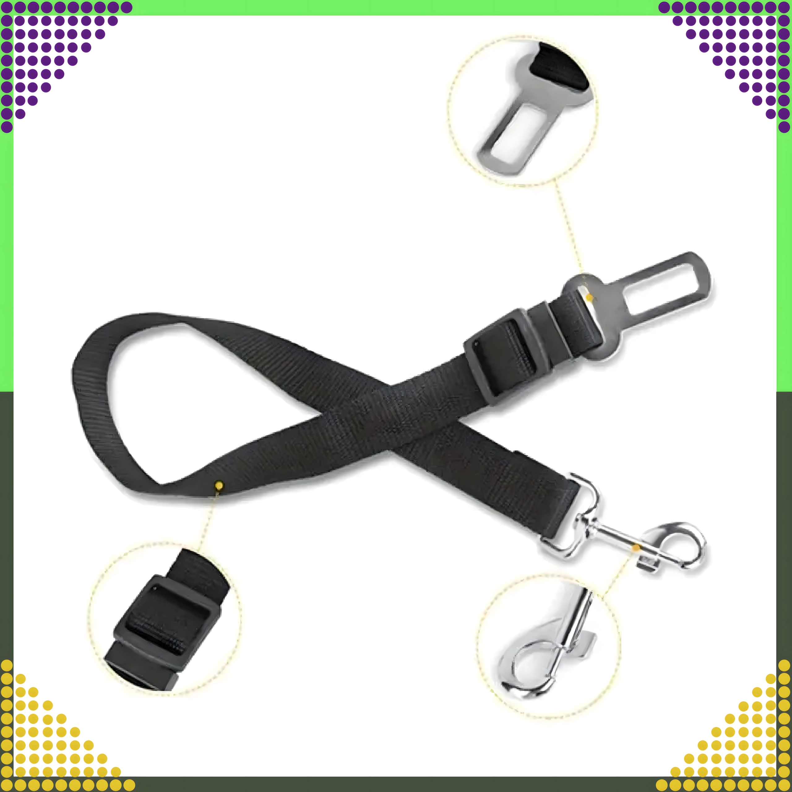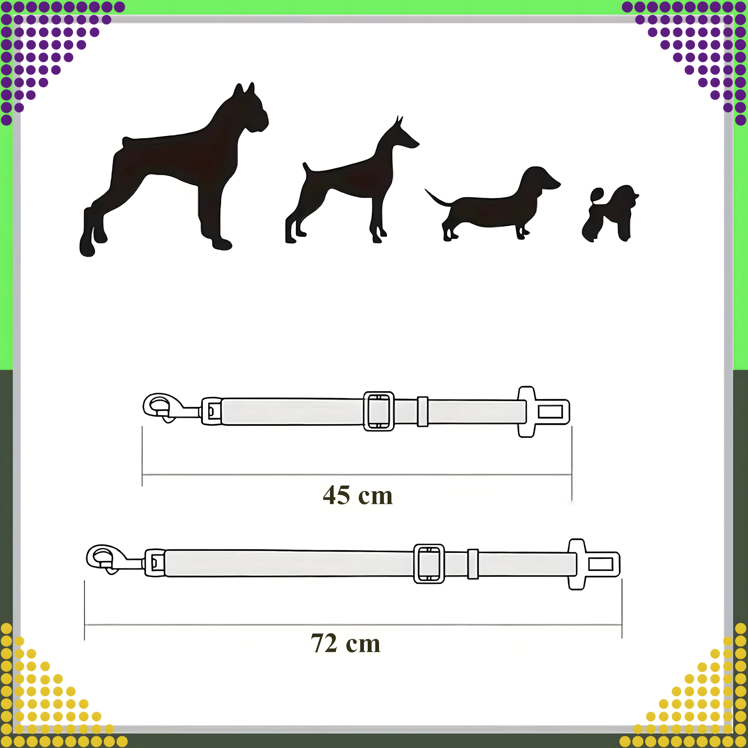 Centură practică pentru asigurarea câinelui sau pisicii în timpul mersului cu mașina. O introduci ușor în mufa standard a centurii de siguranță, iar celălalt capăt îl prinzi cu carabiniera rotativă de ham (recomandat în locul gulerului). Lungimea reglabilă 45–72 cm permite animalului să stea așezat sau culcat, dar în același timp limitează mișcarea periculoasă prin vehicul.