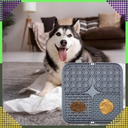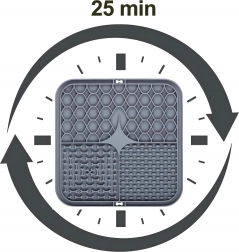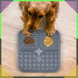 Acest covoraș antistres pentru lins permite întinderea hranei umede, a pateurilor sau a untului de arahide astfel încât animalul de companie să trebuiască să le lingă treptat. Diferitele zone în relief stimulează instinctul natural de a linge, ceea ce calmează și, în același timp, sprijină igiena orală prin curățarea delicată a limbii.