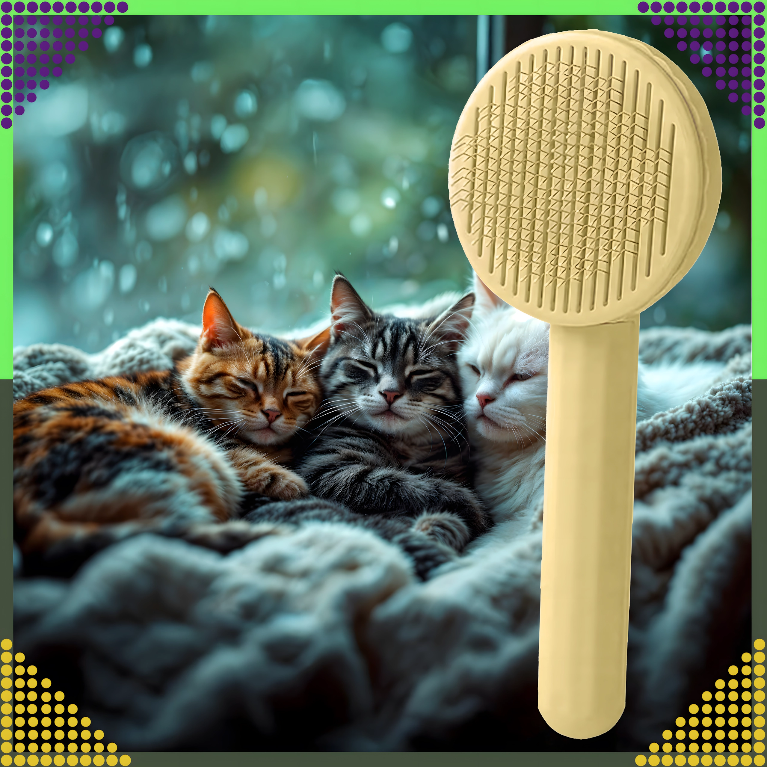 Peria auto-curățare pentru blană ușurează îngrijirea zilnică a câinilor și pisicilor. Firele dese și fine cu capete rotunjite pătrund delicat prin blană, îndepărtează firele căzute și masează ușor pielea, susținând strălucirea și sănătatea blănii. Mânerul ergonomic se ține confortabil și permite control precis, fără efort.