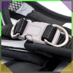 Inelele D metalice duble și bretelele reglabile cu catarame mențin hamul ferm pe poziție și facilitează ajustarea mărimii.