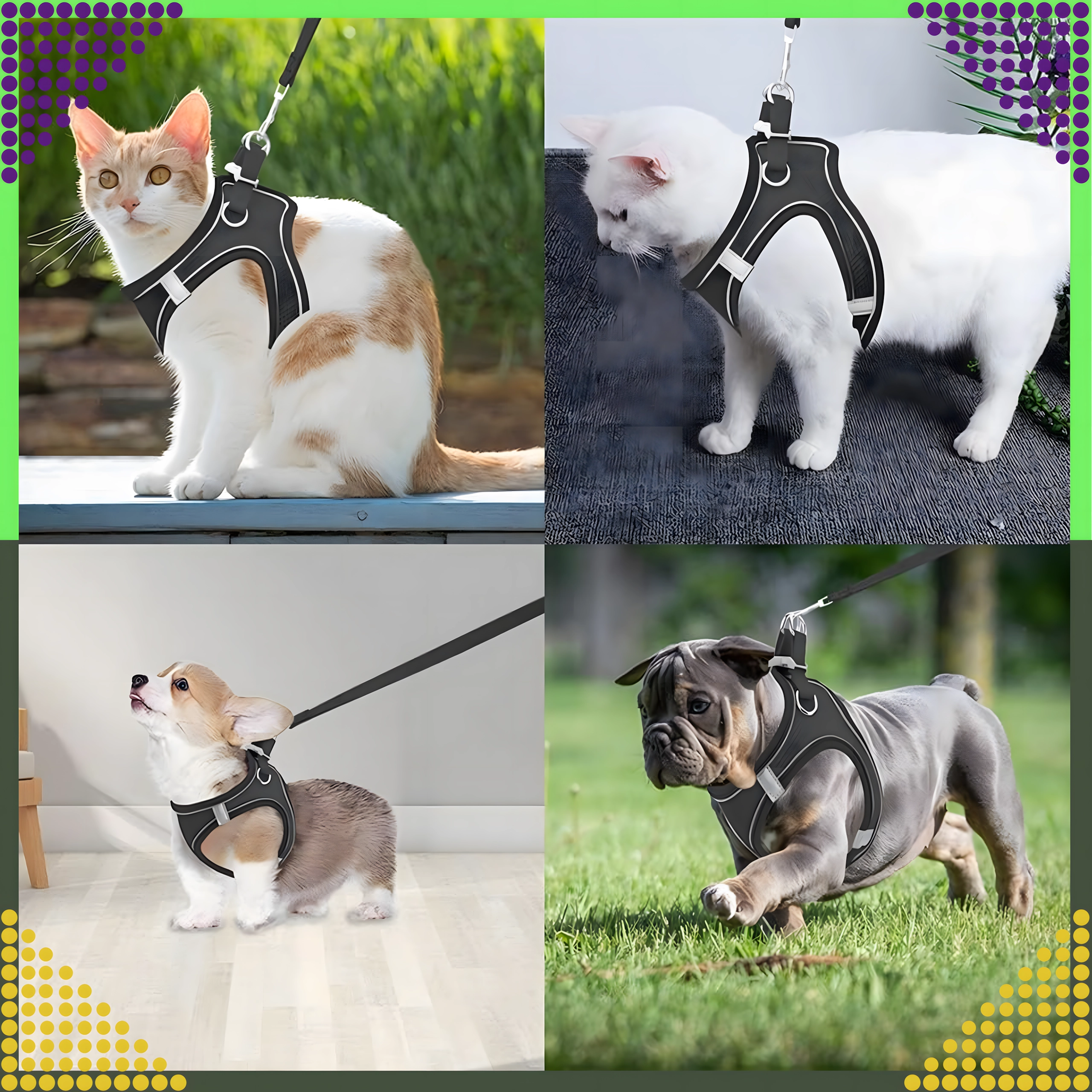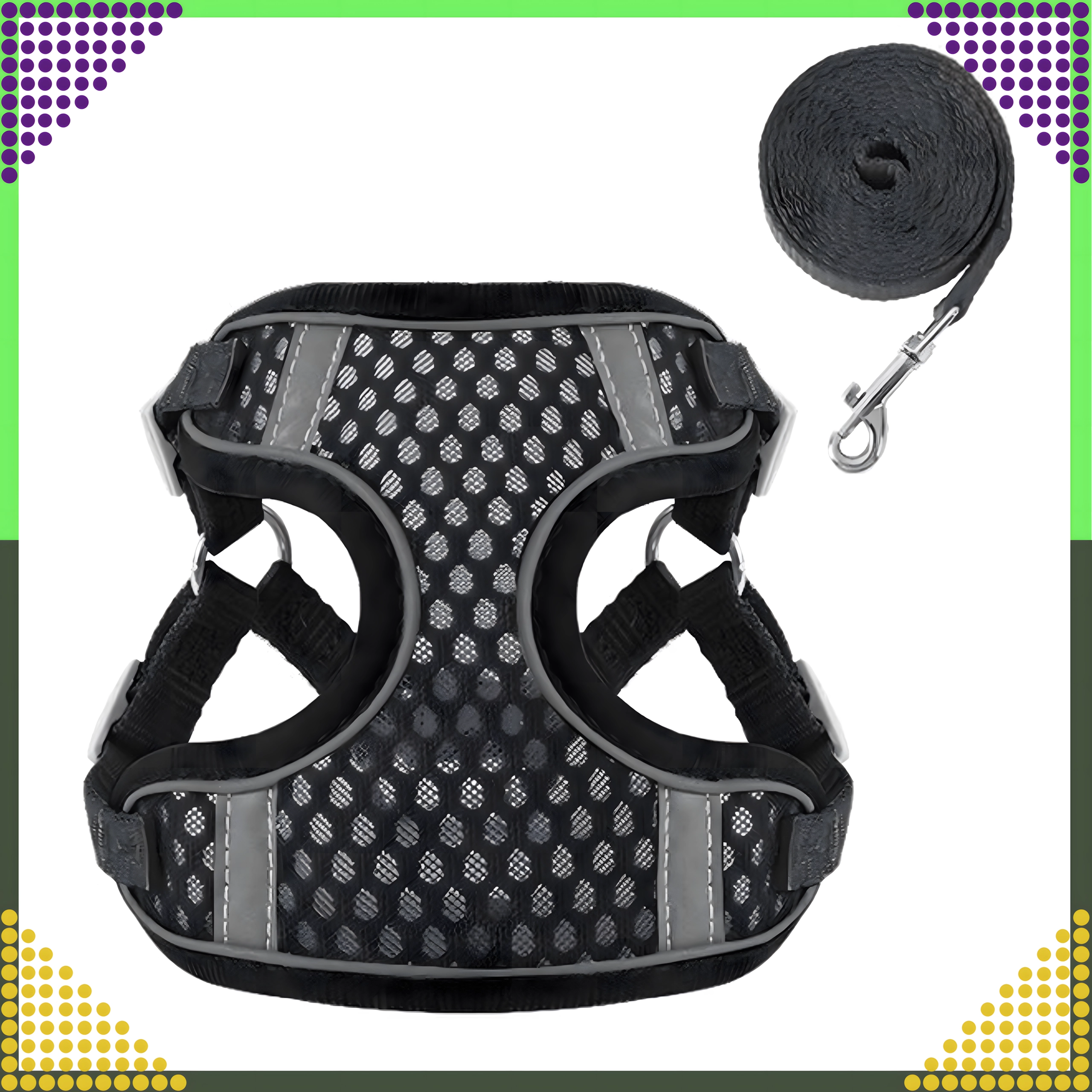 Cauți un ham durabil și aerisit care să ofere câinelui sau pisicii tale confort pe tot parcursul anului? Acest ham fără tracțiune din plasă moale distribuie uniform presiunea pe piept și spate, protejând zona sensibilă a gâtului. Marginea reflectorizantă sporește vizibilitatea la plimbările de seară.