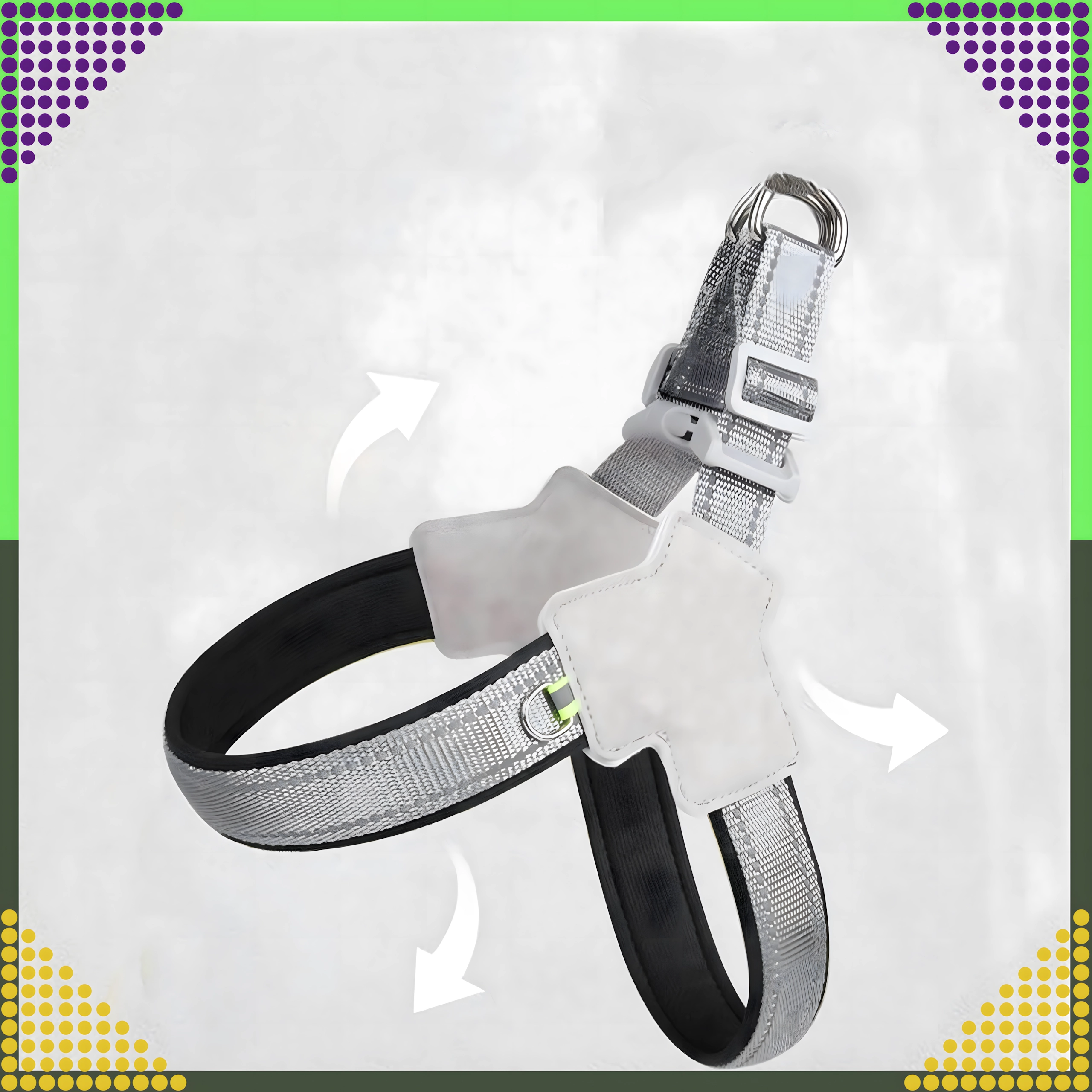 Elementele reflectorizante cresc vizibilitatea pe trotuar și în parc, astfel încât animalul dvs. va fi văzut chiar și pe înserat.
