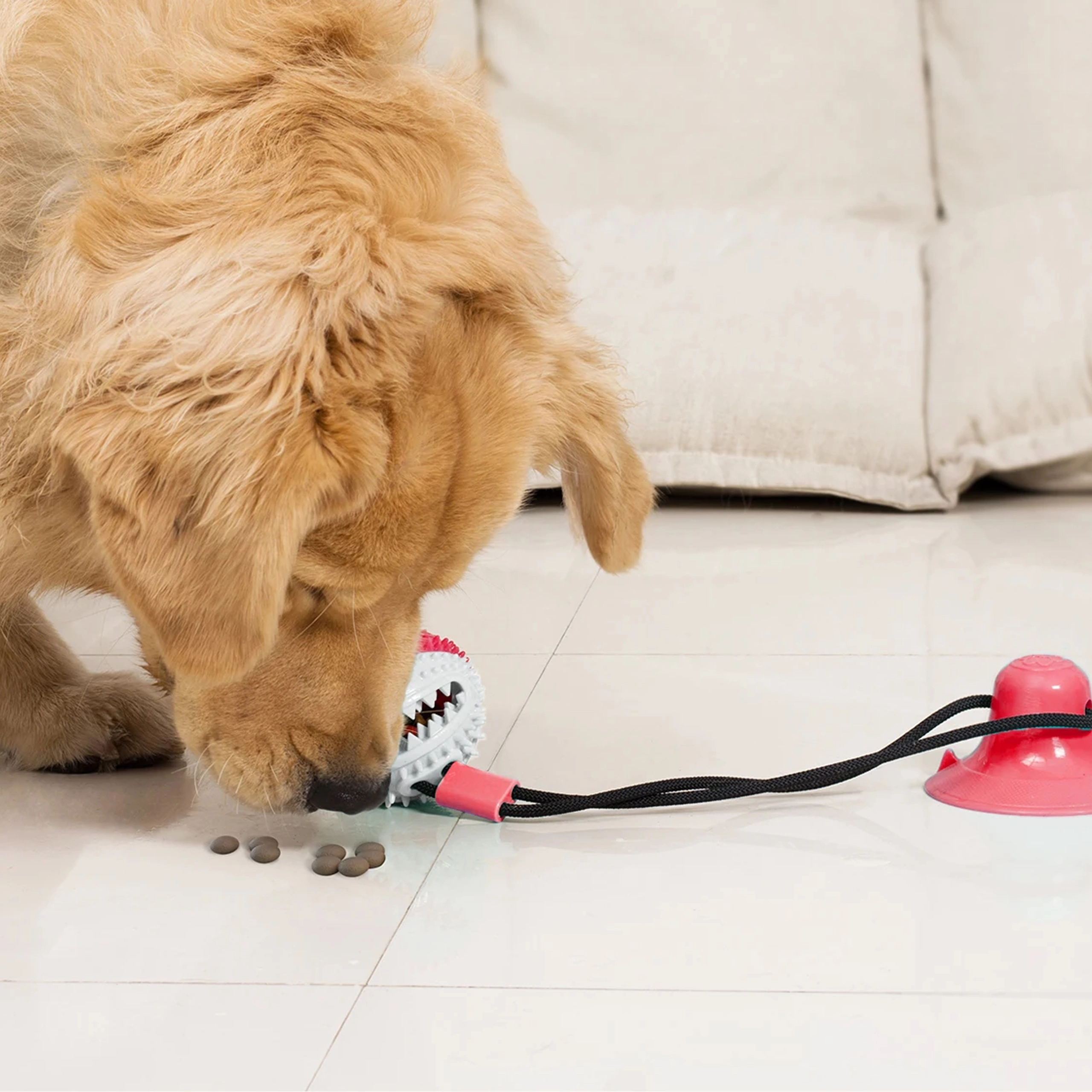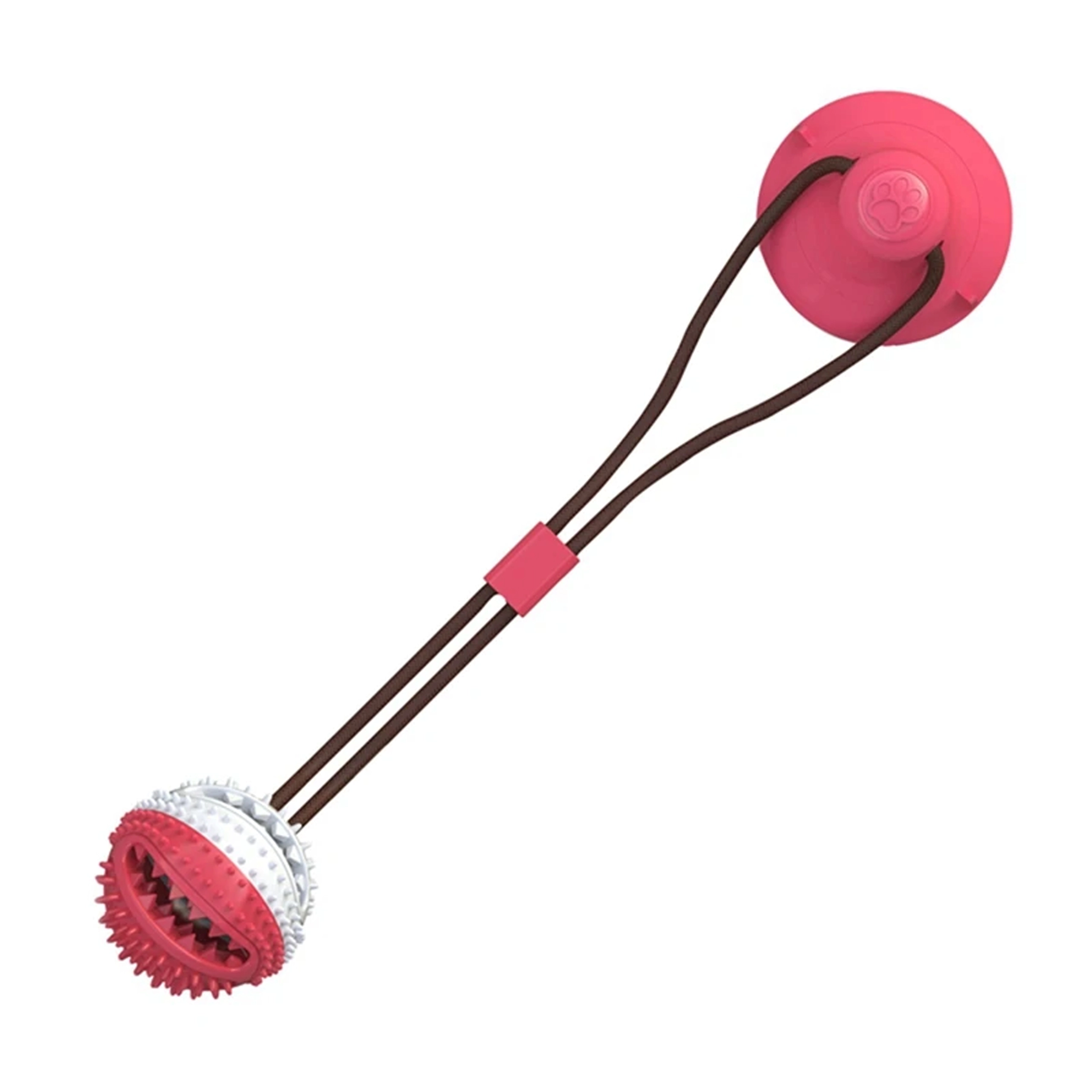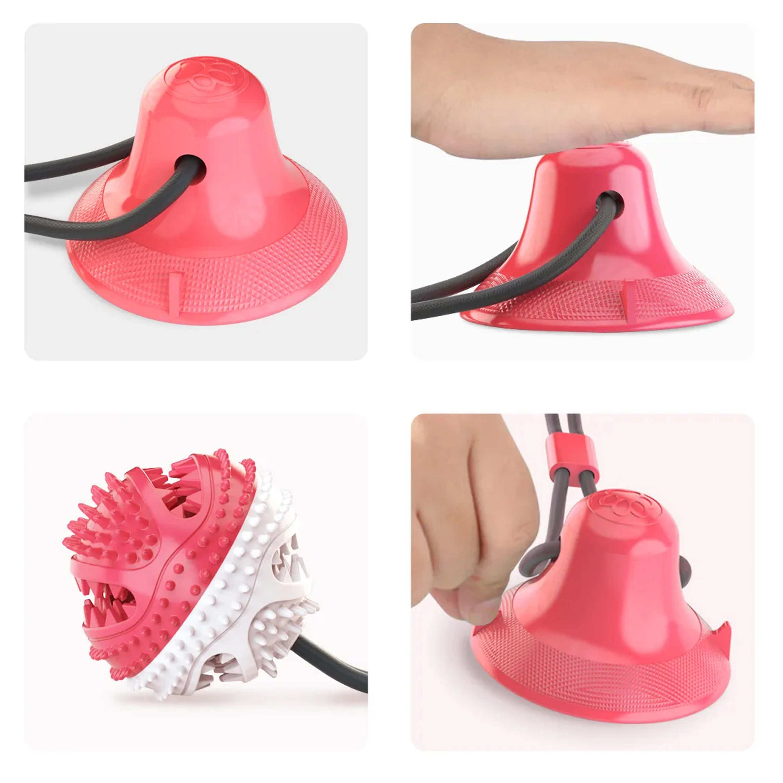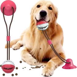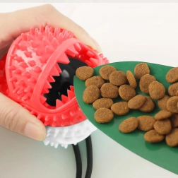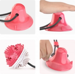Mingiuța interactivă cu ventuză îți distrează câinele prin tras, ros și „vânarea” recompenselor. Datorită corzii rezistente și ventuzei puternice, jucăria se poate fixa pe suprafețe netede, astfel încât câinele să poată trage în siguranță și să încerce să elibereze mingiuța. Proeminențele din cauciuc texturat, în timpul jocului, curăță mecanic dinții și masează delicat gingiile, susținând igiena cavității bucale.