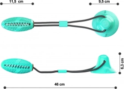 Fixați ventuza pe o suprafață netedă și lăsați câinele să tragă, să mestece și să descopere recompensele ascunse în interior. Materialele rezistente și frânghia elastică fac față tracțiunii intense, în timp ce vârfurile moi din cauciuc sunt blânde cu dinții și gingiile. Jocul regulat ajută la reducerea plictiselii, a surplusului de energie și susține sănătatea cavității bucale.