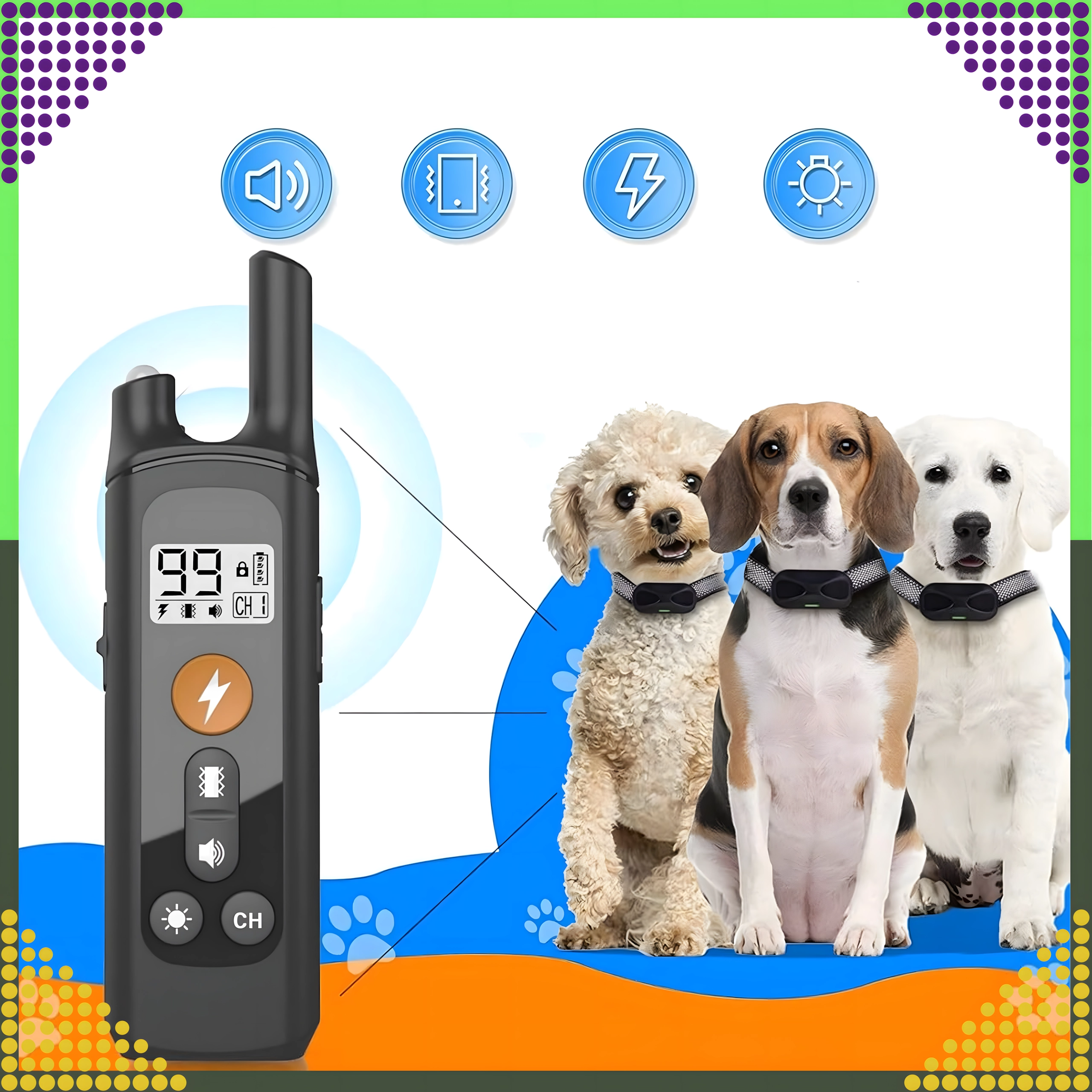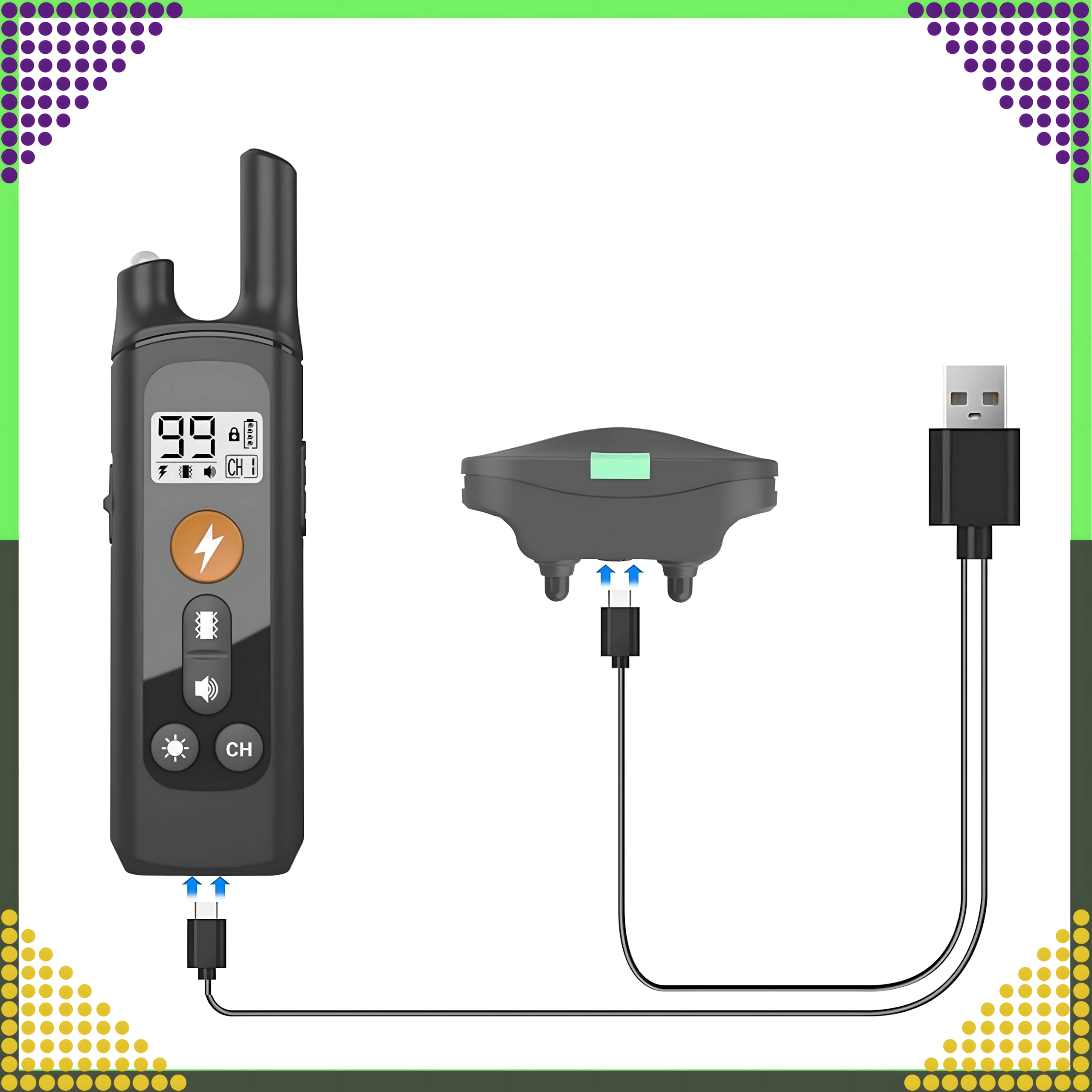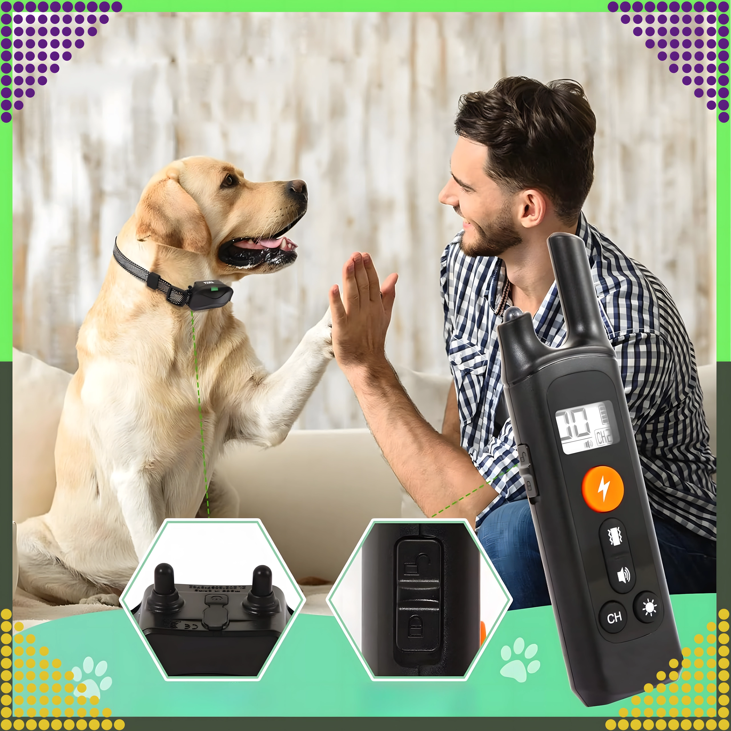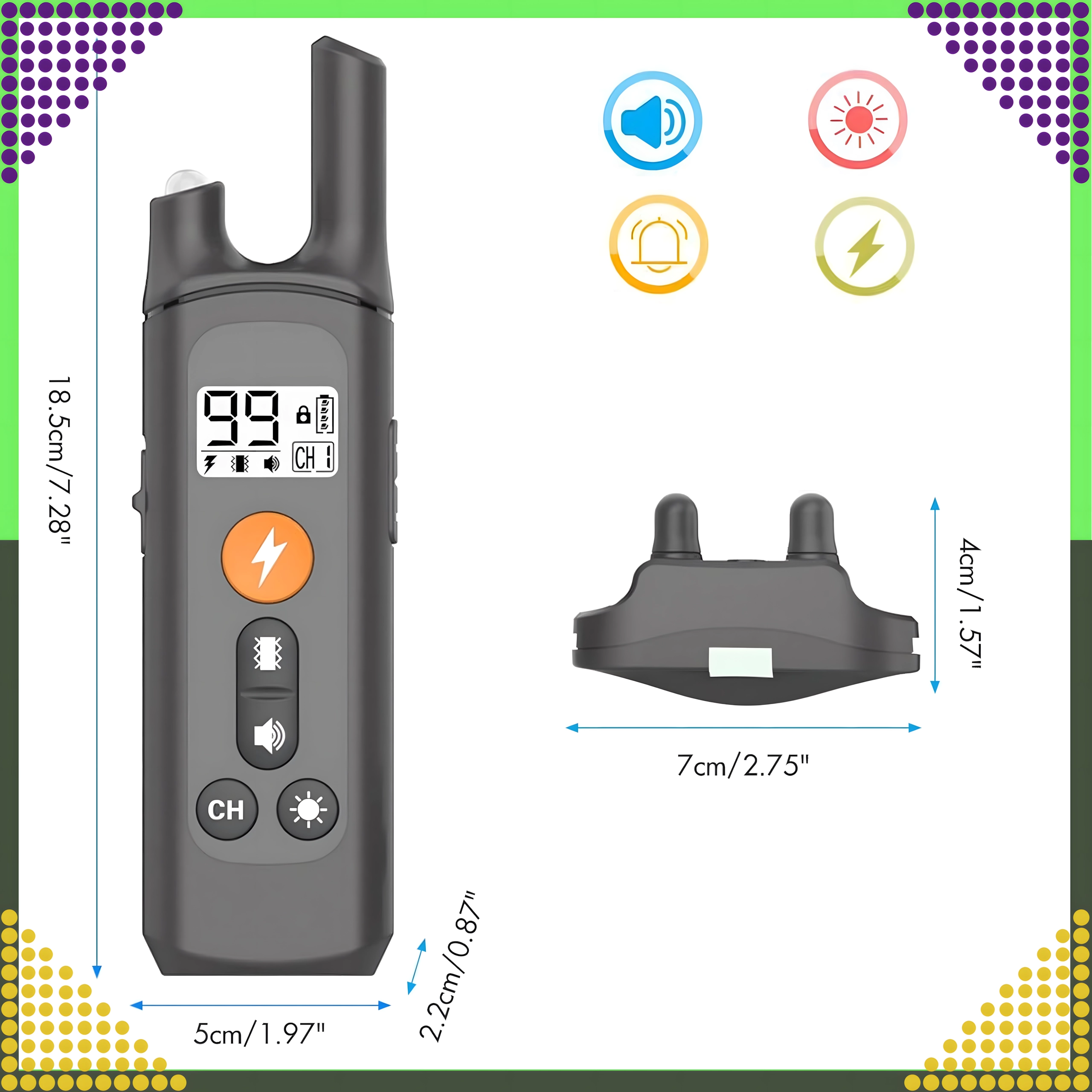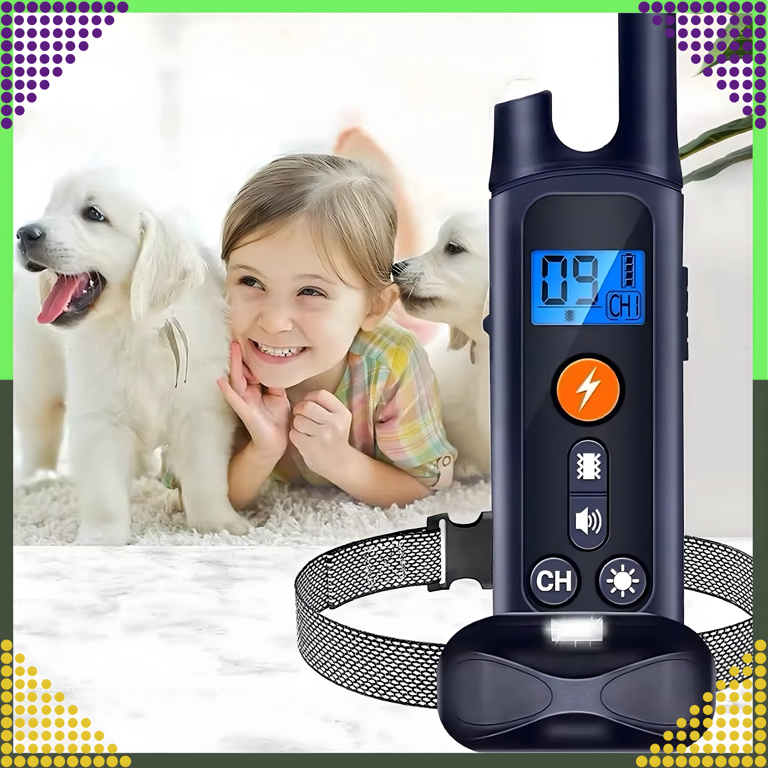 Zgarda de dresaj pentru câini, cu rază de acțiune de până la 800 m, oferă un antrenament sigur și eficient al obedienței. Include telecomandă cu lanternă LED integrată pentru utilizare zi și noapte, patru moduri de antrenament (impuls, vibrație, lumină, sunet), design rezistent la apă și baterie reîncărcabilă.