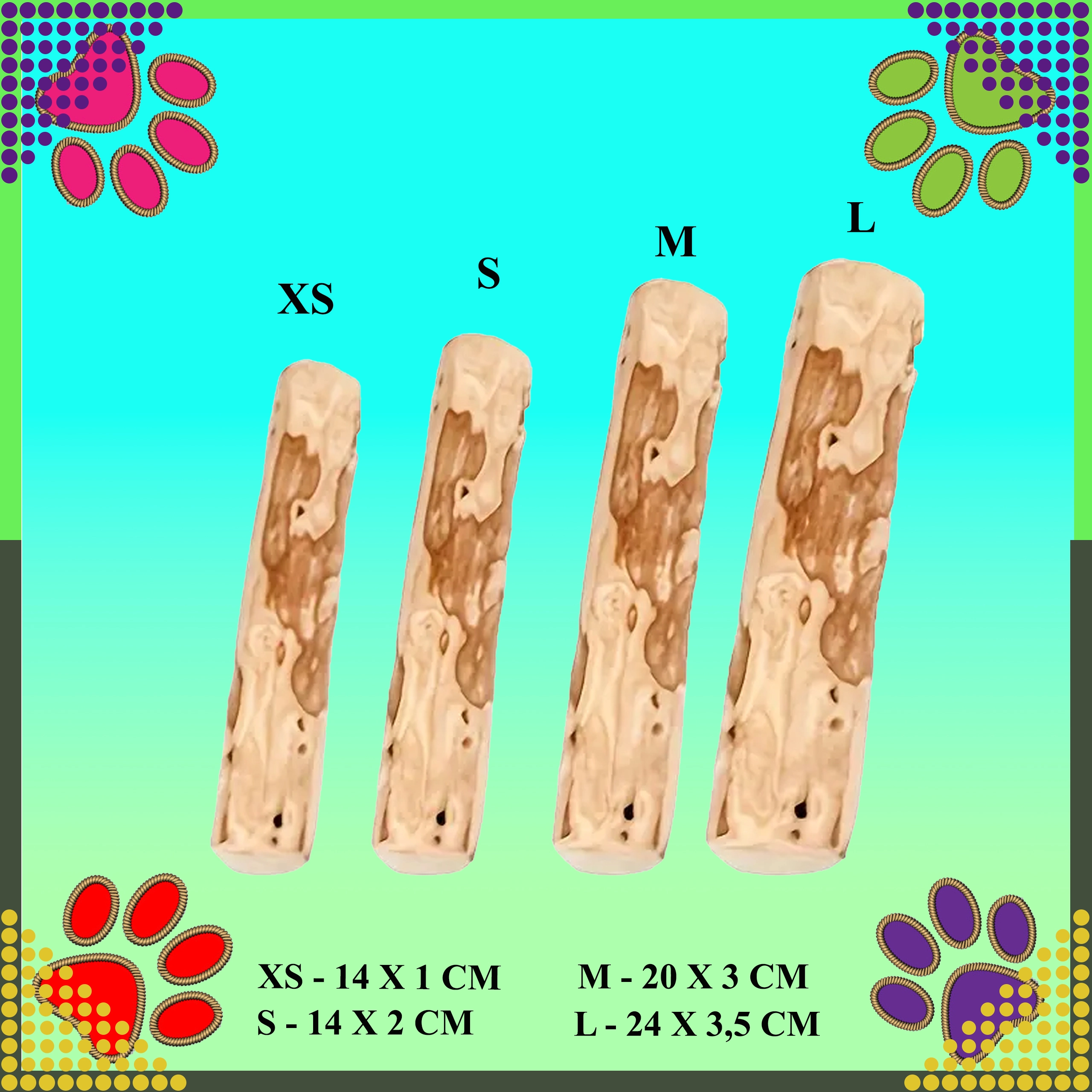 Susține mestecatul natural, ajută la eliberarea energiei și la distracția câinelui atât în casă, cât și afară. Capetele rotunjite sporesc siguranța în timpul jocului, iar fibra naturală a lemnului oferă un aspect plăcut, fără adaosuri artificiale.
