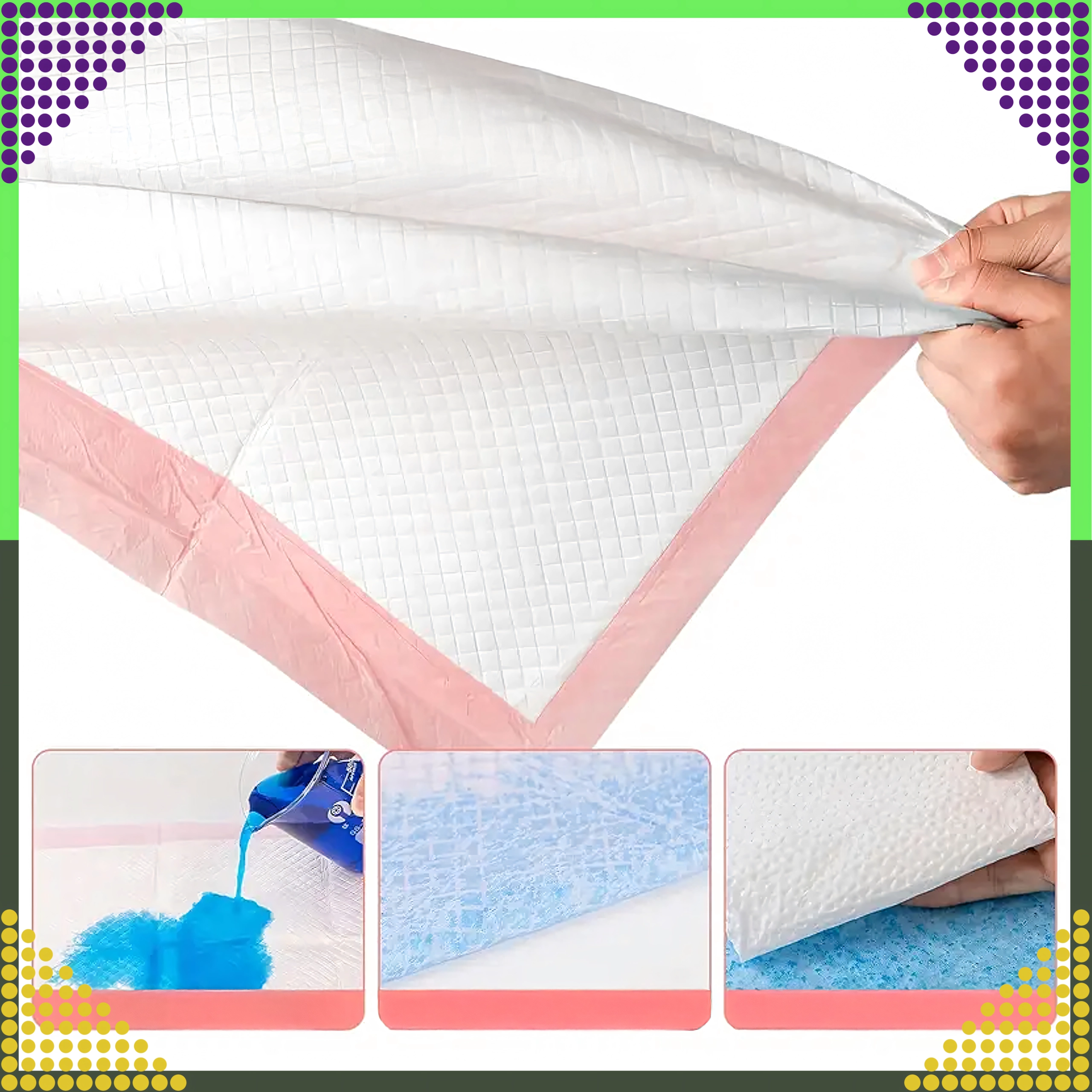 Suprafața matlasată dispersează rapid lichidul, miezul absorbant îl blochează, iar folia inferioară impermeabilă protejează în mod fiabil podeaua.