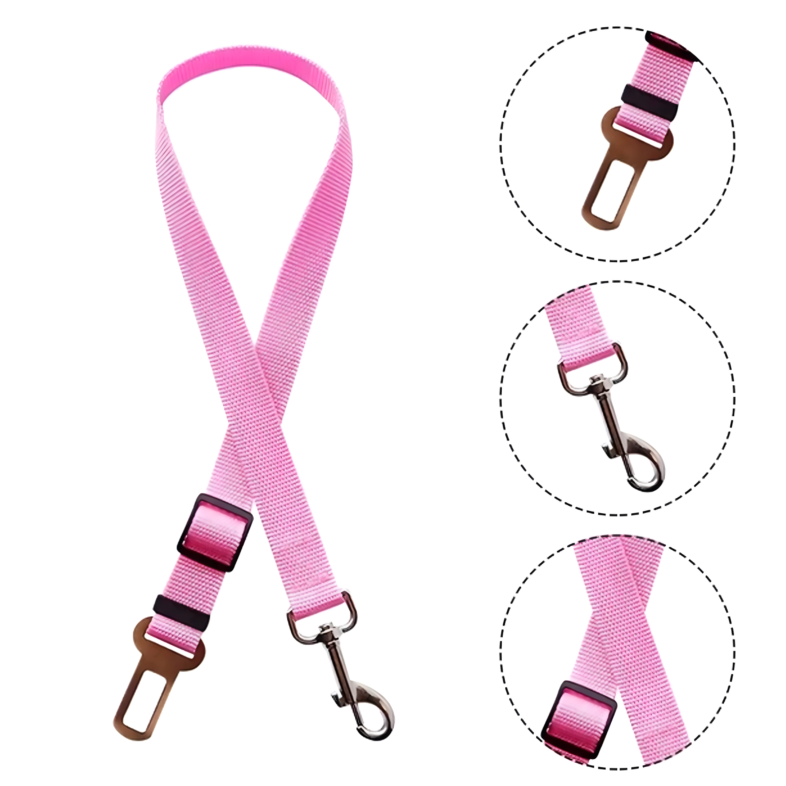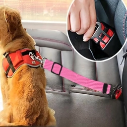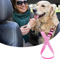 Centura de siguranță pentru câine sau pisică pentru mașină ajută la menținerea animalului în siguranță pe bancheta din spate și reduce riscul mișcărilor bruște la frânare. Datorită cataramei metalice universale tip limbă o fixați cu ușurință în majoritatea încuietorilor auto, iar carabina pivotantă se prinde de hamul animalului dvs. de companie.