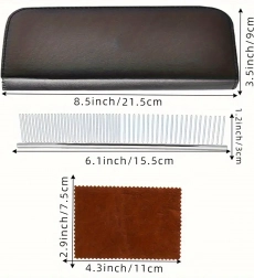 În set găsești tot ce îți trebuie pentru îngrijire completă: foarfece drepte pentru linii precise, foarfece curbate pentru modelare sigură în jurul labelor, urechilor și feței, foarfece de filat pentru estomparea trecerilor și un pieptene metalic fin pentru descurcare și finisaj.
