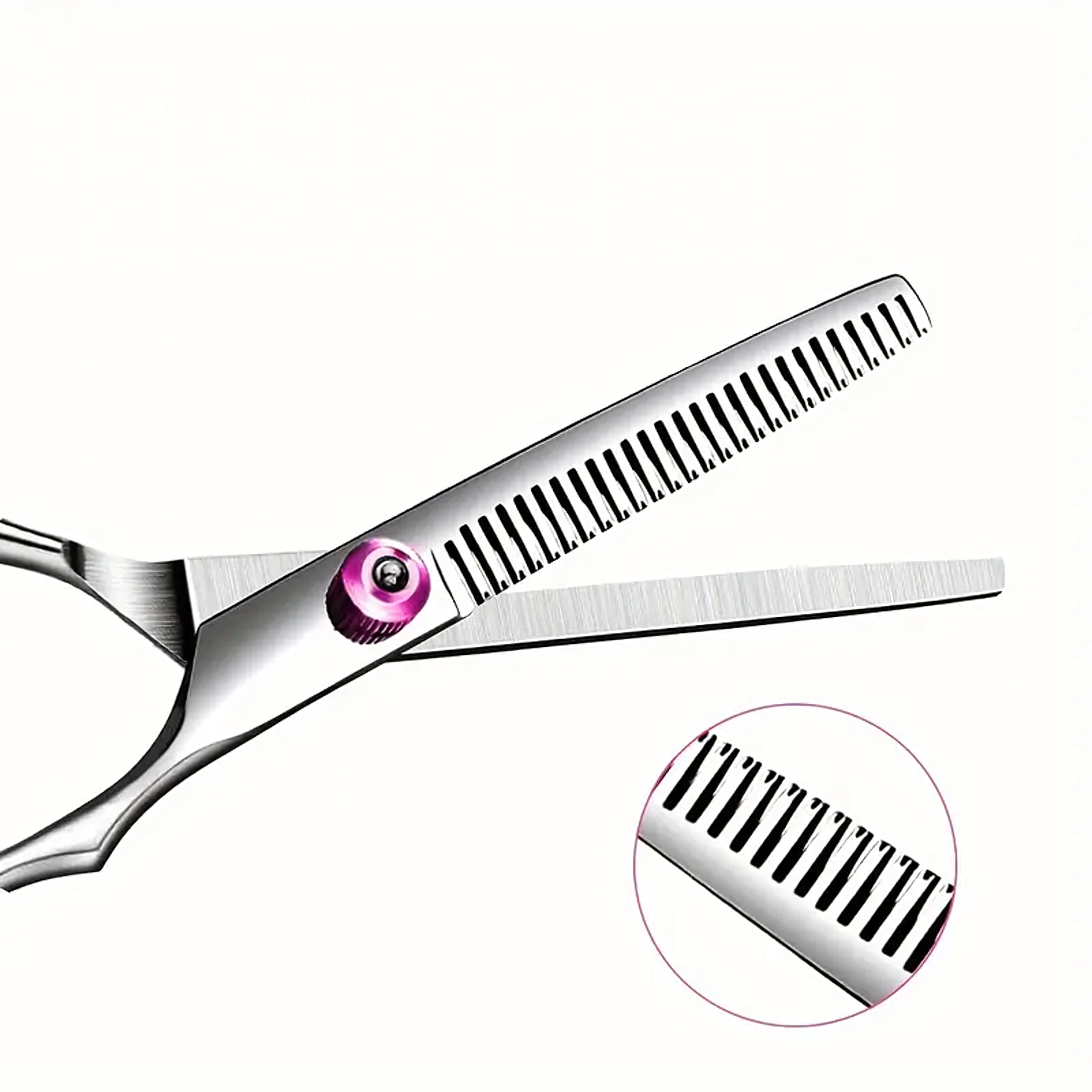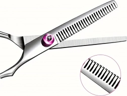 Foarfecele de filat, cu dinți fini, reduc lin volumul și estompează trecerile, ideale pentru un aspect natural fără linii dure.