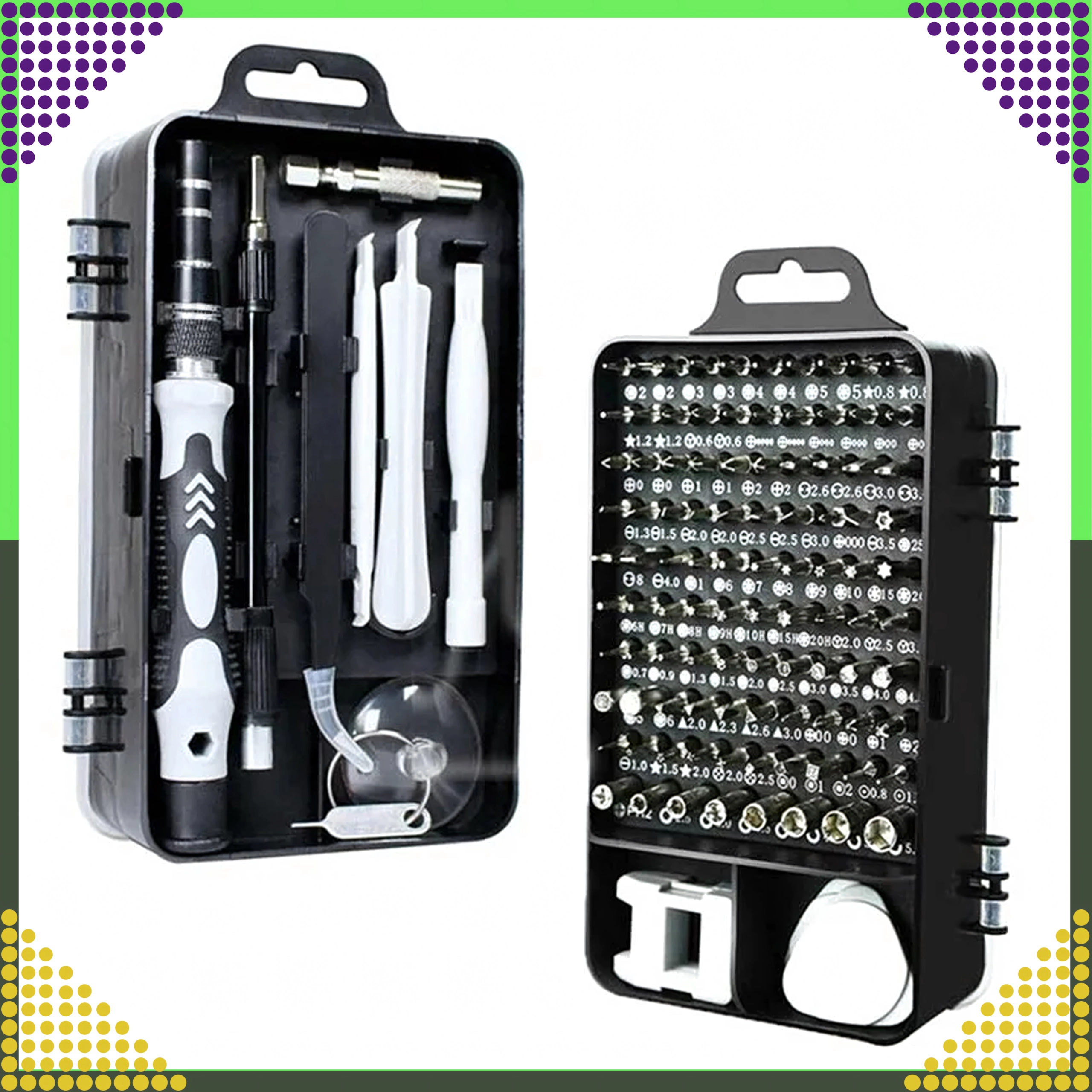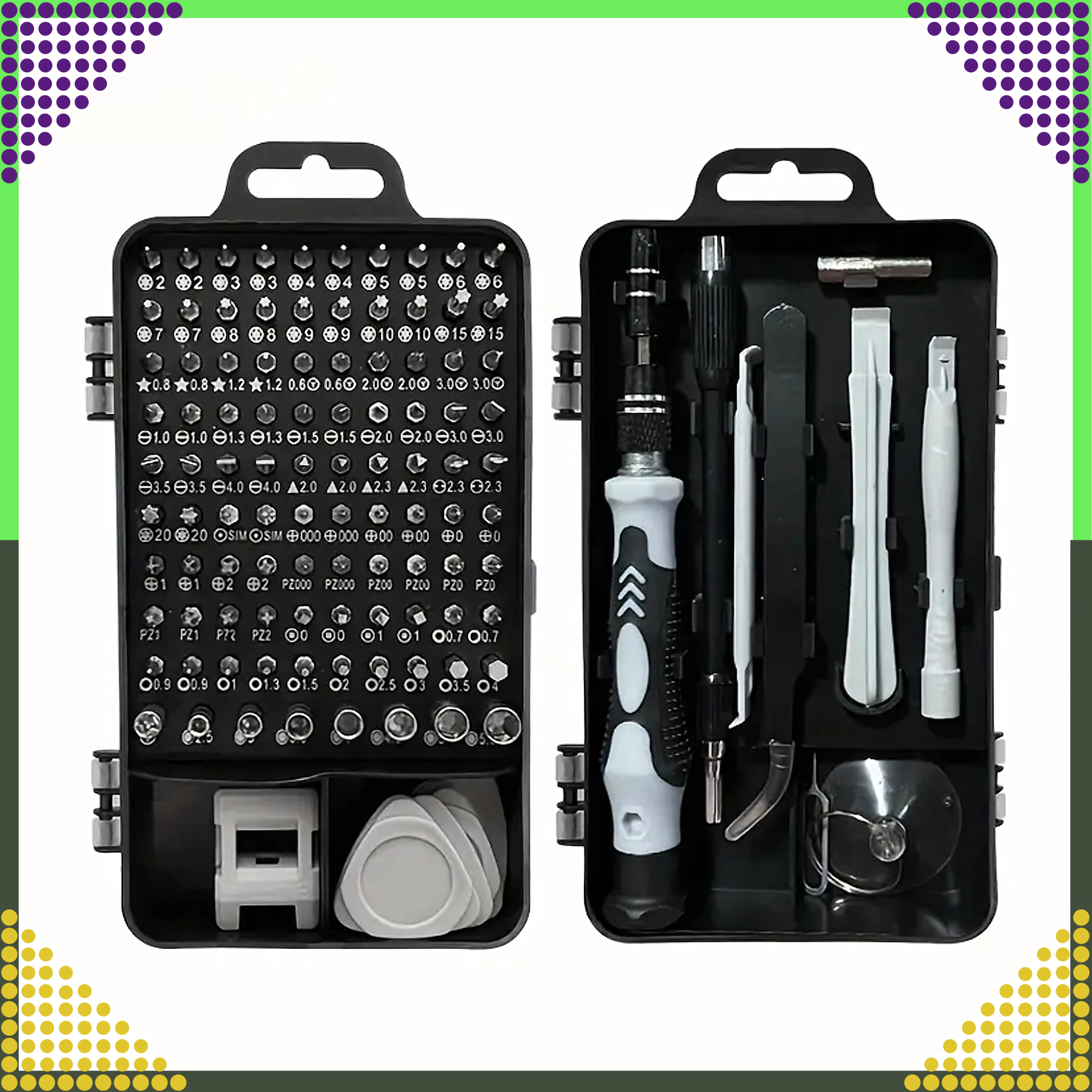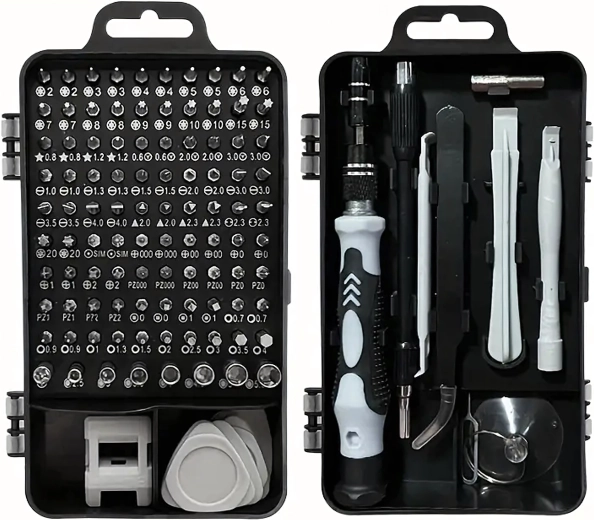 Căutați un singur set pentru toate? Acest set 115 în 1 combină o gamă largă de biți de precizie cu unelte practice pentru deschiderea sigură a dispozitivelor. Totul este păstrat într-un etui compact cu două aripi, care asigură ordine, acces rapid și transport ușor.