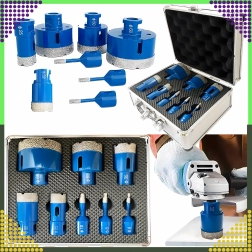 Acest set profesional de carote diamantate este conceput pentru găurire rapidă și curată în materiale dure. Datorită gamei variate de diametre acoperă majoritatea lucrărilor de instalații și finisaje în băi, bucătării și pe șantier. Construcția robustă și tratamentul de suprafață cu diamant oferă durată de viață îndelungată și performanță stabilă.