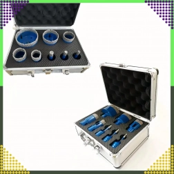 Carotele sunt potrivite pentru lucru la uscat și la umed (în funcție de tipul materialului și al sculei), ceea ce sporește precizia și siguranța găuririi. Valiza compactă din aluminiu menține toate piesele organizate și protejate în timpul transportului.