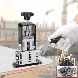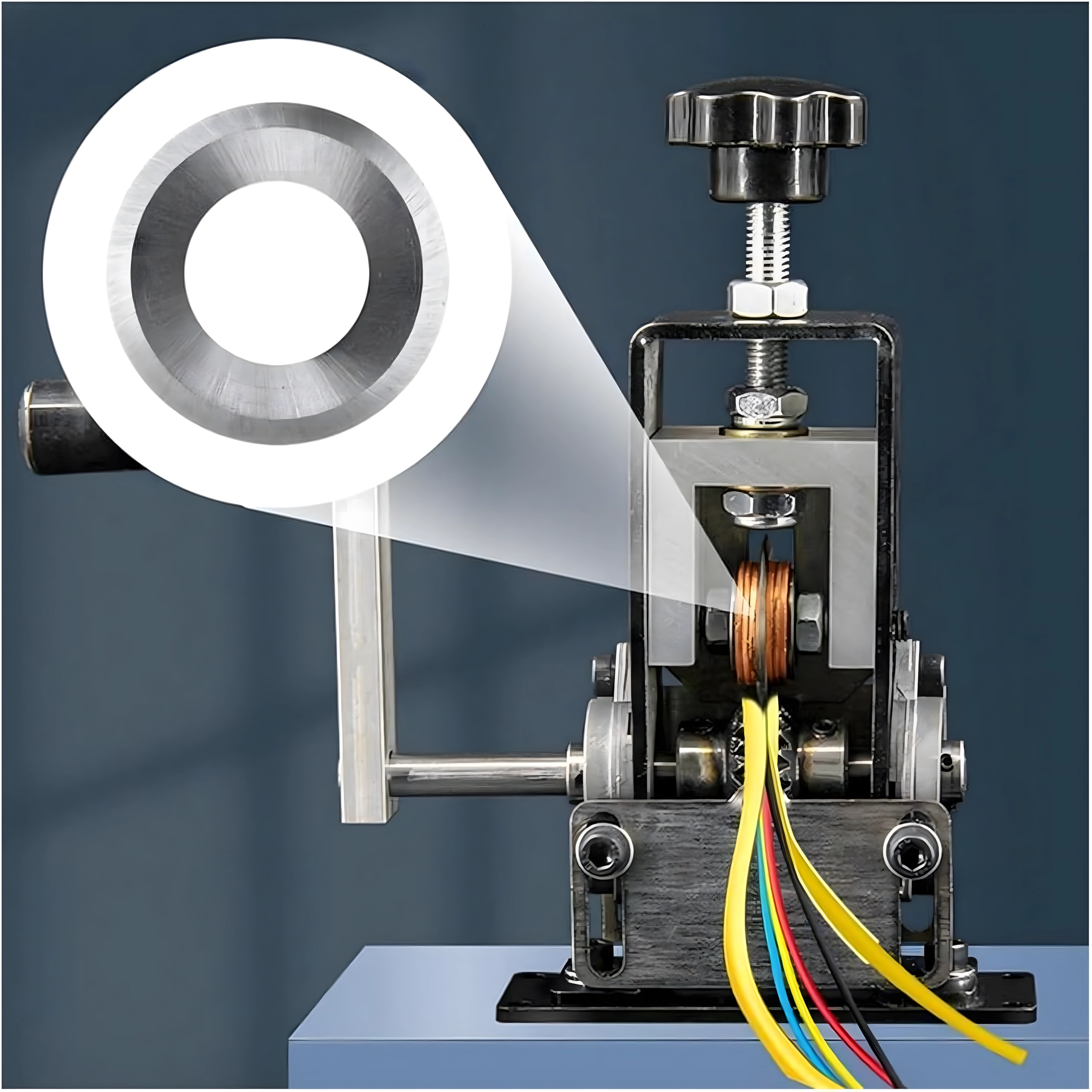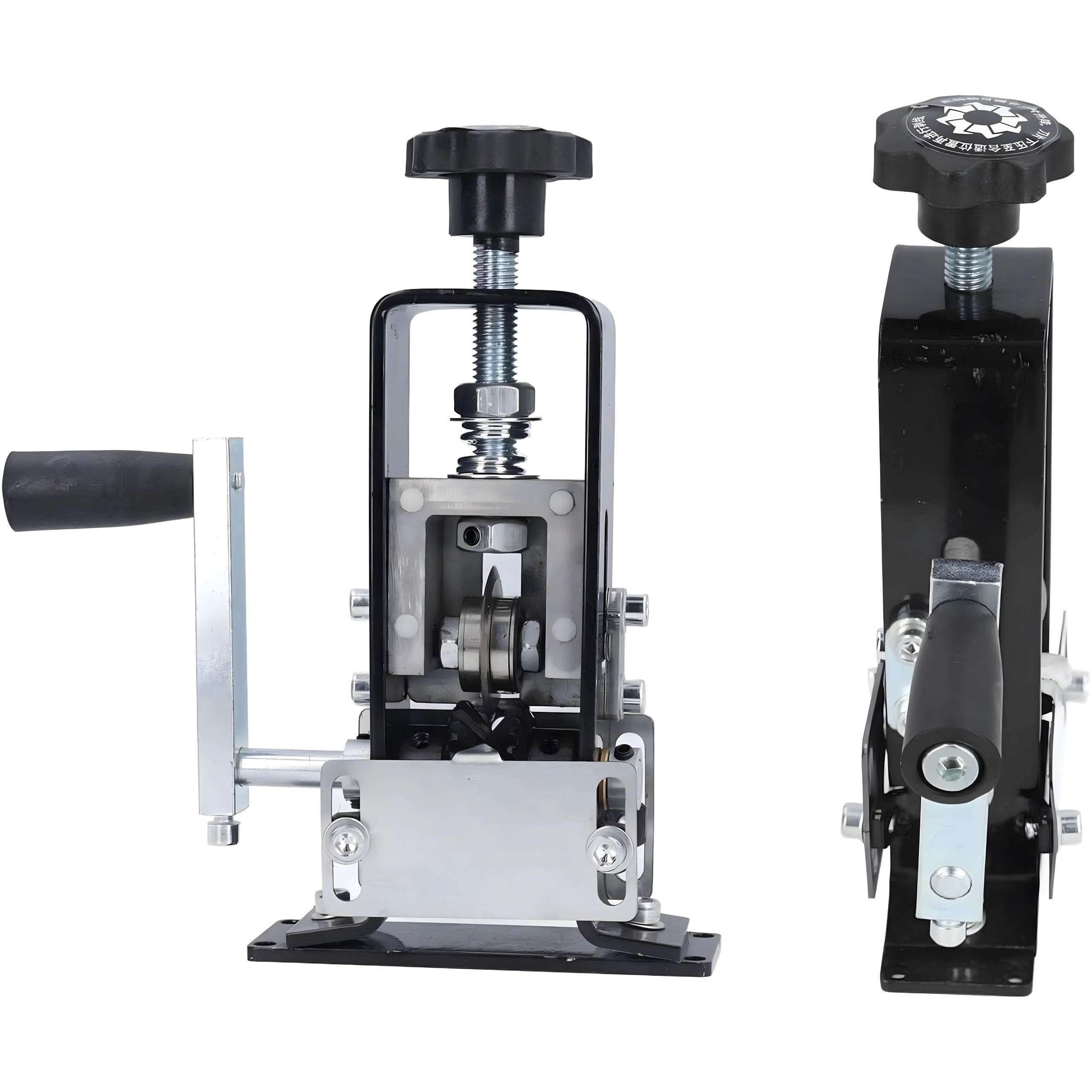 Datorită manivelei manuale aveți control total asupra vitezei și presiunii, ceea ce sporește siguranța în lucru și calitatea rezultatului. Dispozitivul este potrivit pentru reciclarea cablurilor, lucrări de instalații electrice și ateliere de service, unde sunt esențiale viteza și repetabilitatea.
